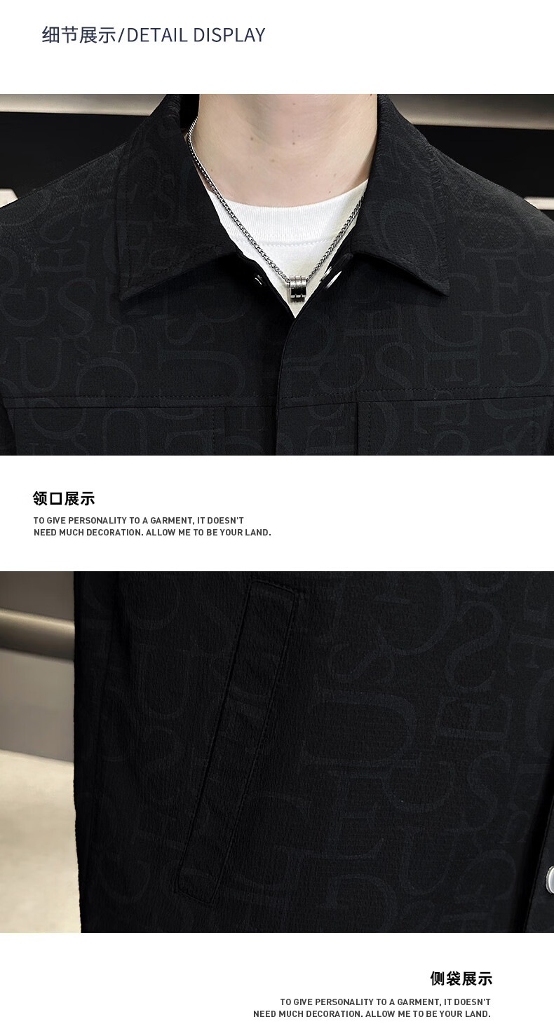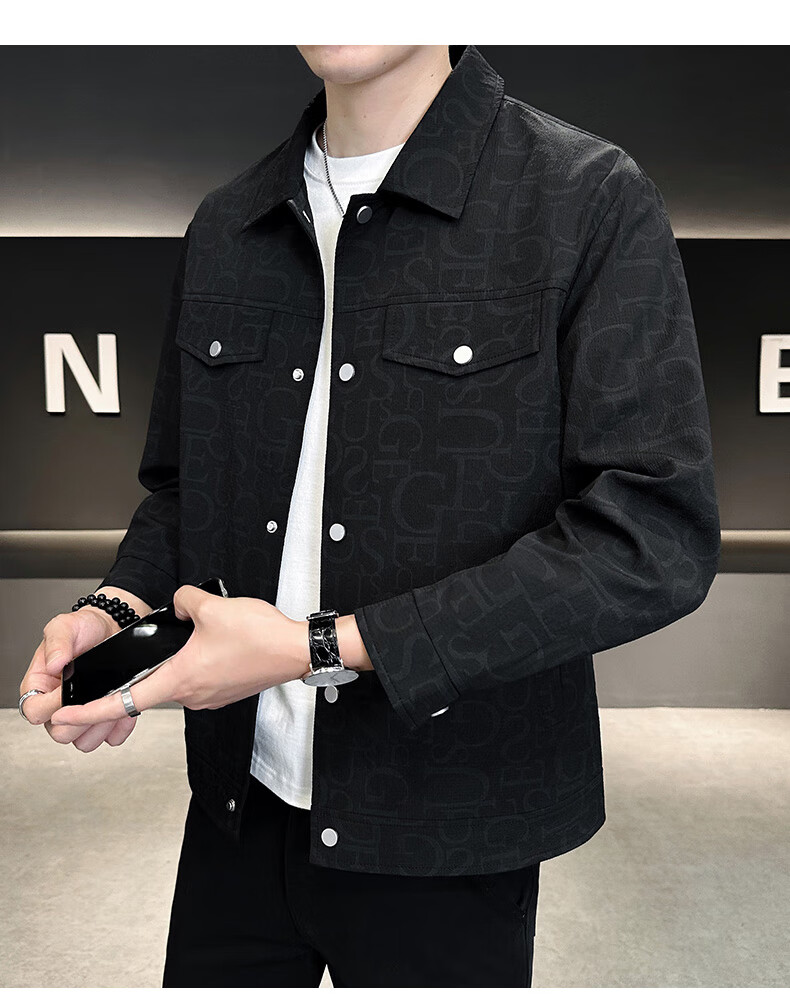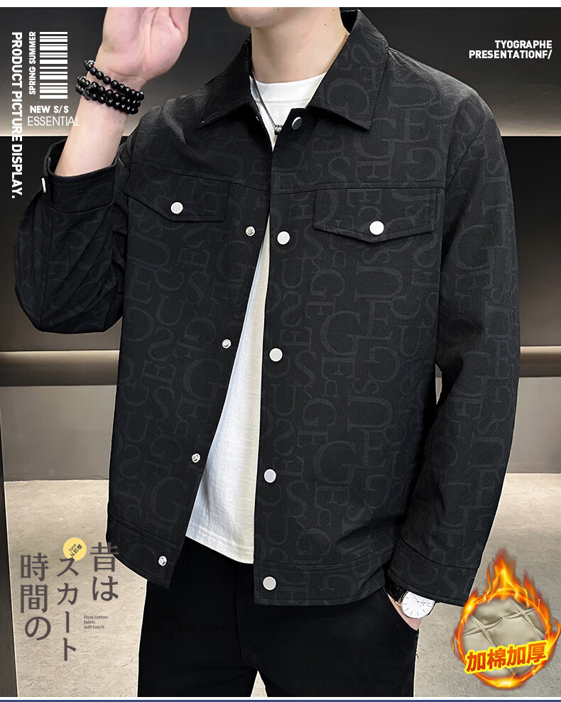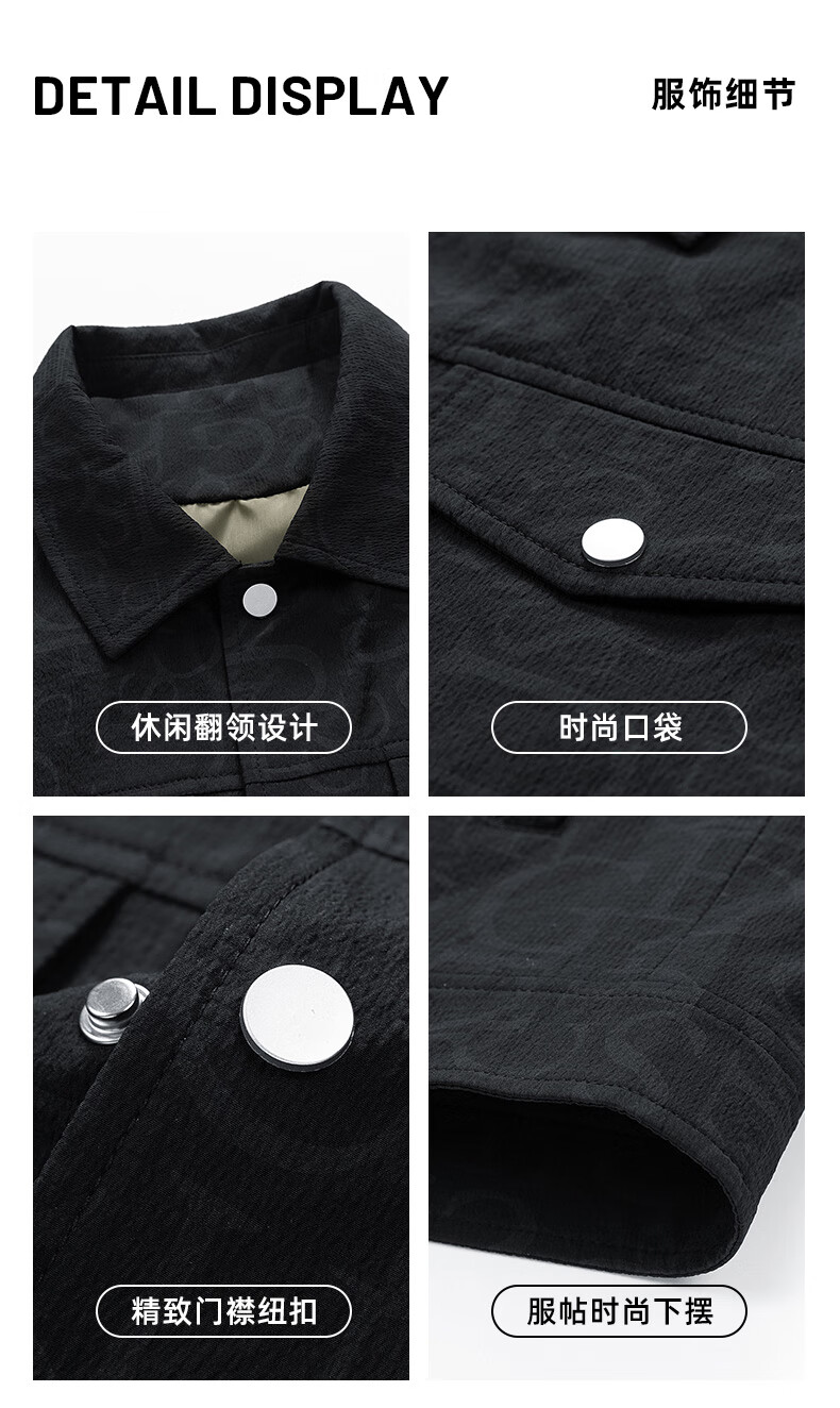 ROMON jacket men's autumn and winter cotton new casual trendy cotton lapel jacket men's ZHL21 black XL