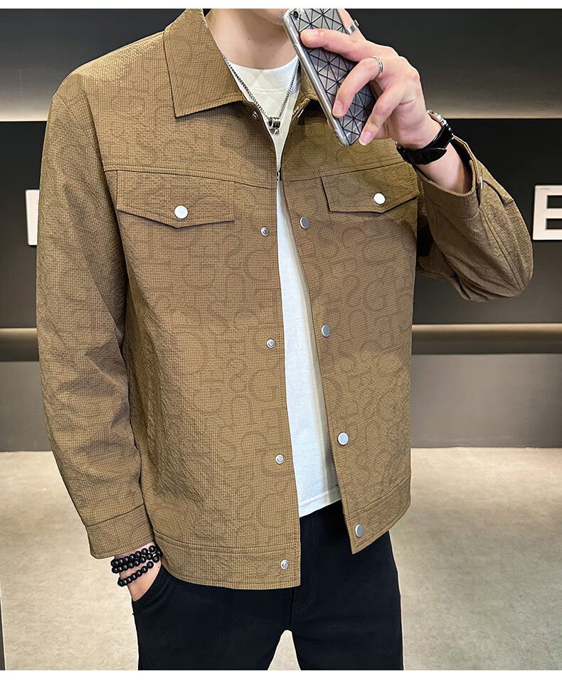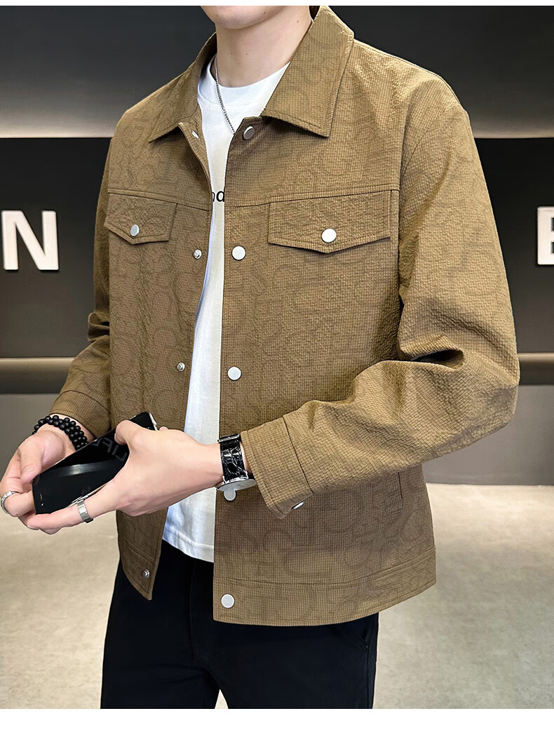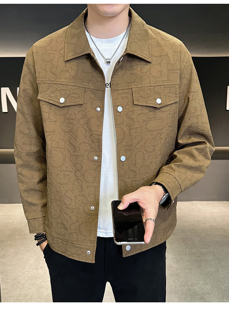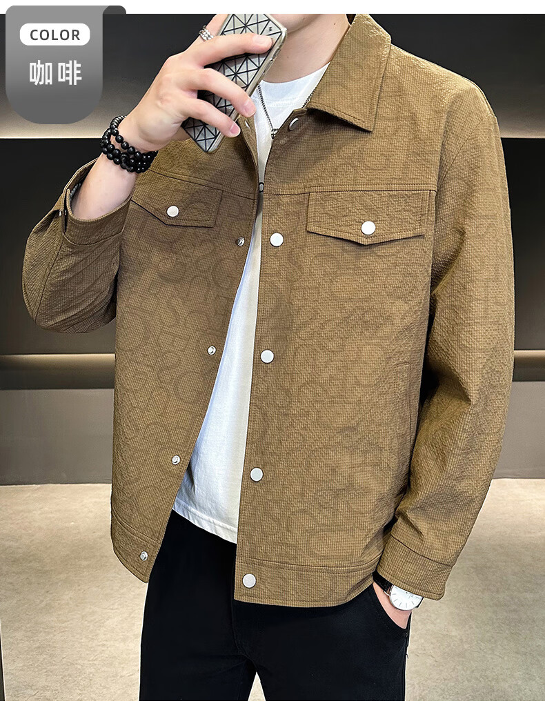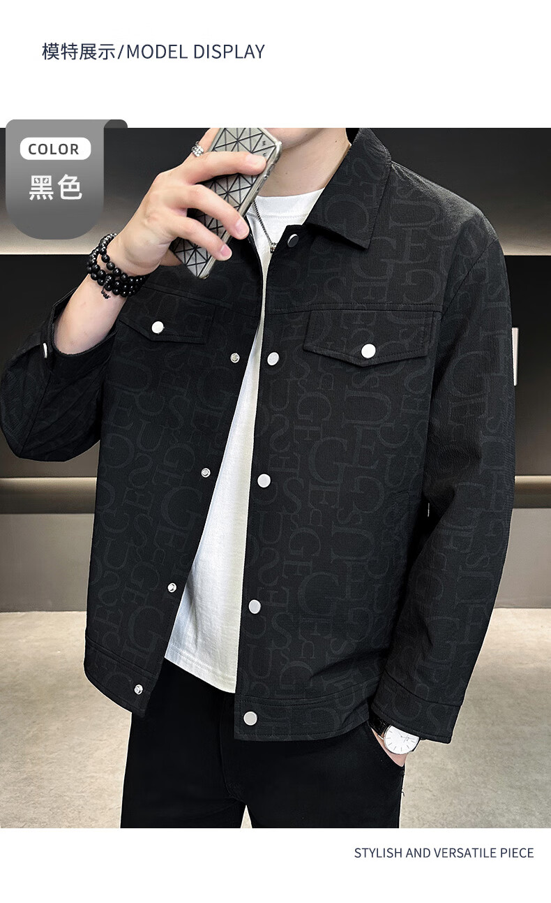 ROMON jacket men's autumn and winter cotton new casual trendy cotton lapel jacket men's ZHL21 black XL