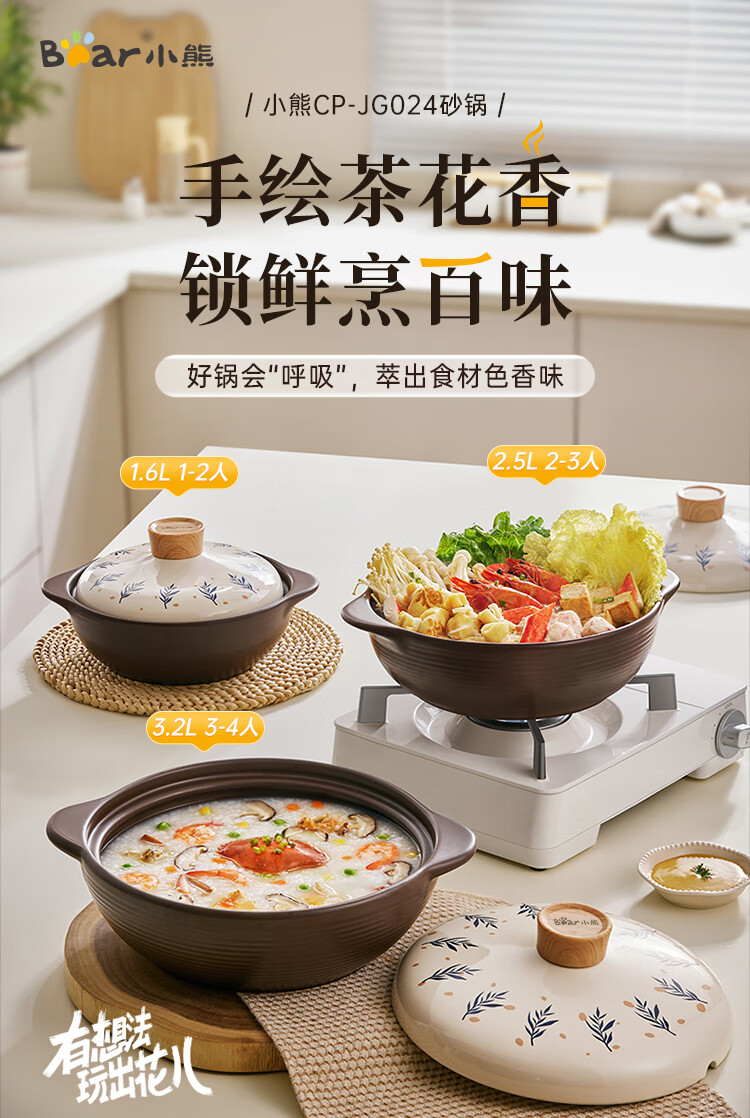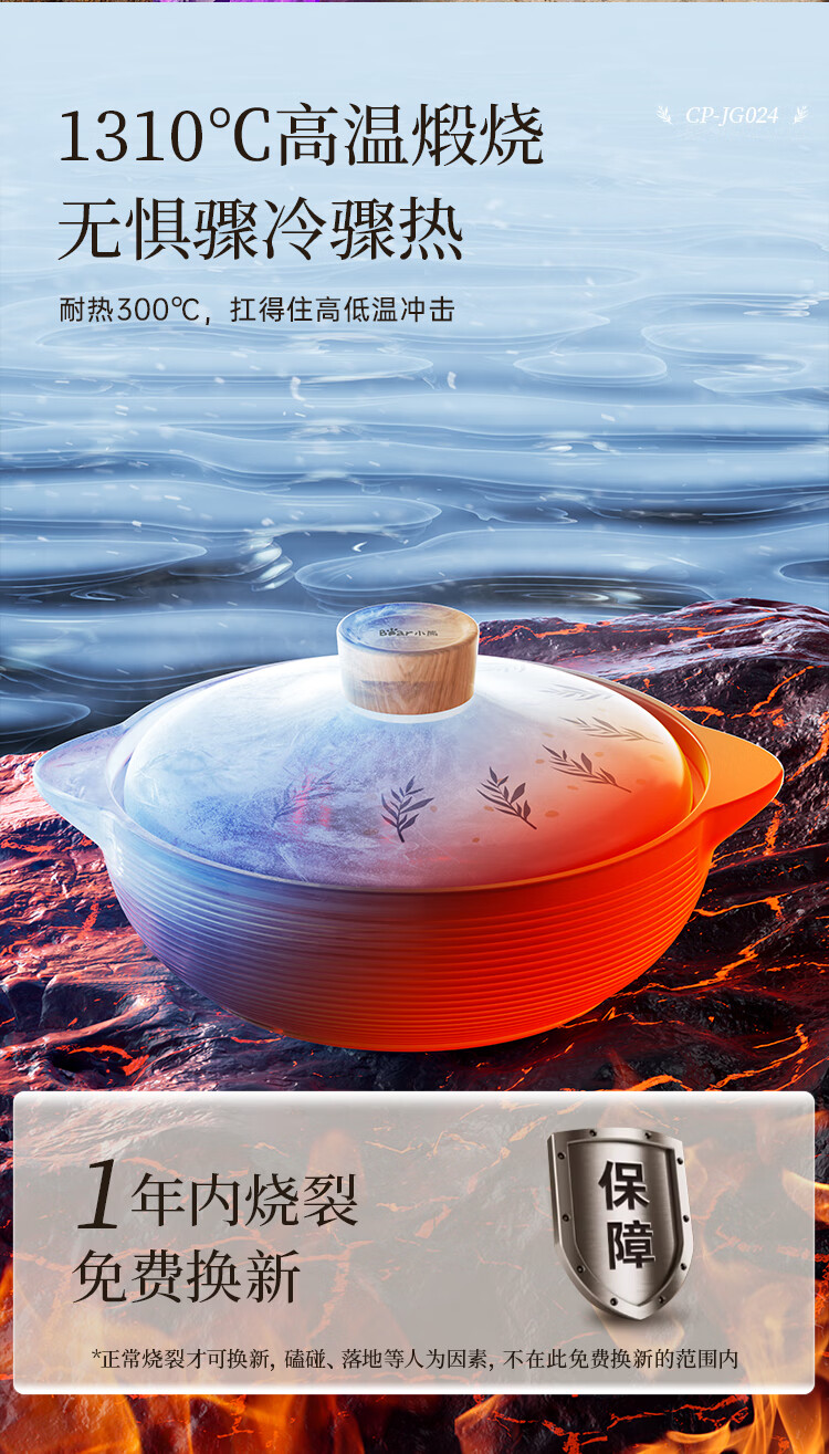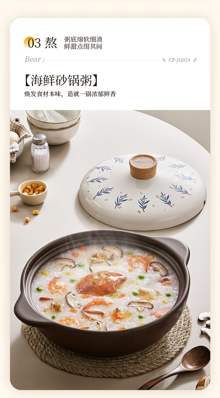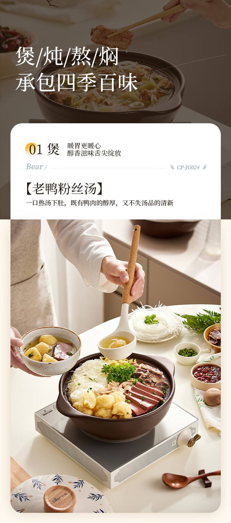 Bear casserole wide-mouth soup pot clay pot rice stew pot high temperature resistance and non-cracking 3.2L health-care pot ceramic pot gas