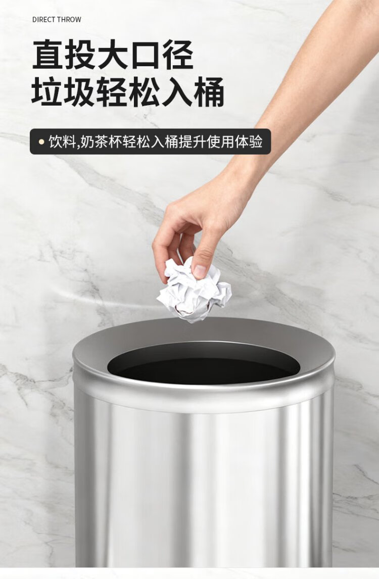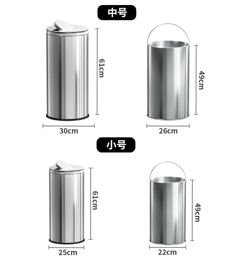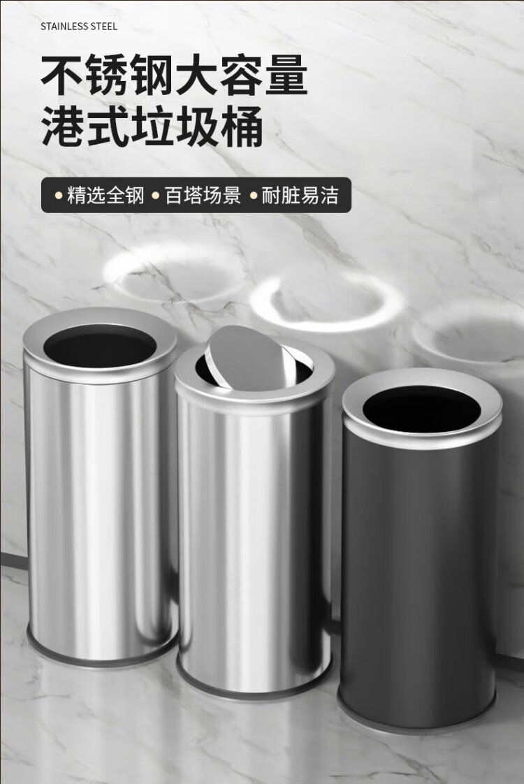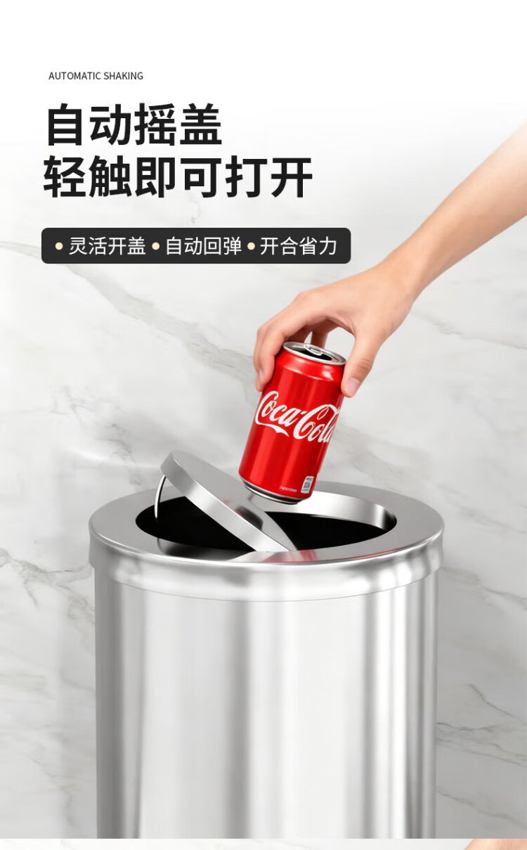 KUK stainless steel trash can 25*61cm swing lid round bucket outdoor shopping mall hotel vertical flip lid Hong Kong style bucket peel box