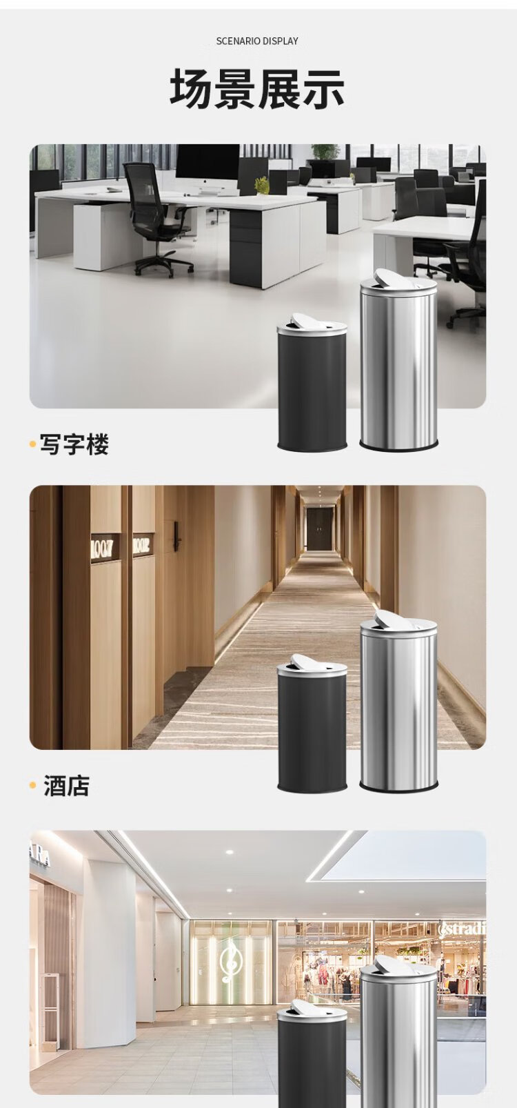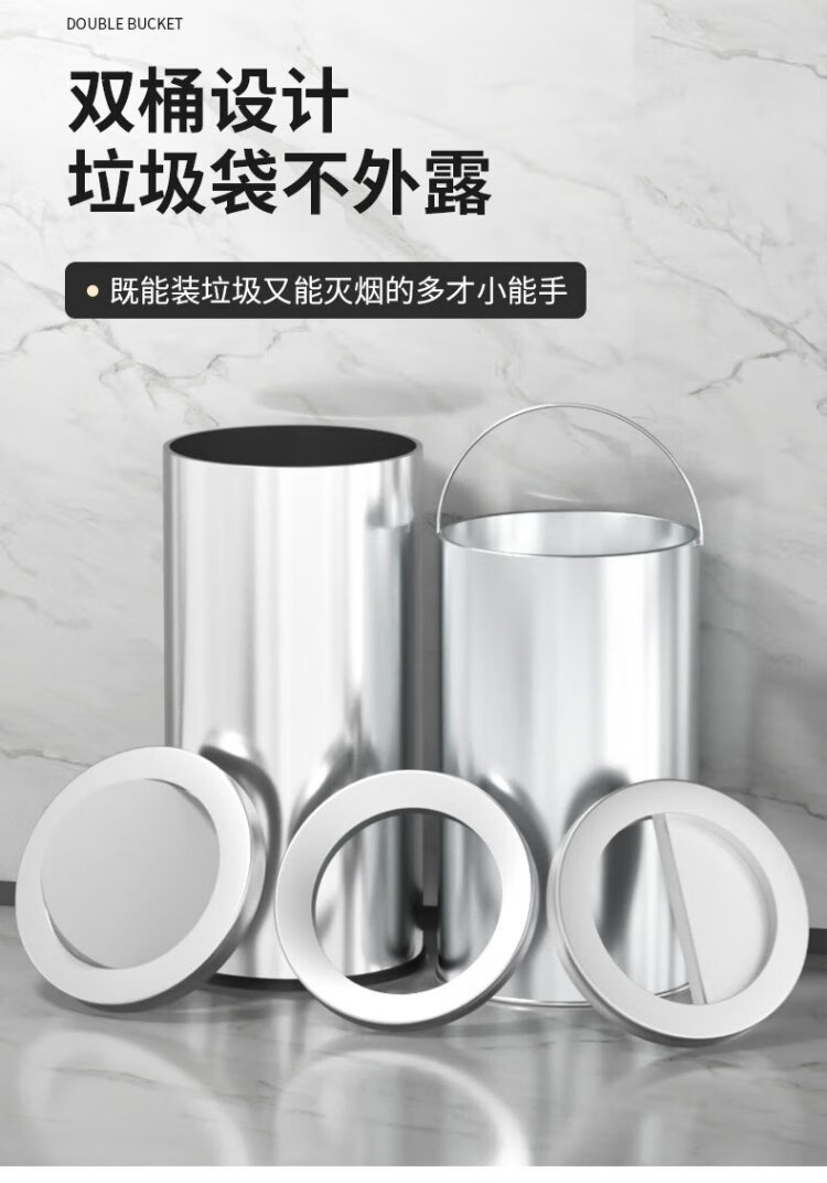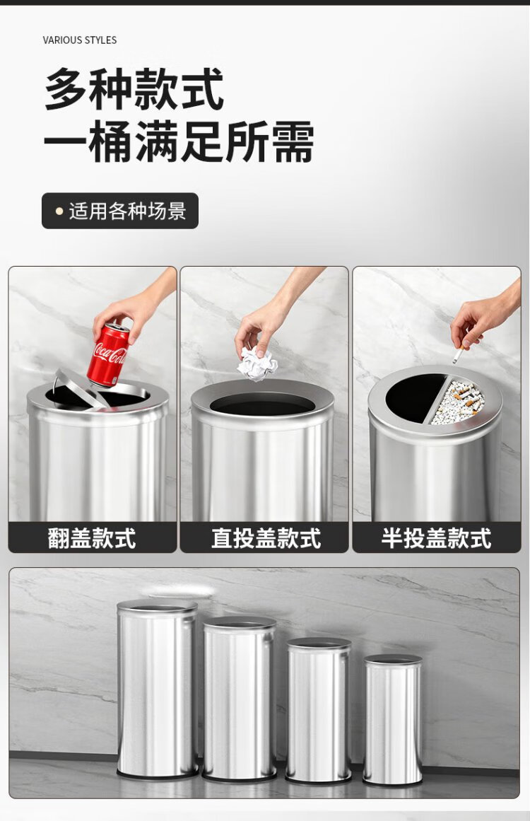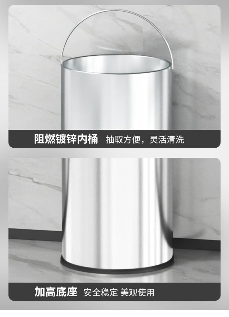 KUK stainless steel trash can 25*61cm swing lid round bucket outdoor shopping mall hotel vertical flip lid Hong Kong style bucket peel box