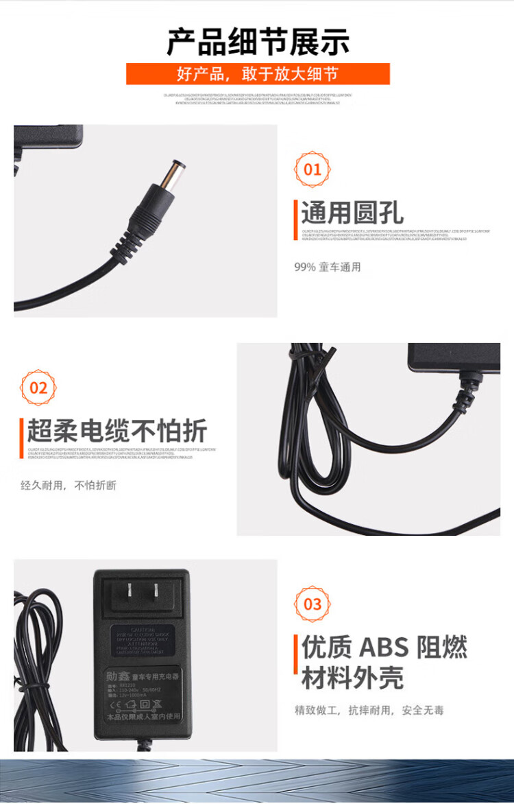Zhicheng children's electric car stroller charger motorcycle toy car 12V round hole charger adapted to remote control four-wheel