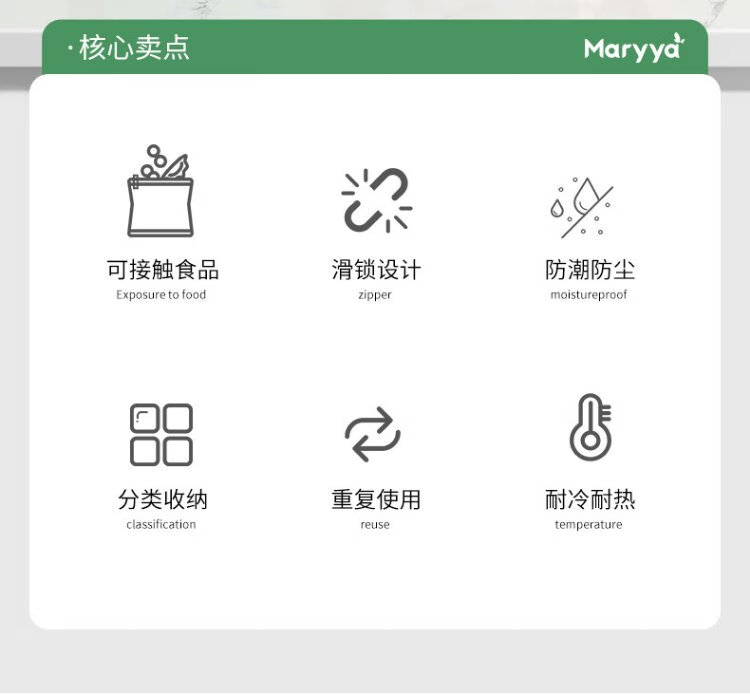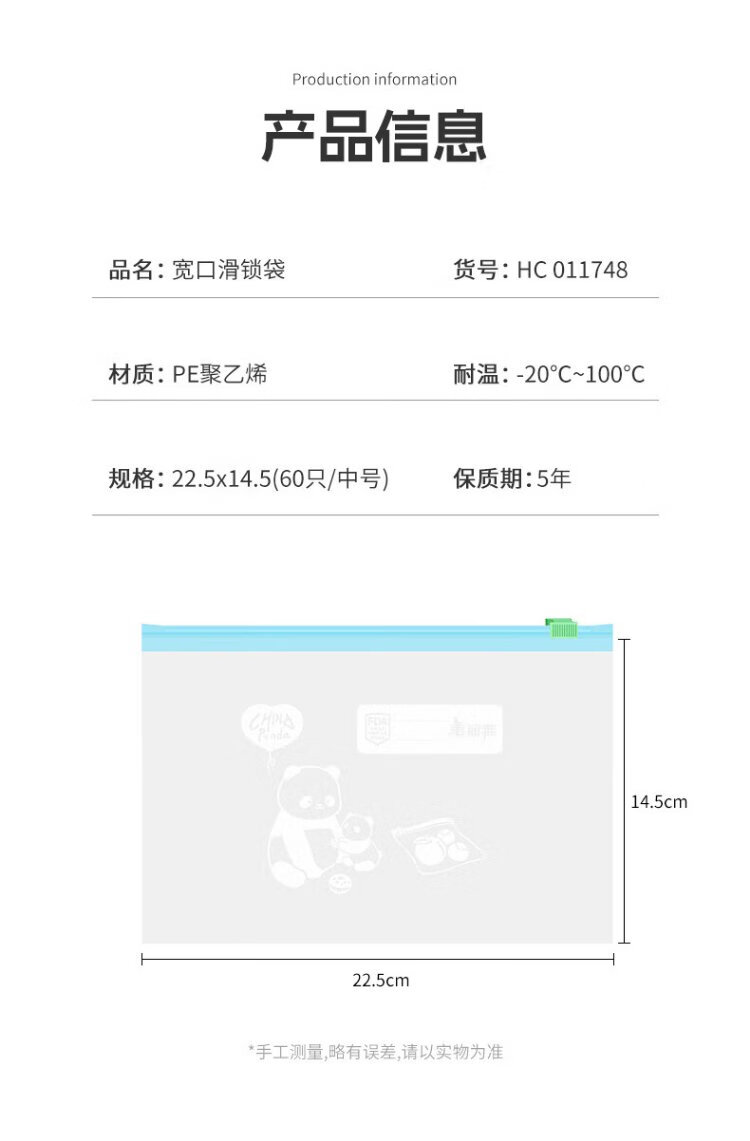 Meiya sealed bags food grade medium size 60 pieces zipper refrigerator packaging storage freezer fresh-keeping bags