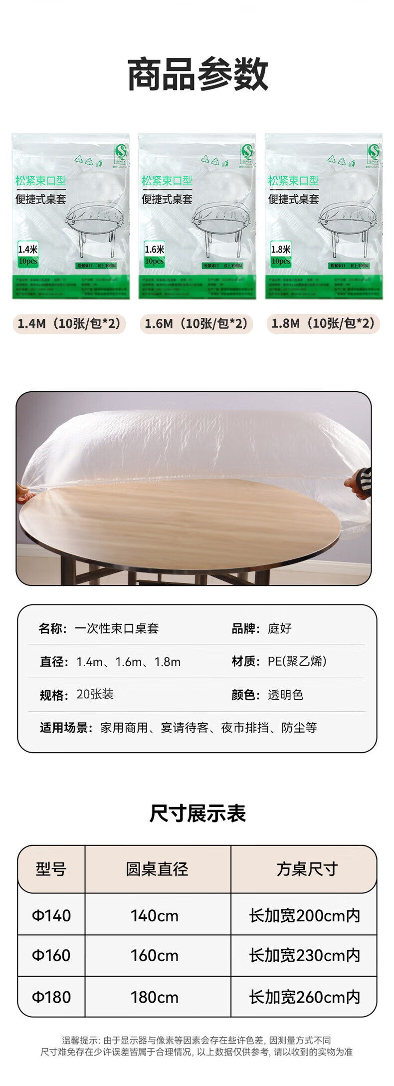 Tinghao disposable tablecloth with thick elastic opening 1.8m 20 pieces white picnic camping tablecloth waterproof and oil-proof tablecloth cover