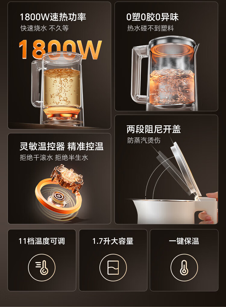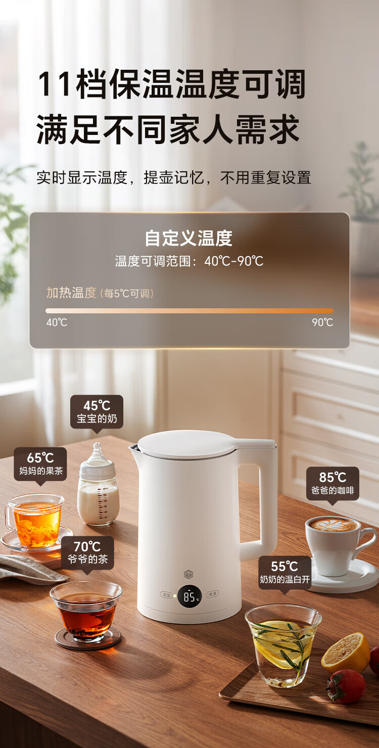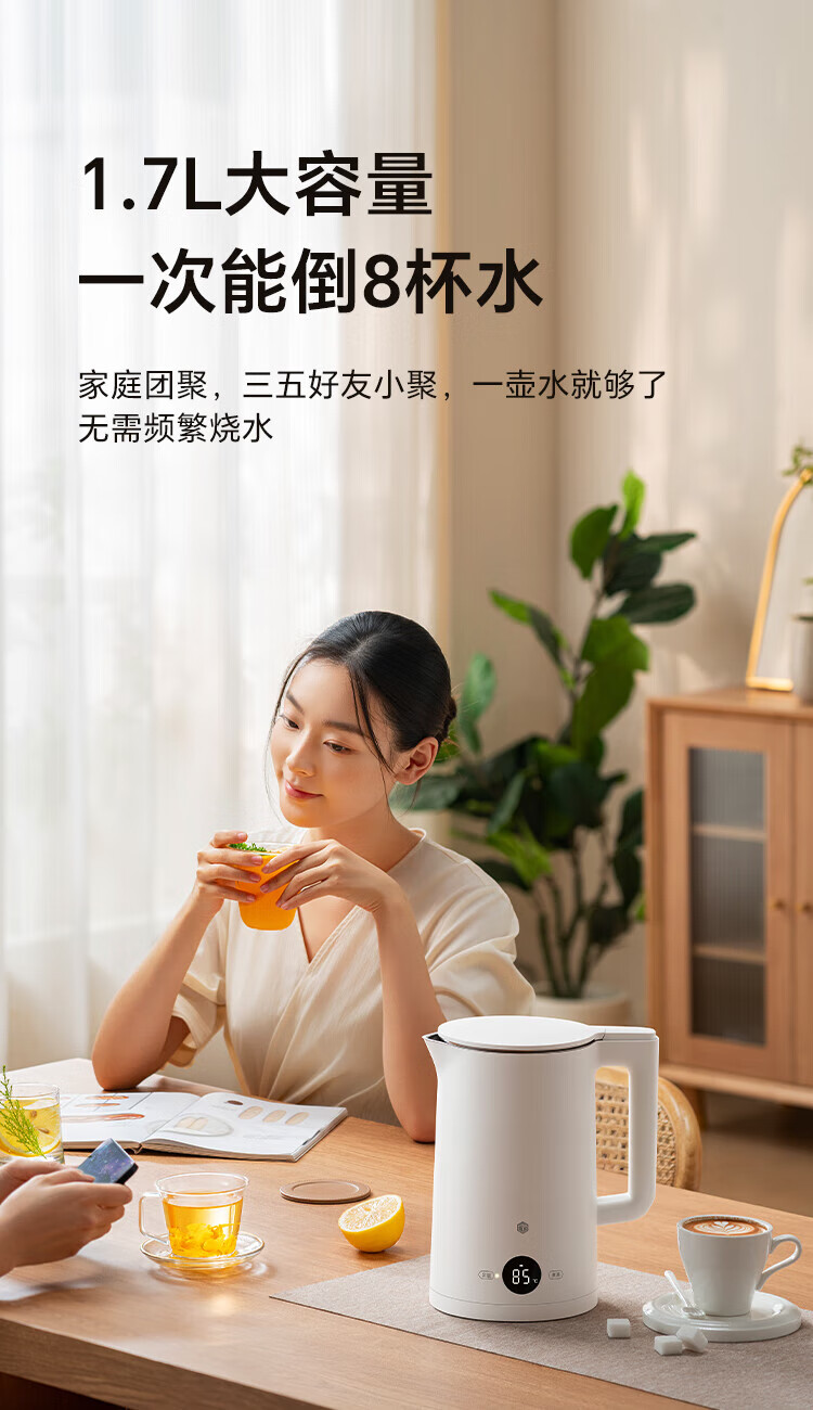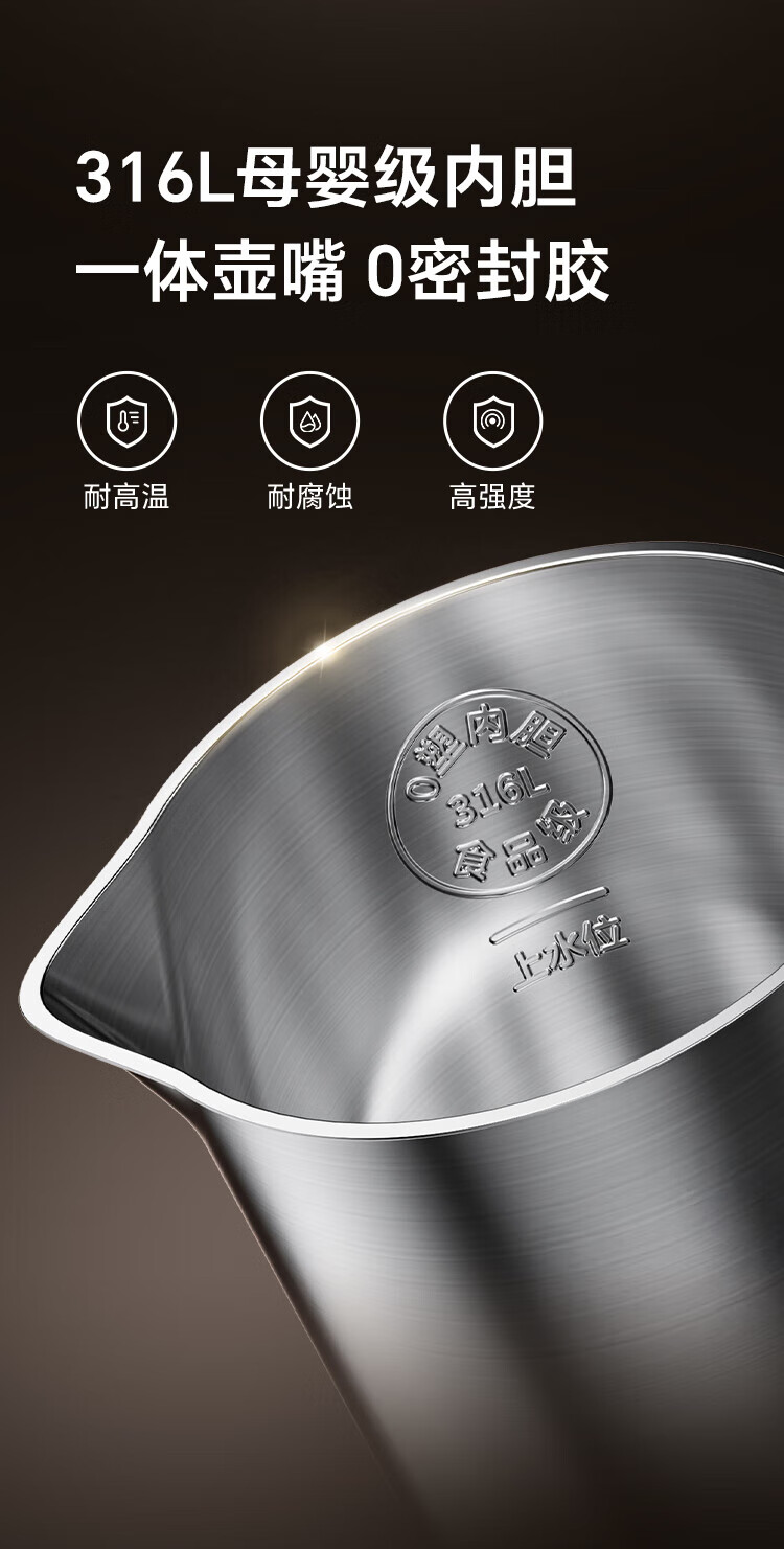 Made in Tokyo, patented 0 plastic, 0 glue, 0 odor electric kettle, constant temperature, automatic power-off and heat preservation integrated 1.7L 316L maternal and infant grade seamless liner, automatic power-off for health care
