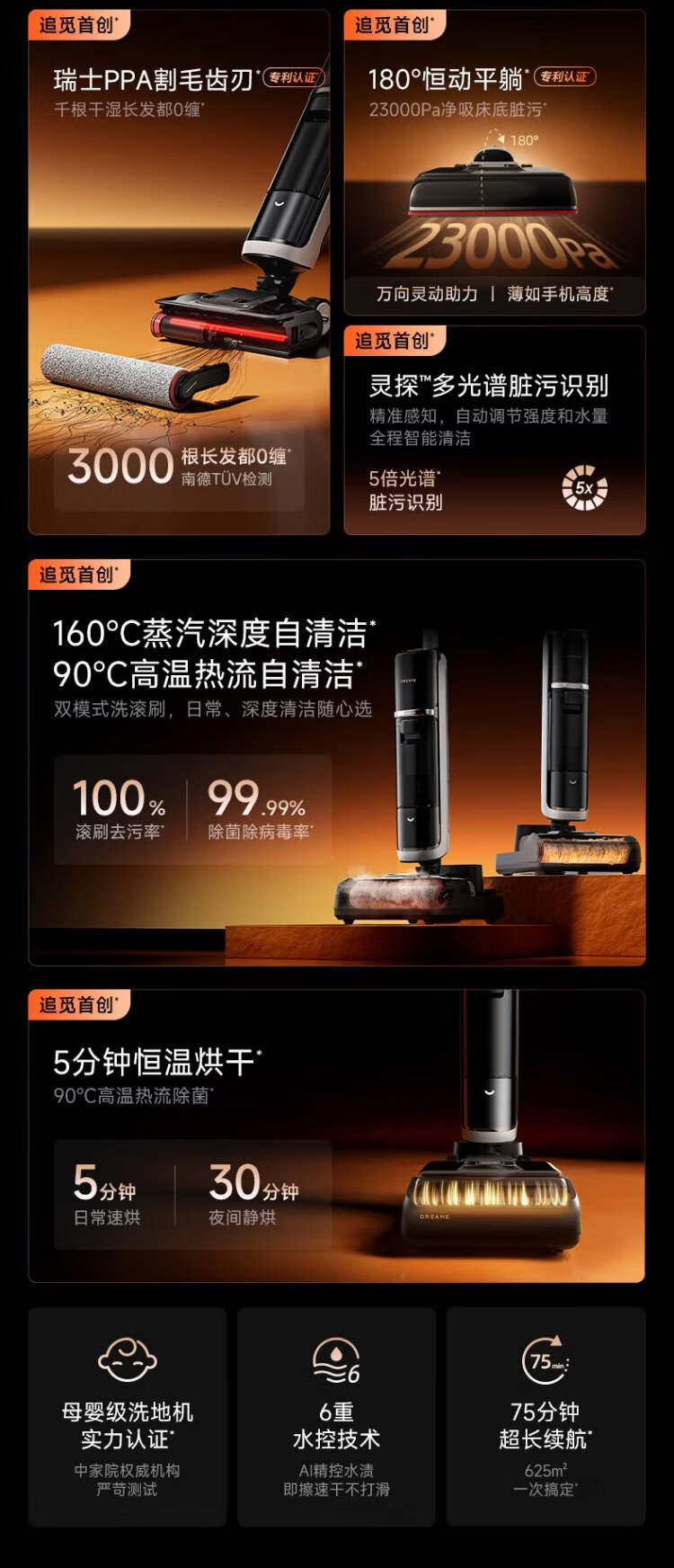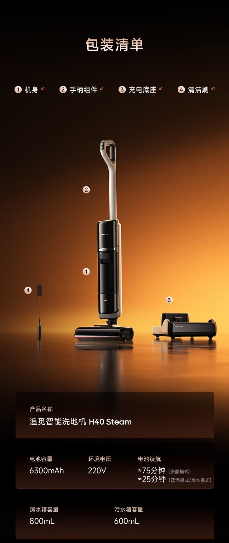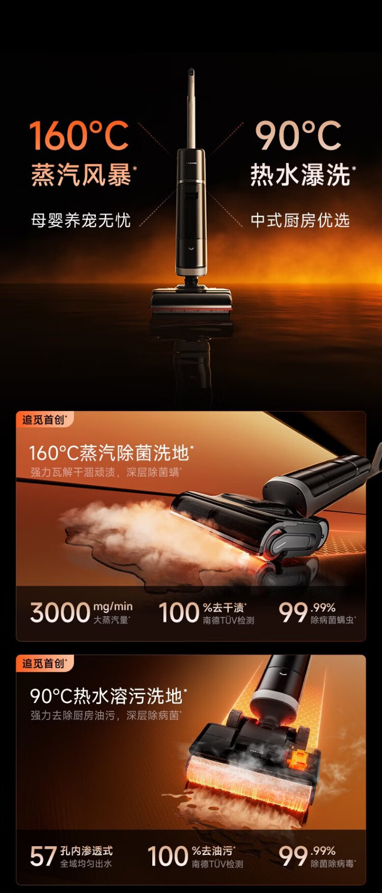 Chai Mi Household H40 Steam 160 Steam Wash + 90 Hot Water Dual Heat Floor Washing Laying Flat 0 Tangle Silent Drying and Washing Machine Suction and Mopping Integrated Automatic Cleaning and Mopping