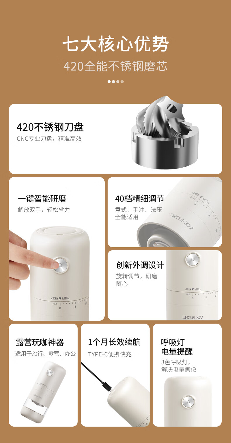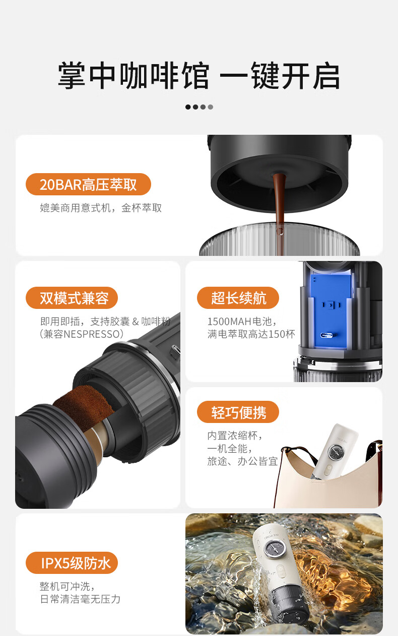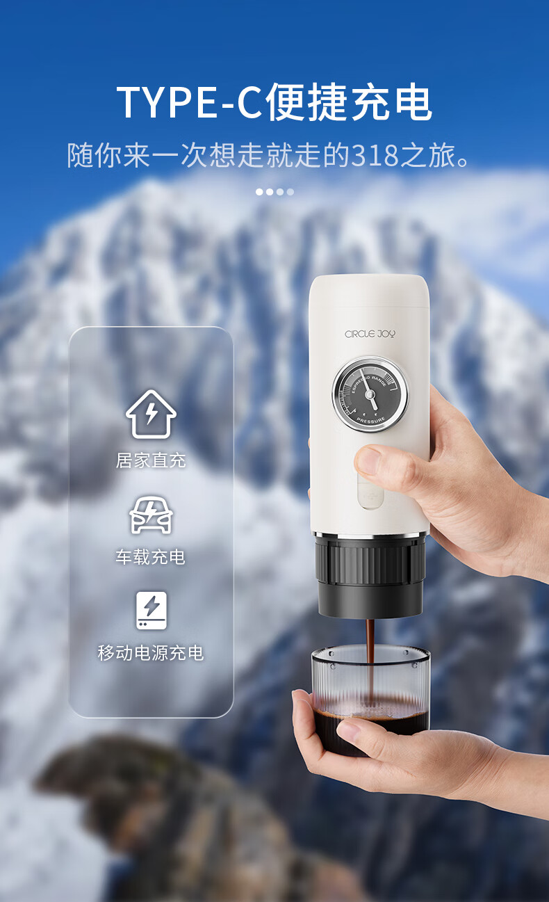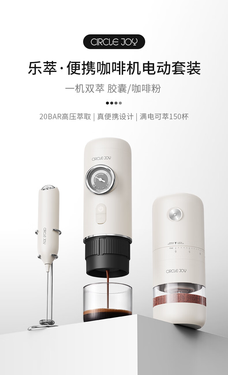 Circle Joy portable coffee machine car espresso semi-automatic home outdoor camping electric grinder 3-piece set