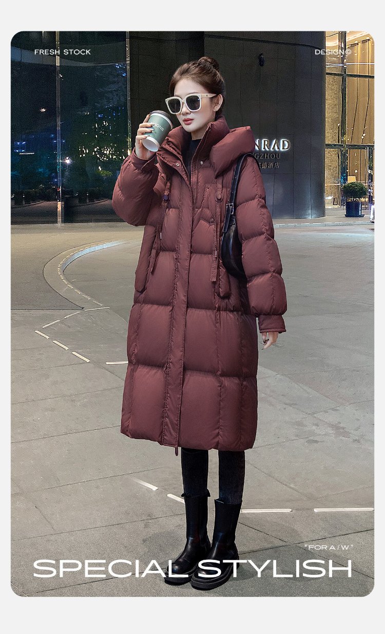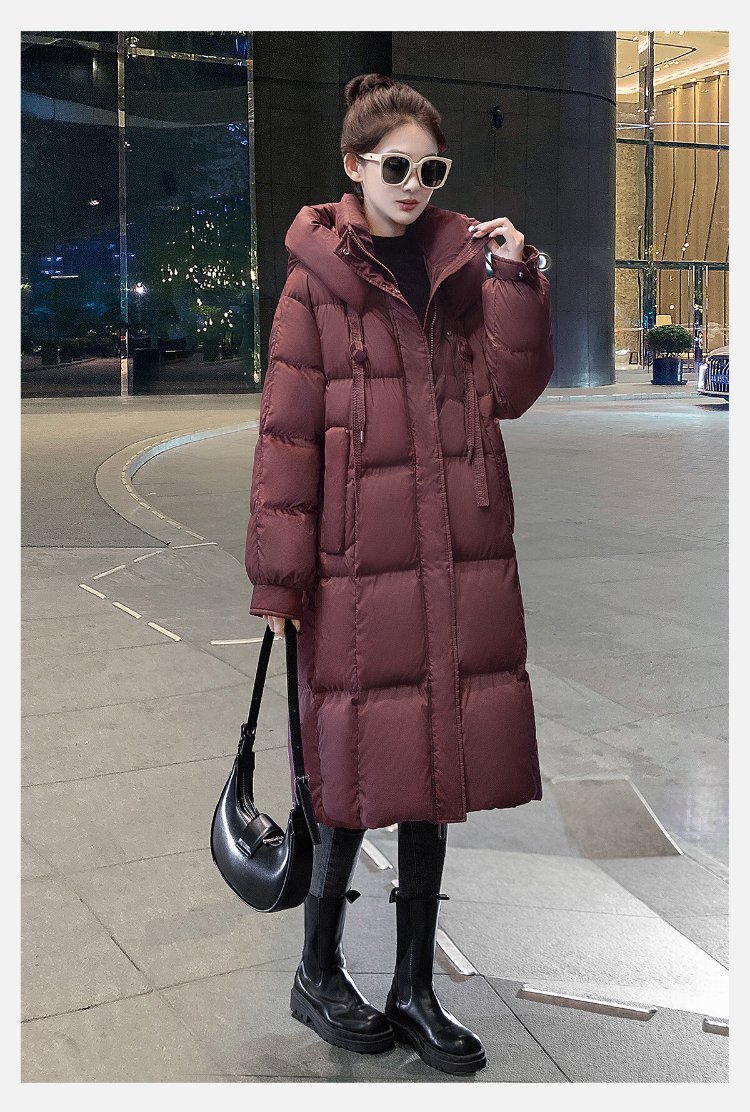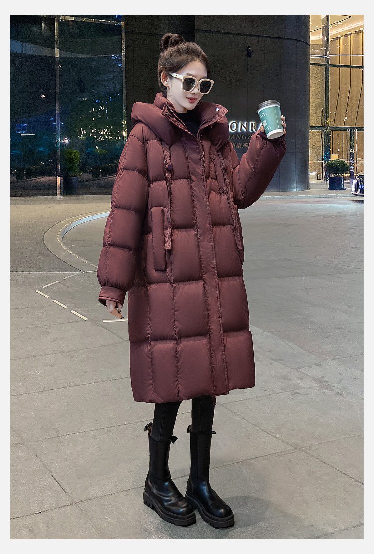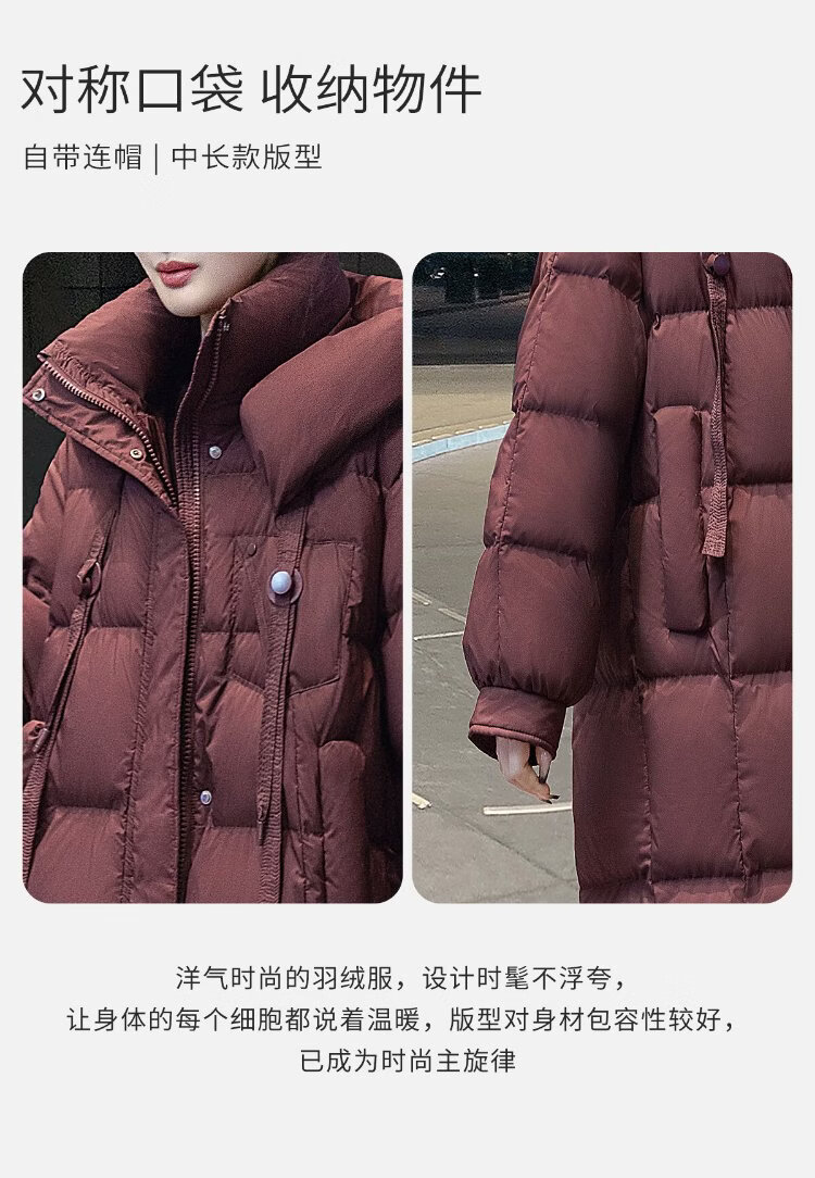 Sibaishe 90 velvet hooded down jacket for women 2025 winter new solid color long-sleeved warm mid-length jacket