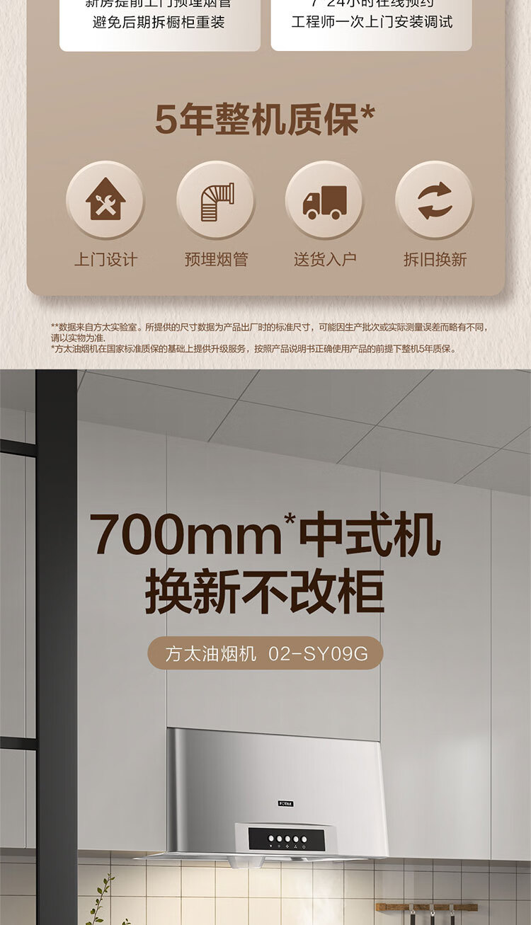 FOTILE 02-SY09G classic Chinese style upgraded model, the same model offline, hot-selling, one-piece integrated smoke chamber, cost-effective rental, range hood for home kitchen