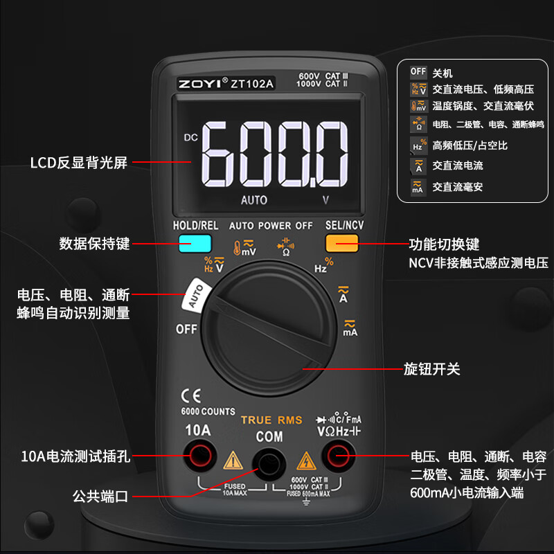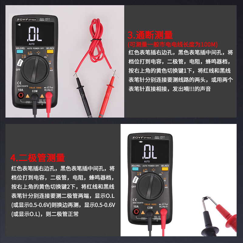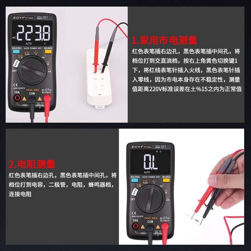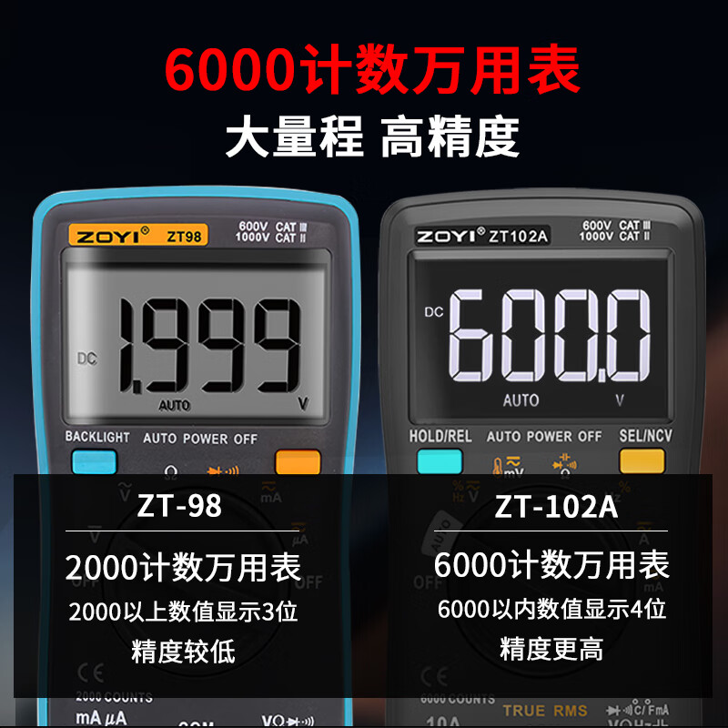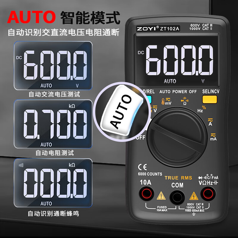 ZOYI ZOYI ZT102A smart electrician multimeter household high-precision digital mini anti-burn fully automatic small multimeter