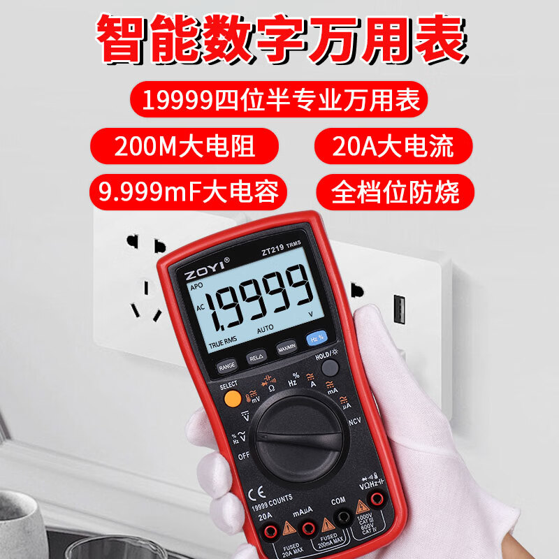 Zhongyi Electrical Measurement (ZOYI) Zhongyi digital multimeter ZT219 full-function four-and-a-half-digit true effective value high-precision full-range burn-proof electrician