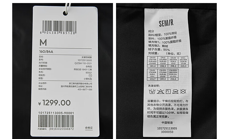 Same style as Semir shopping mall | XCNSPACE aerospace cooperation series down jacket for women 2025 goose down jacket 101725113005