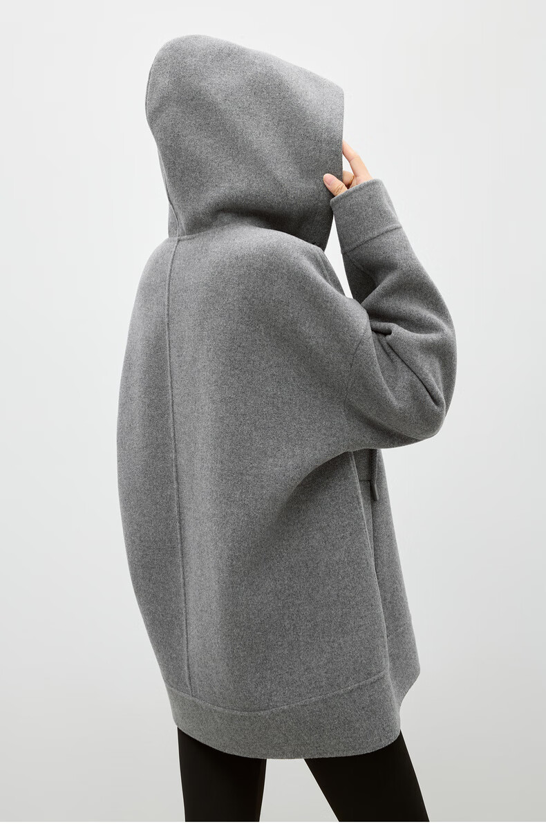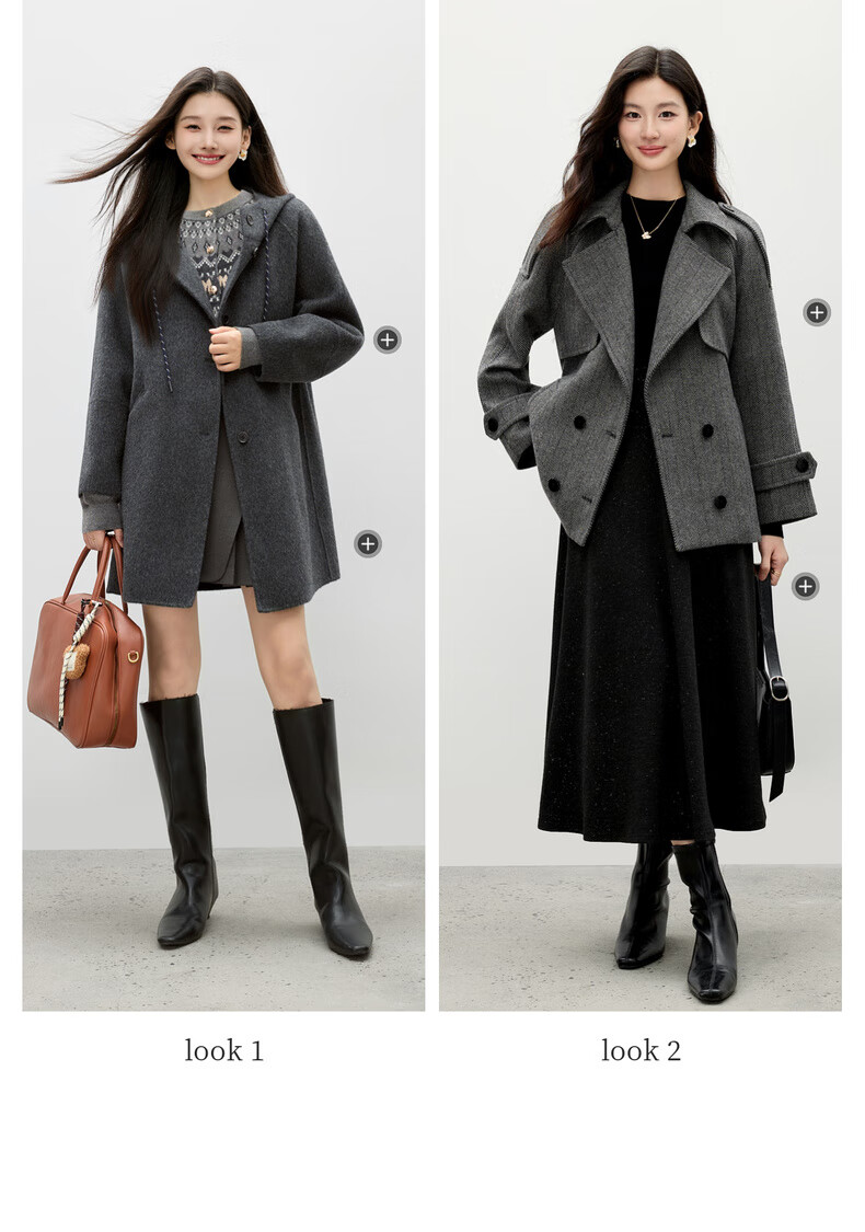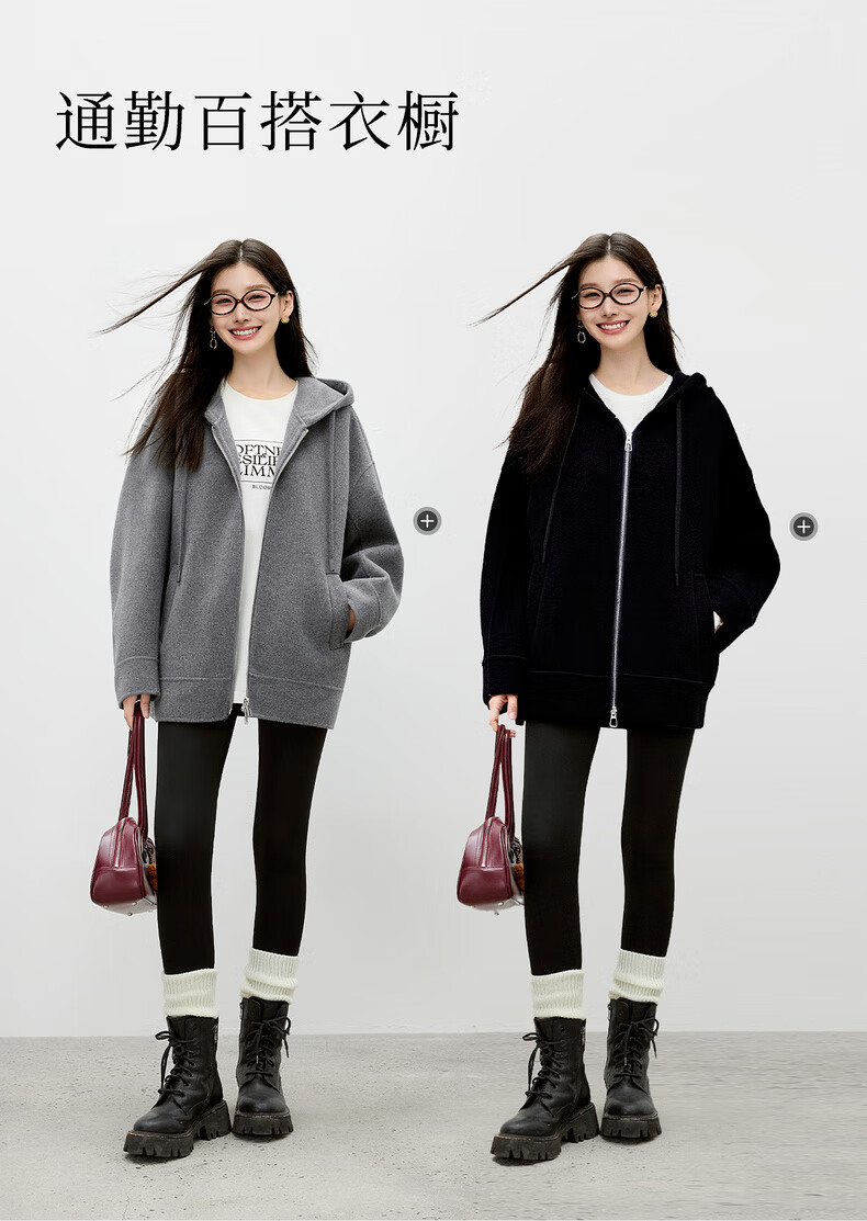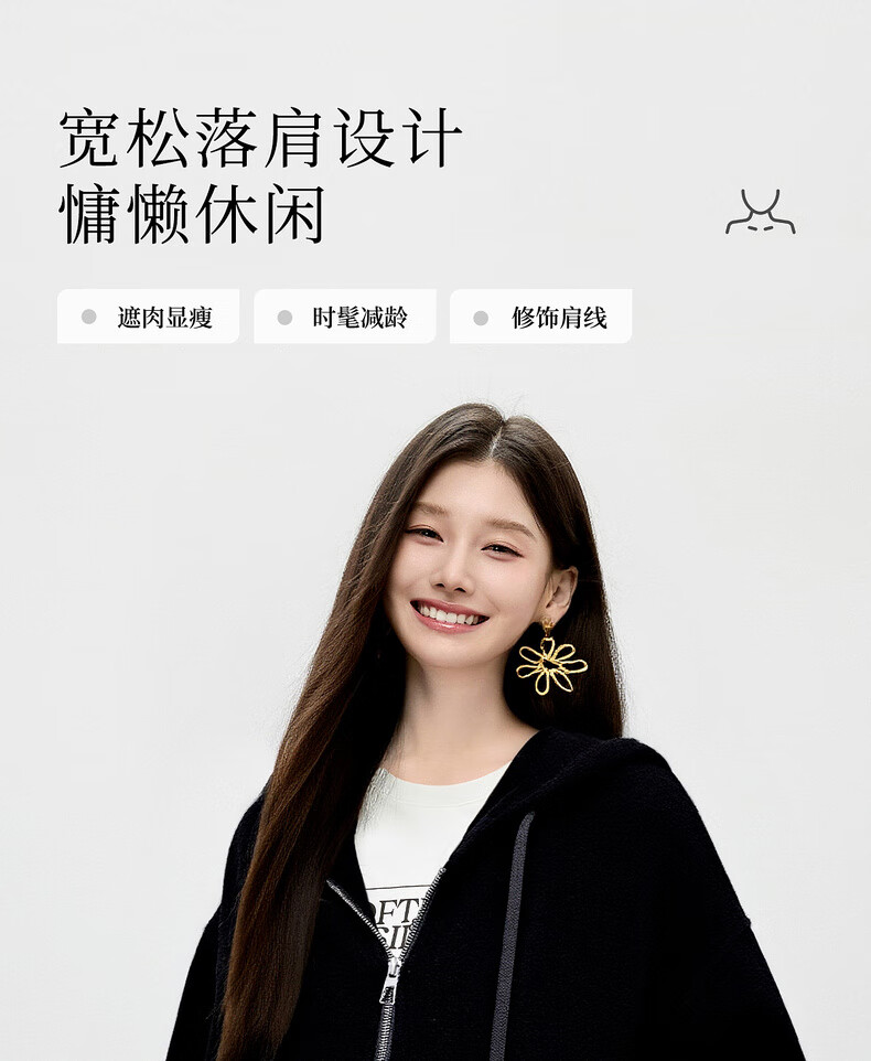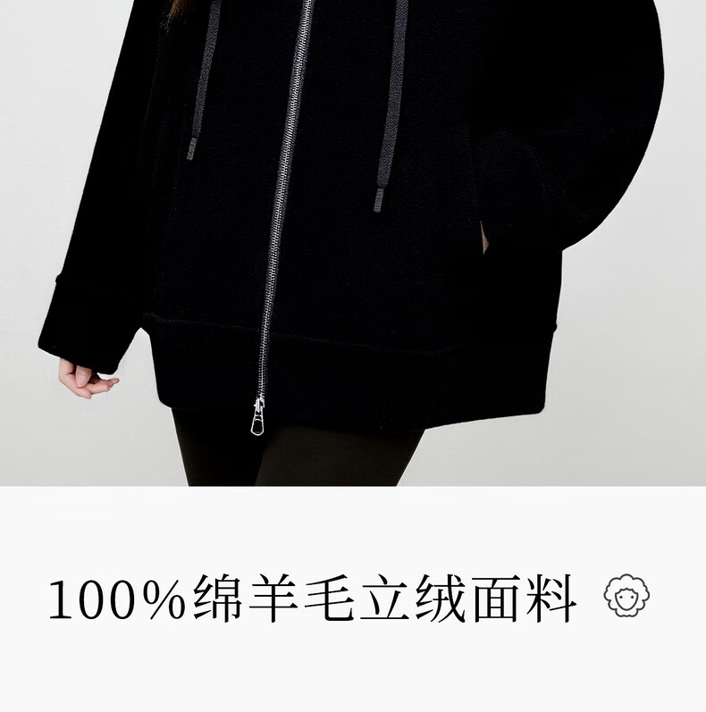 Qiushui Yiren Fashion 100% Sheep Wool Top 2025 Winter New Fall Shoulder Loose Hooded Woolen Jacket