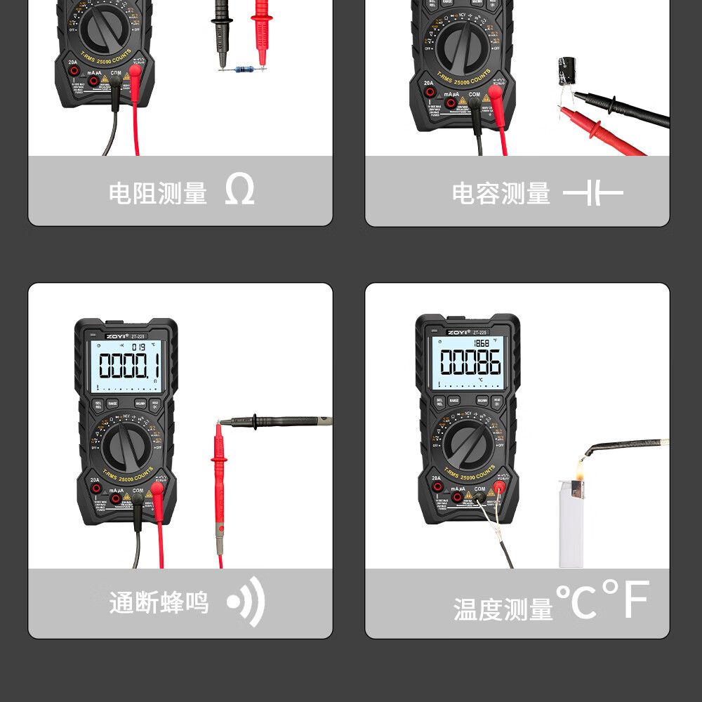 ZOYI ZOYI ZT-225 high-precision four-and-a-half-digit multimeter automatic range smart electrician anti-burn multimeter capacitor