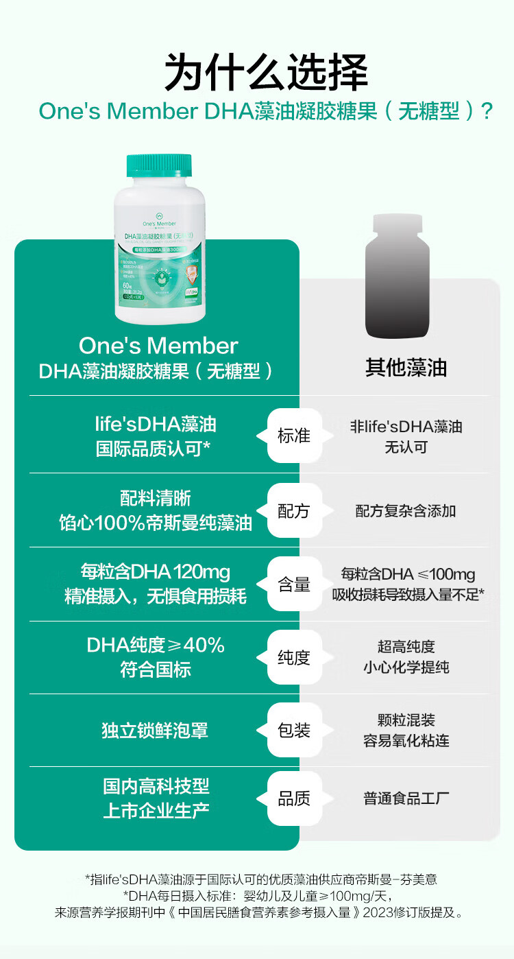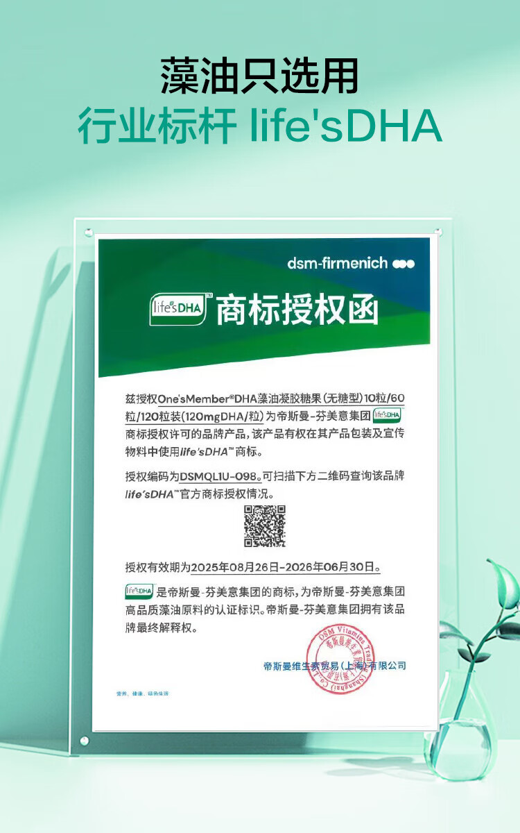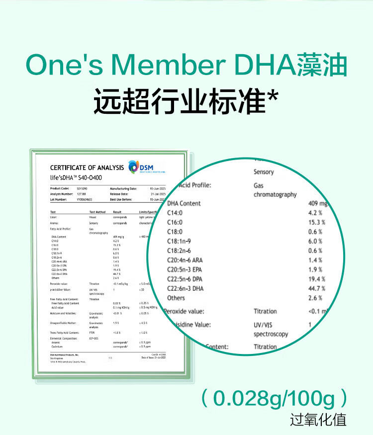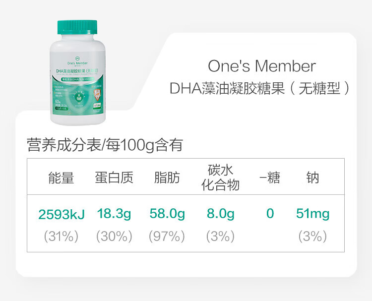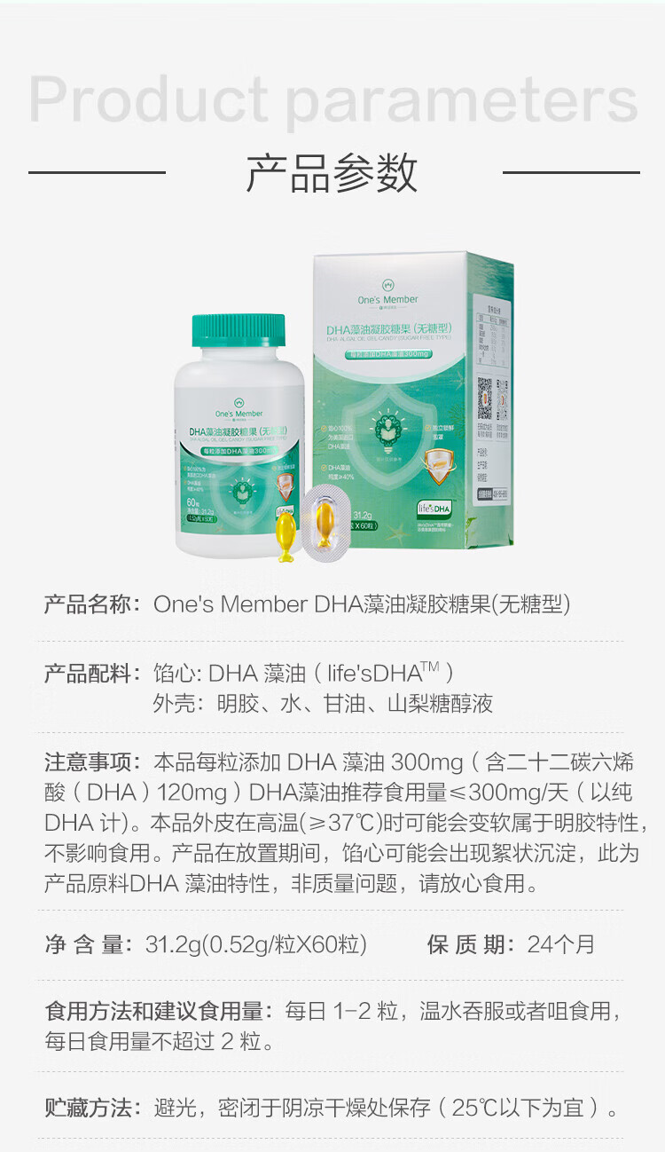One s Member Store (One s Member) DHA algae oil 60 capsules, infants, children, students, maternity, eye and brain nutrition, high content DSM dha imported from the United States