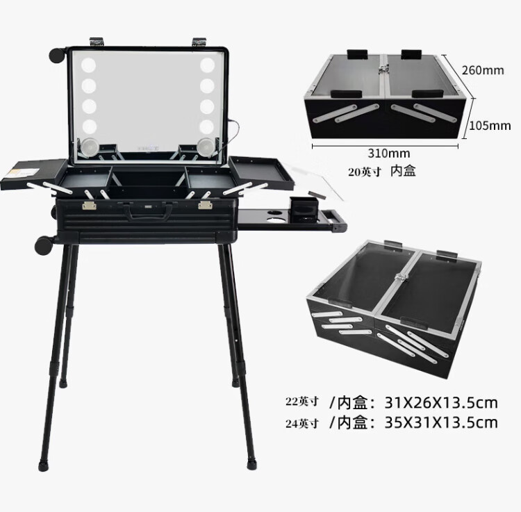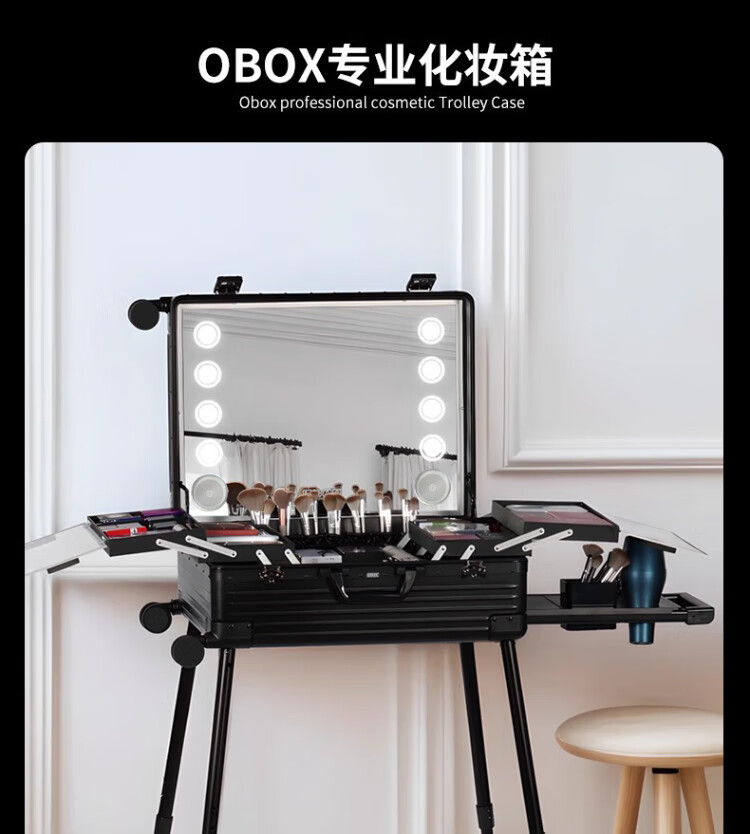 OBOX cosmetic case PC model 7-smart 8-light model-black 22 inches