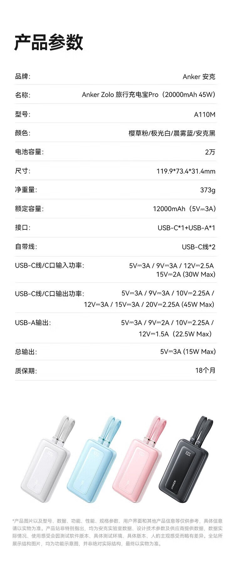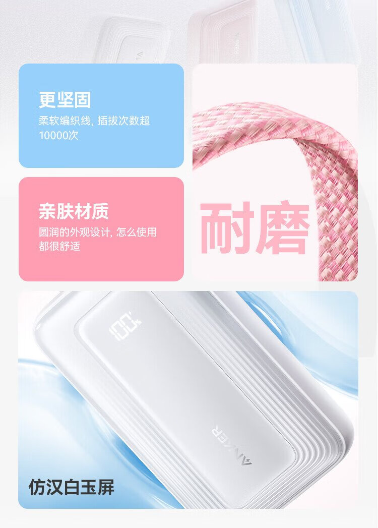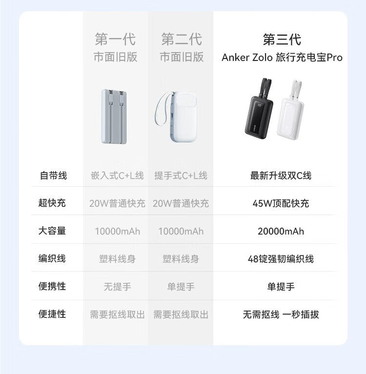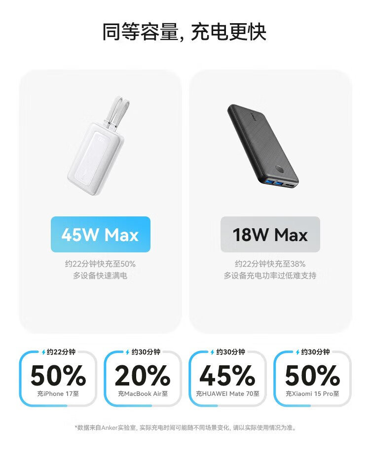 ANKER 3C certified travel power bank comes with dual C cable 45W 20000 mAh large capacity ultra-fast charging mobile power bank Android Apple Blue