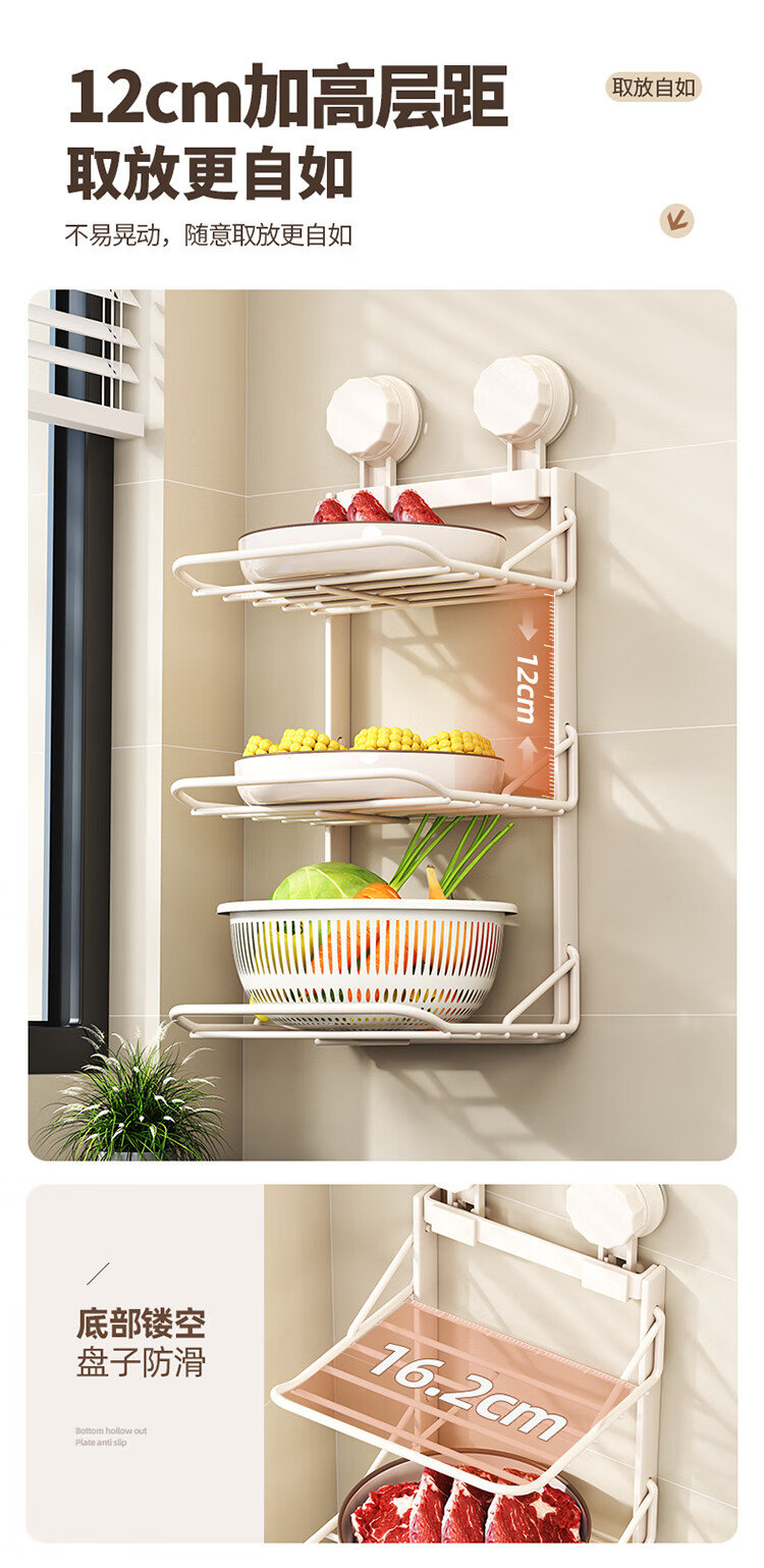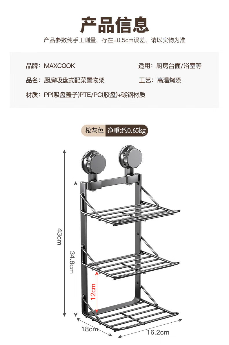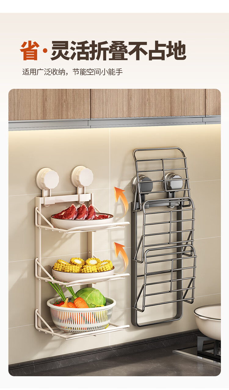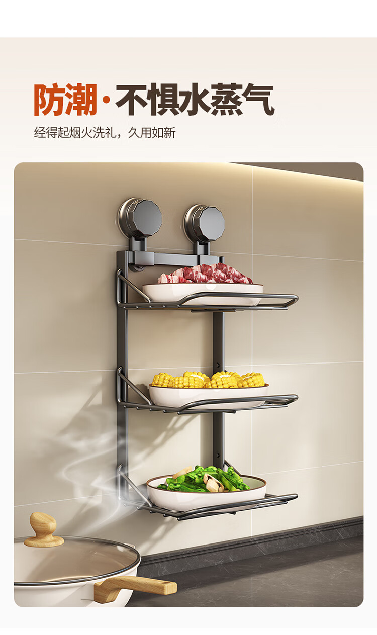 MAXCOOK food preparation side dish rack suction cup rack kitchen storage rack foldable storage rack pot rack side dish tray 3-layer MCZW3464