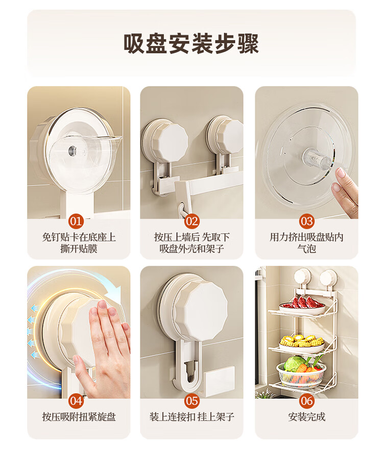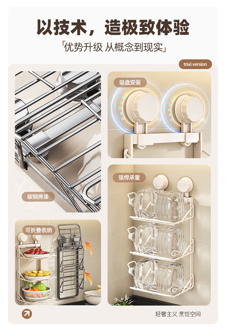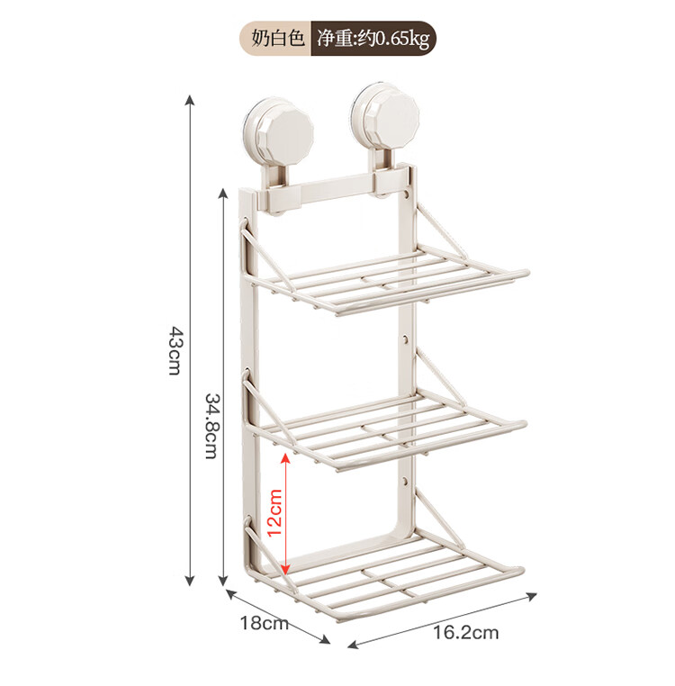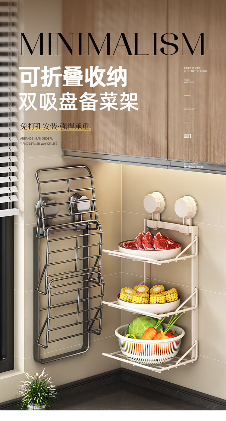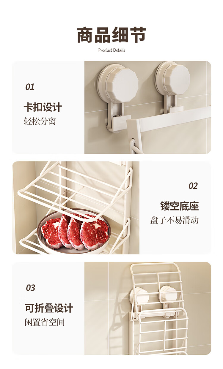 MAXCOOK food preparation side dish rack suction cup rack kitchen storage rack foldable storage rack pot rack side dish tray 3-layer MCZW3464