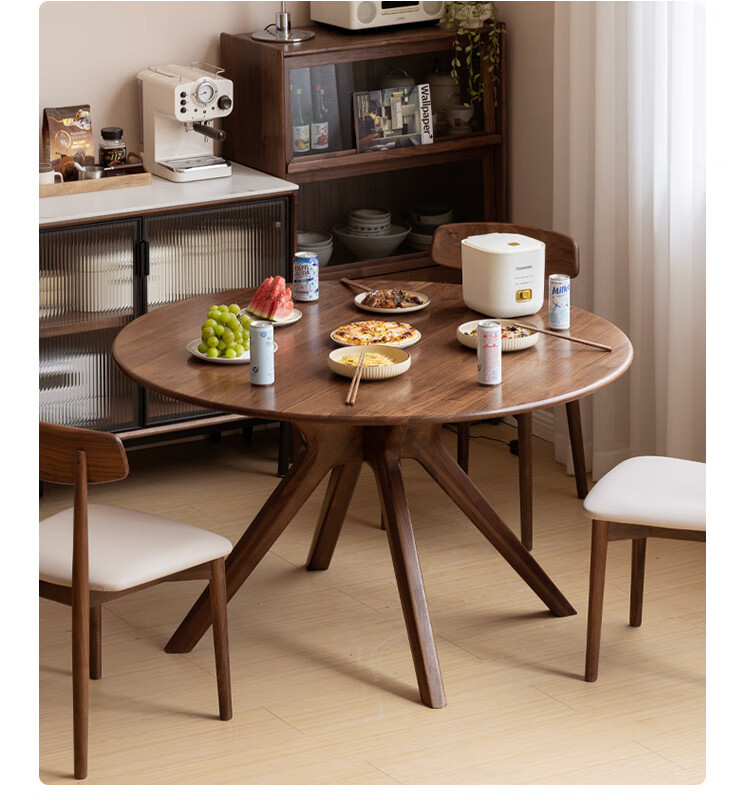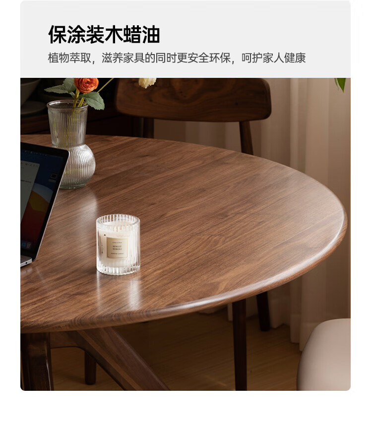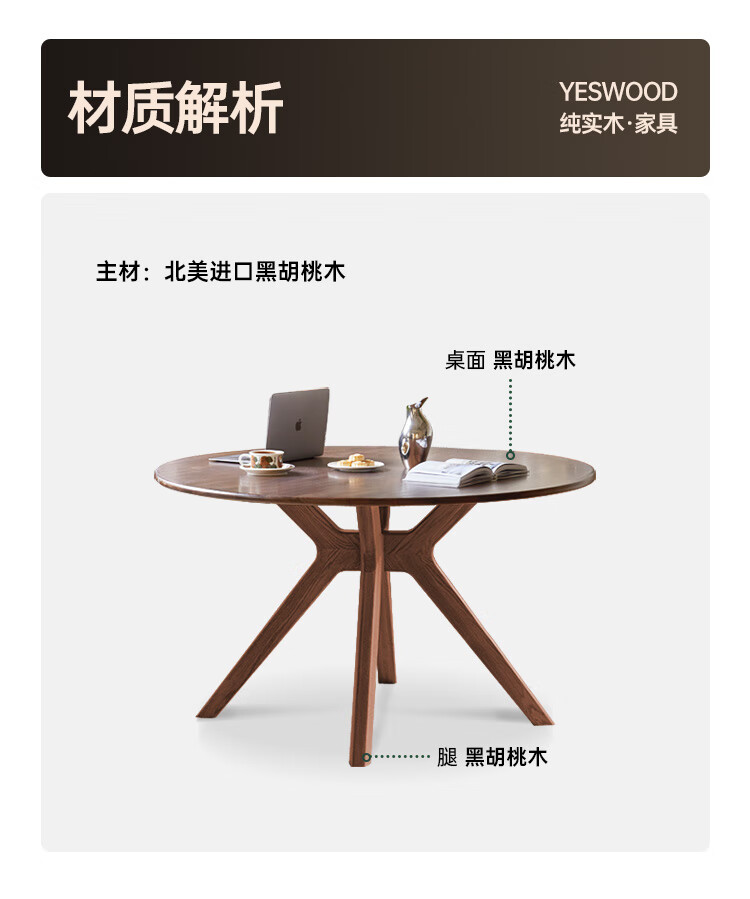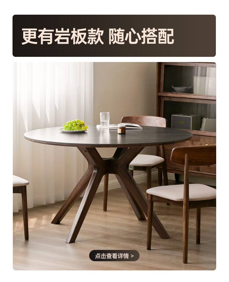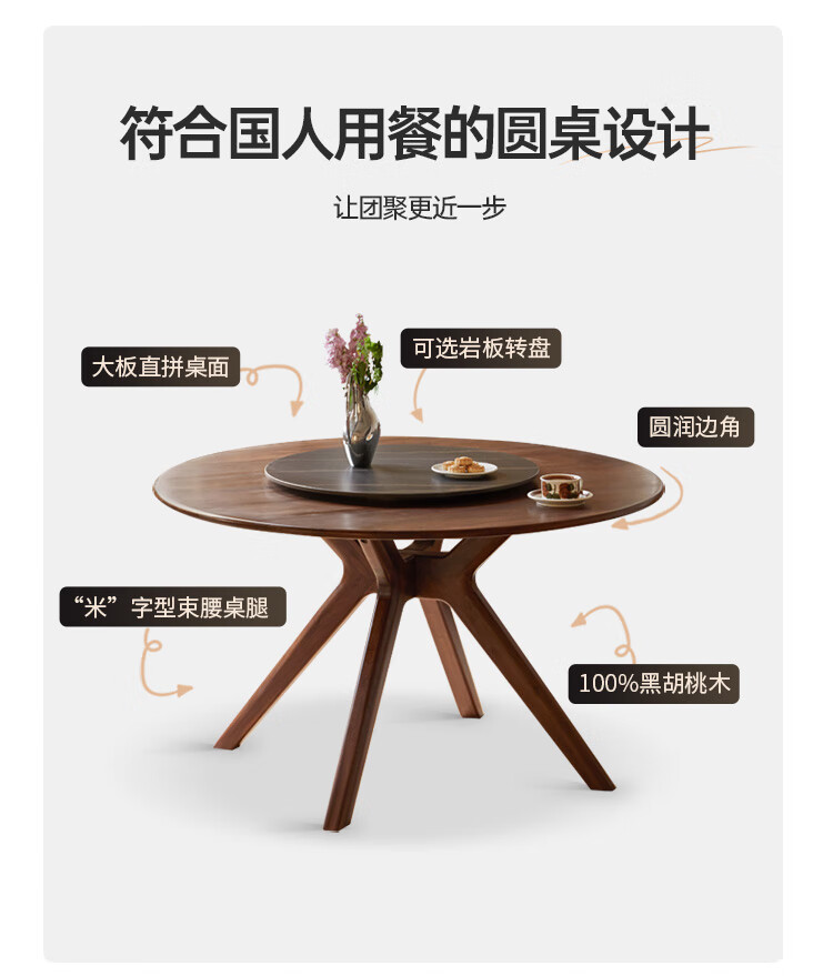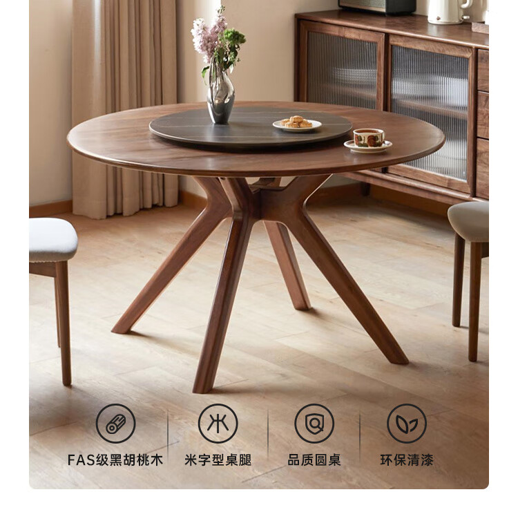 Genji Muyu solid wood dining table black walnut slate round table with turntable dining table small apartment round 1.2 meters solid wood table single table