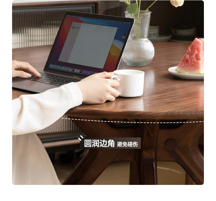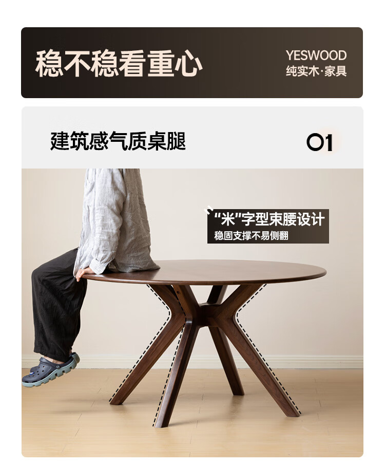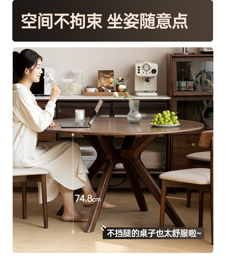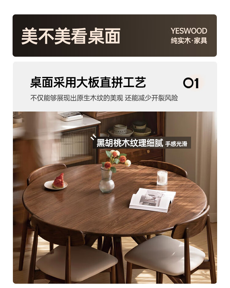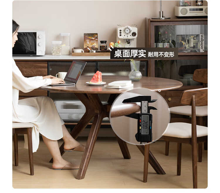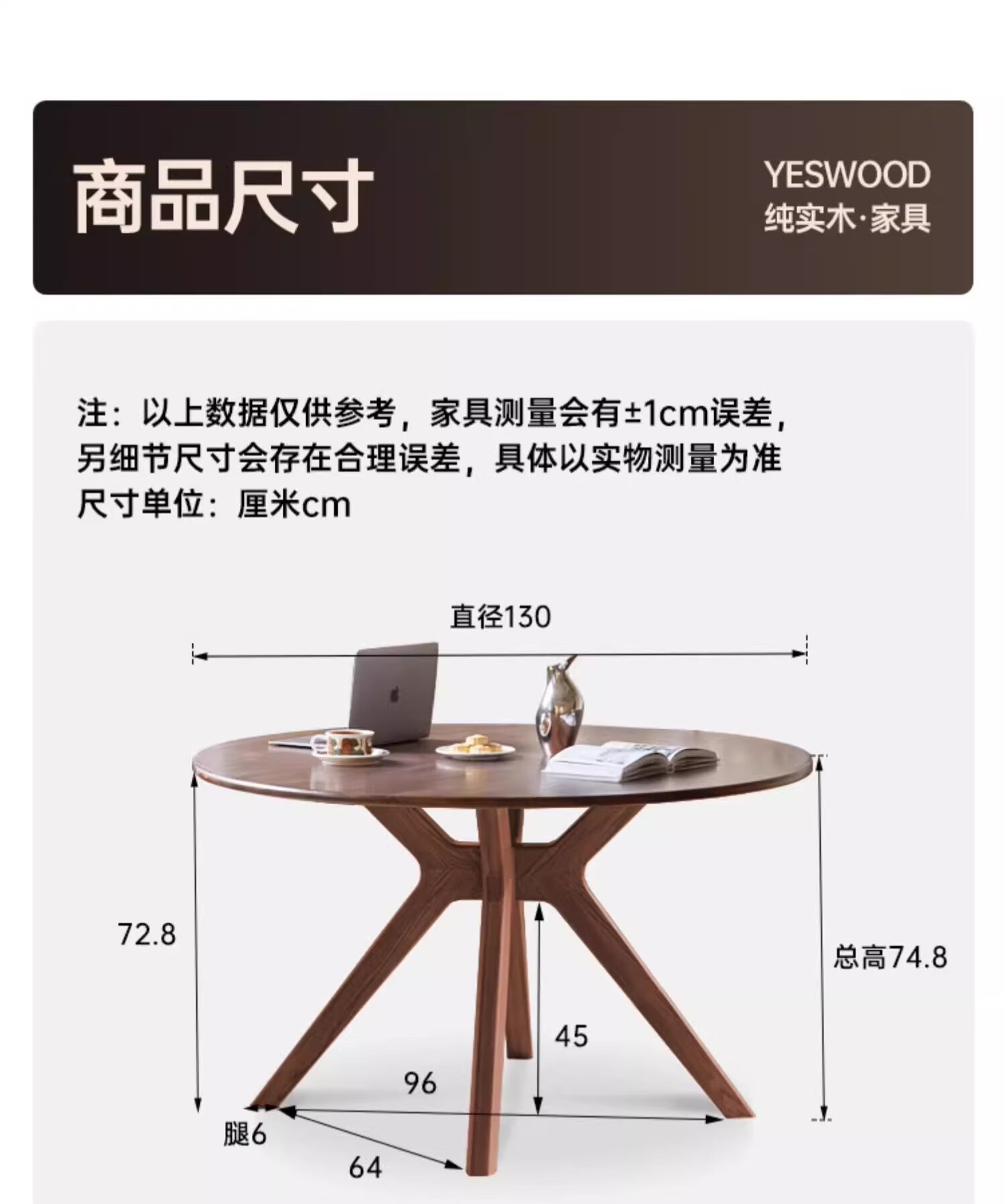 Genji Muyu solid wood dining table black walnut slate round table with turntable dining table small apartment round 1.2 meters solid wood table single table