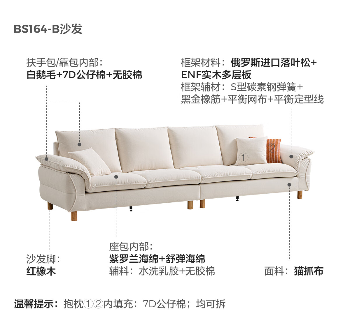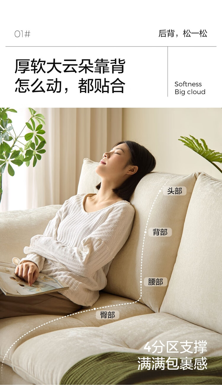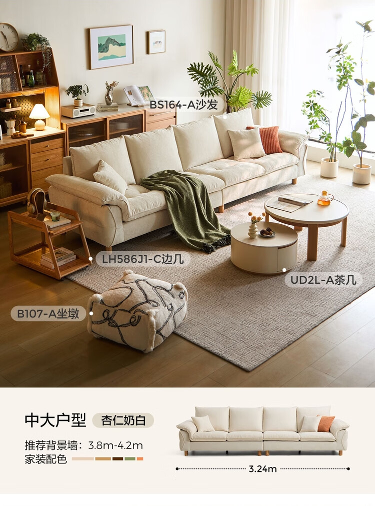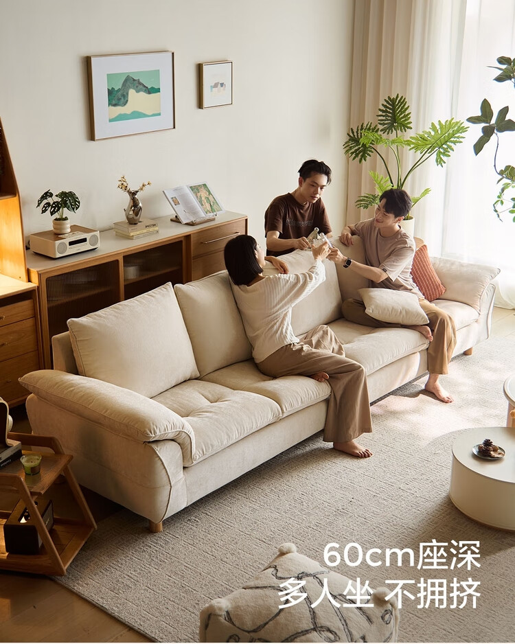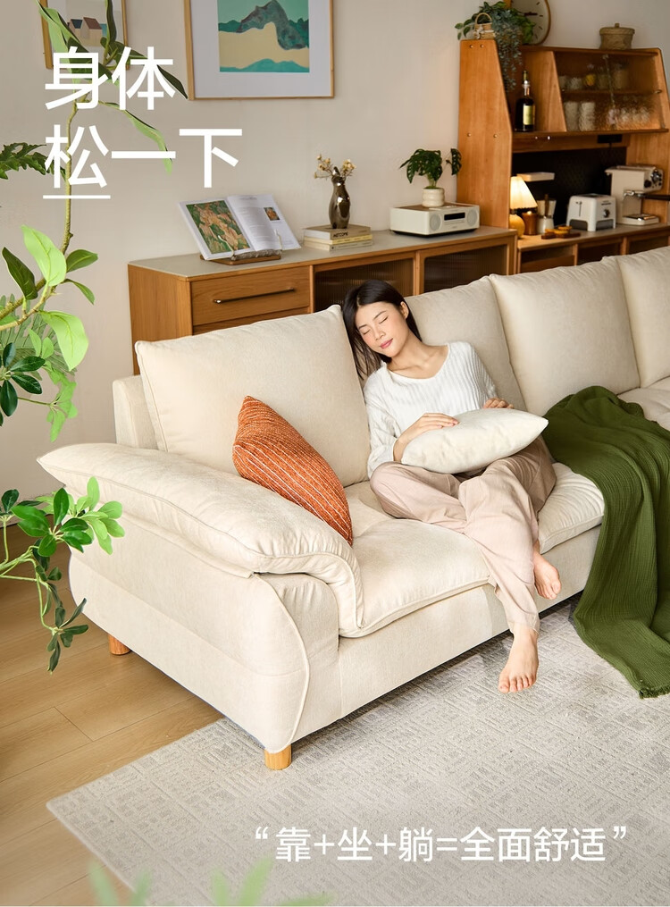 Lin's Home Wood Industry Imitation Cotton and Linen Fabric Sofa Living Room 2025 New Cloud Nordic Style Straight Row Foshan Furniture BS164