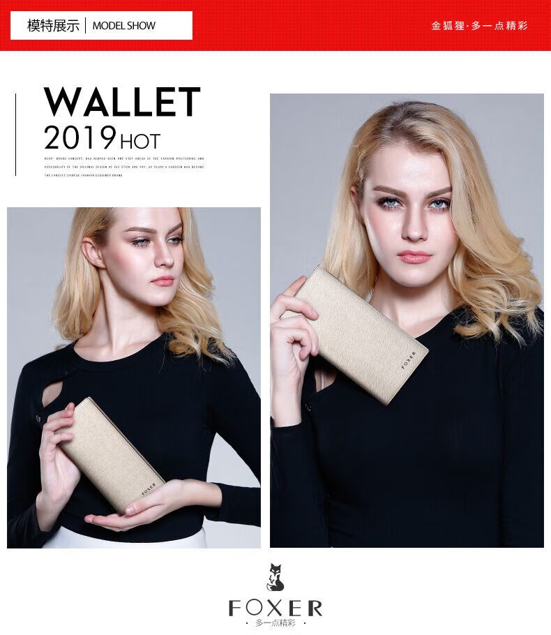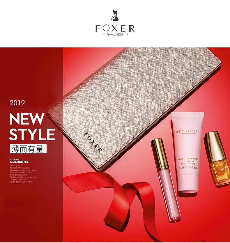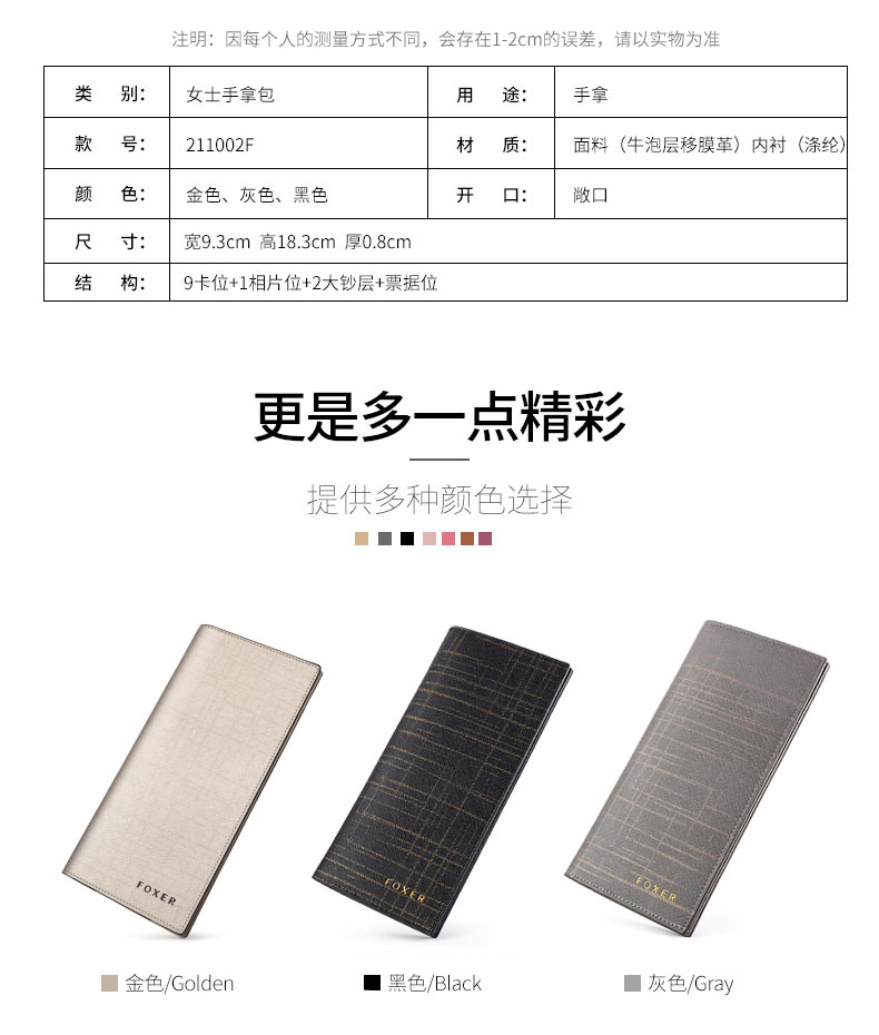 Golden Fox (FOXER) cowhide women's wallet large capacity long card holder money wallet clutch bag coin purse birthday gift for girlfriend