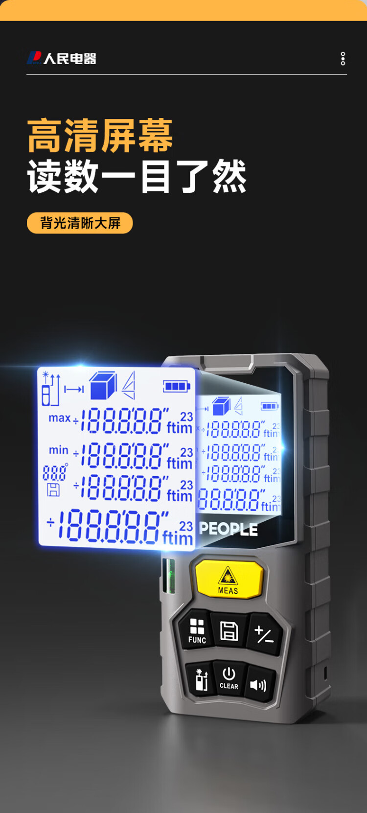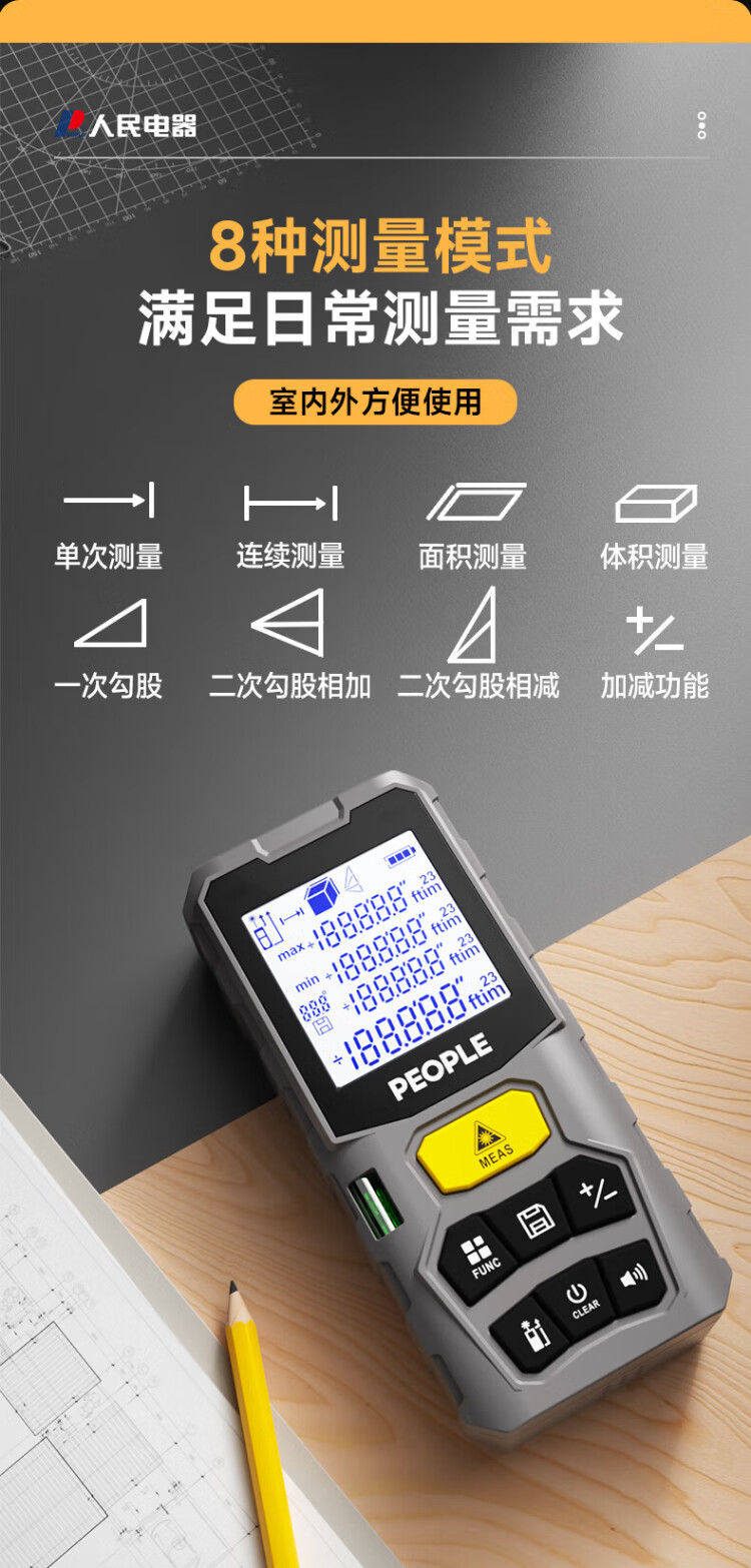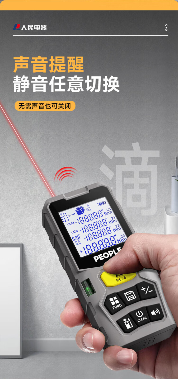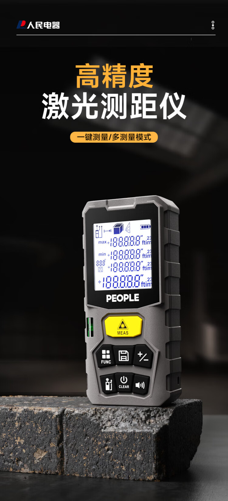 People's high-precision laser range finder handheld indoor and outdoor room measuring instrument electronic ruler multiple measurement modes 120 meters