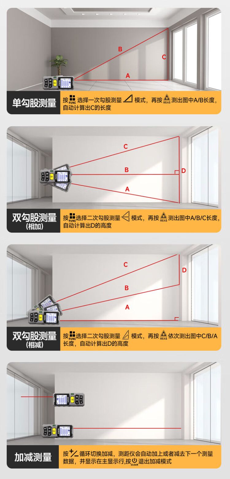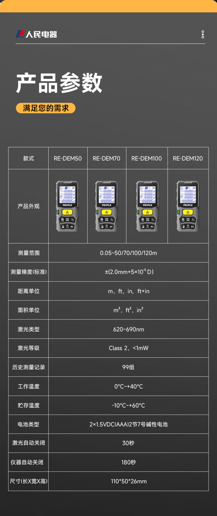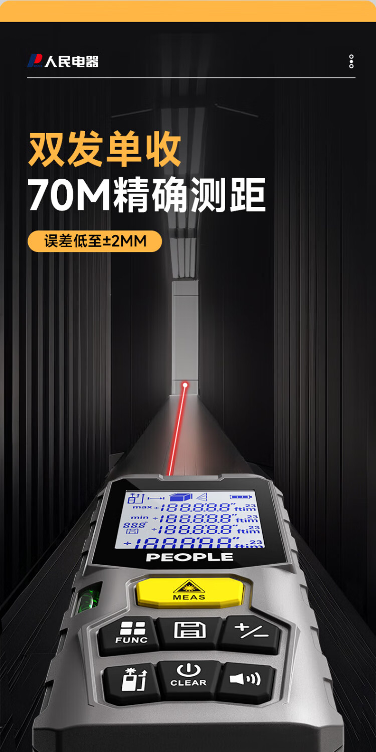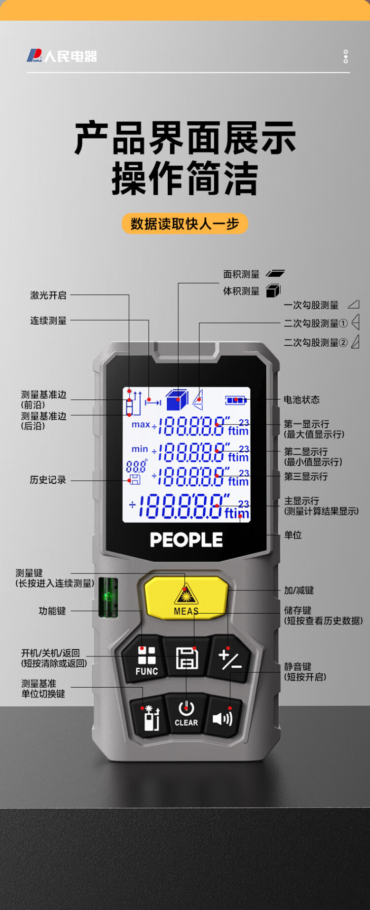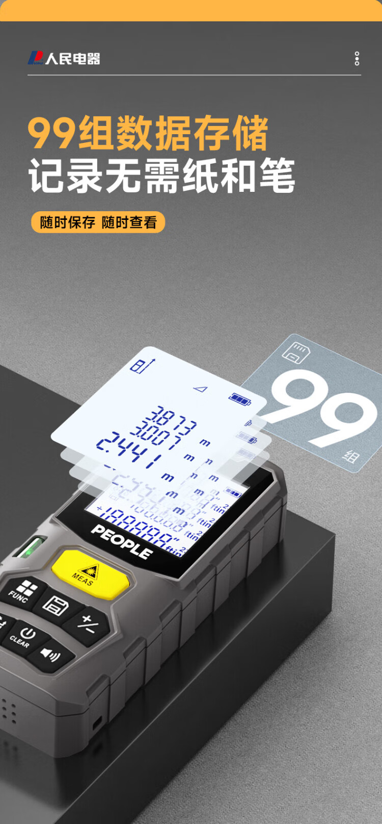 People's high-precision laser range finder handheld indoor and outdoor room measuring instrument electronic ruler multiple measurement modes 120 meters