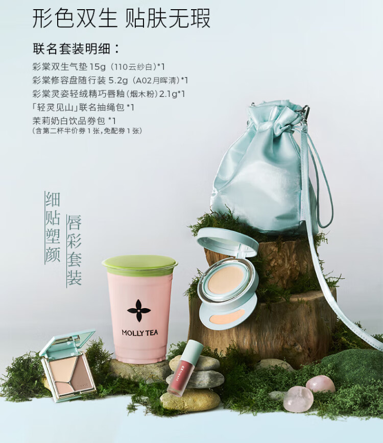 Caitang Limited Sale Double Air Cushion Jasmine Milk White Limited Edition Co-branded Makeup Set Contouring Lip Glaze for Girlfriend