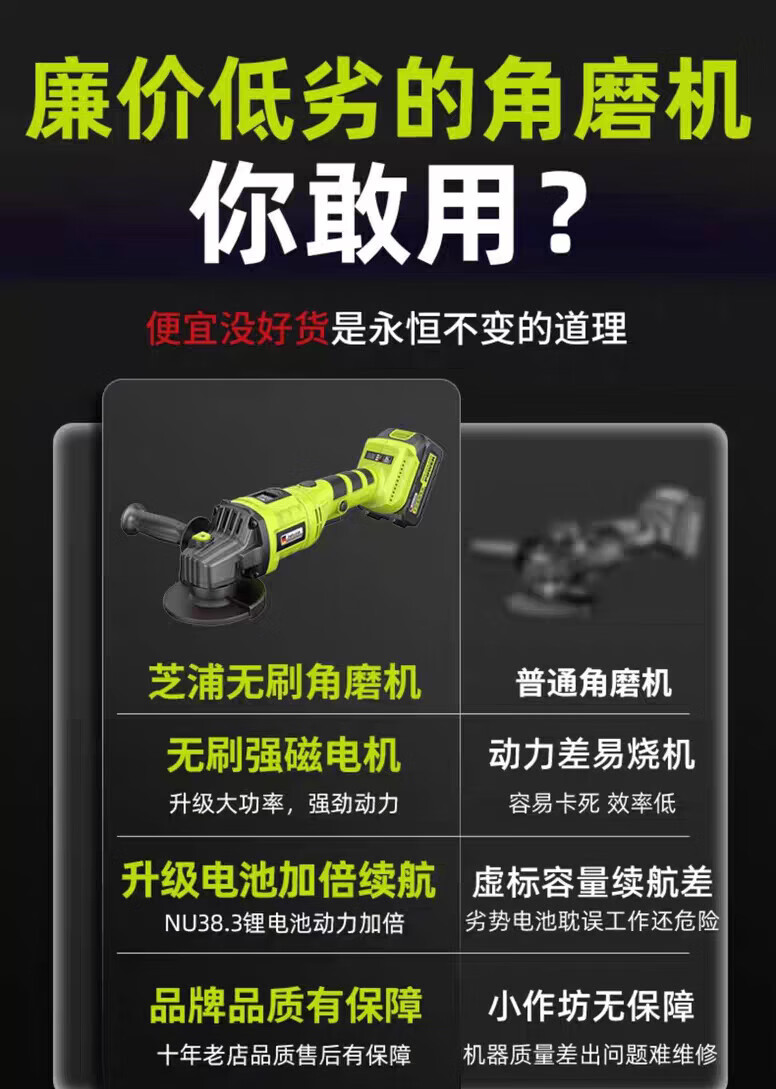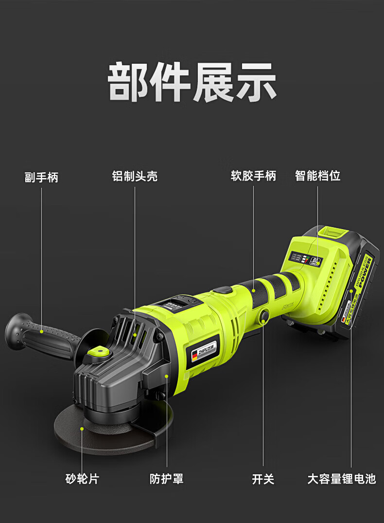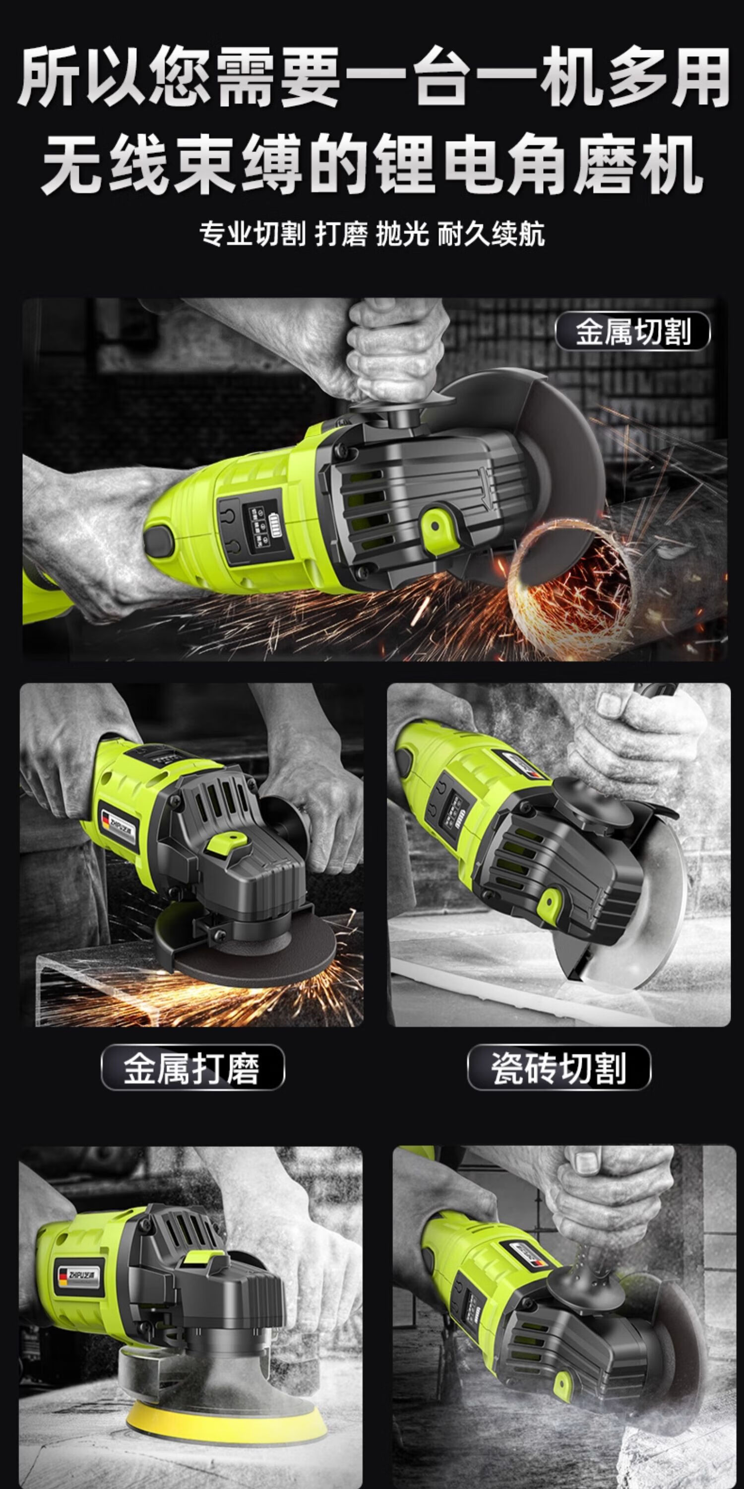 Shibaura brushless lithium angle grinder lithium battery high power cutting machine small household electric 15-section dual electric grinder