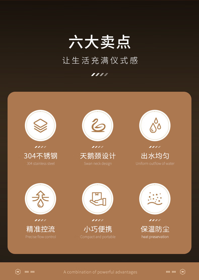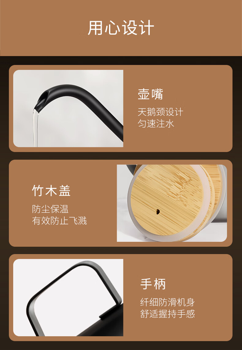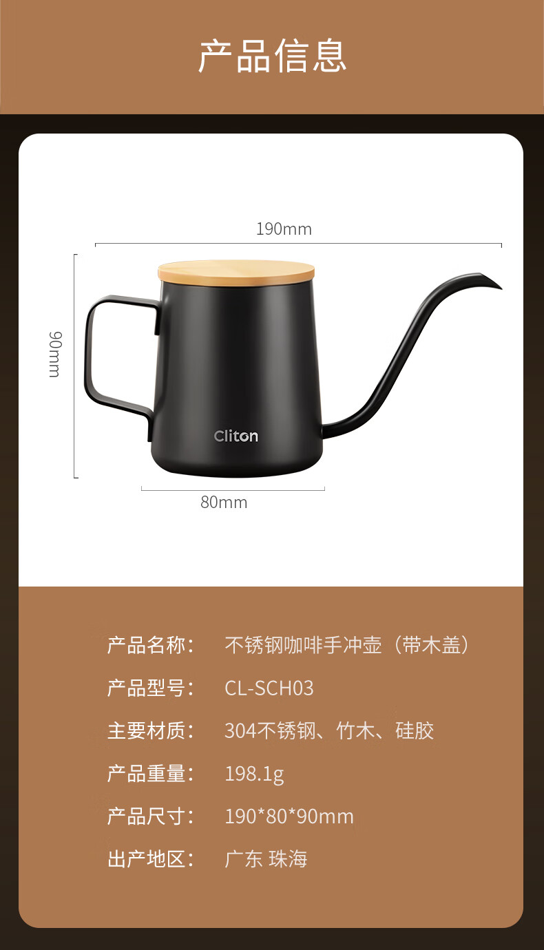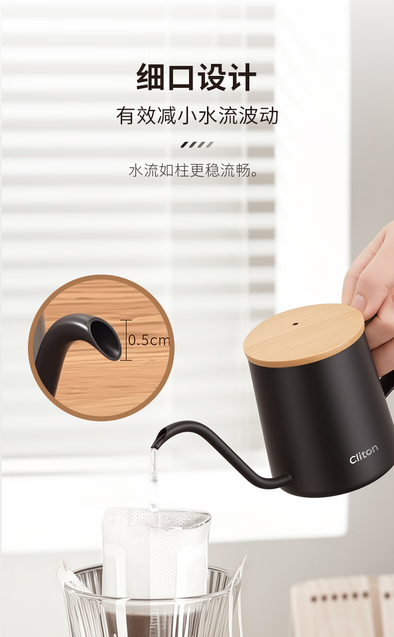 CLITON304 stainless steel hand brewed coffee pot travel office home hanging wooden handle ear coffee long mouth pot thin mouth pot with lid