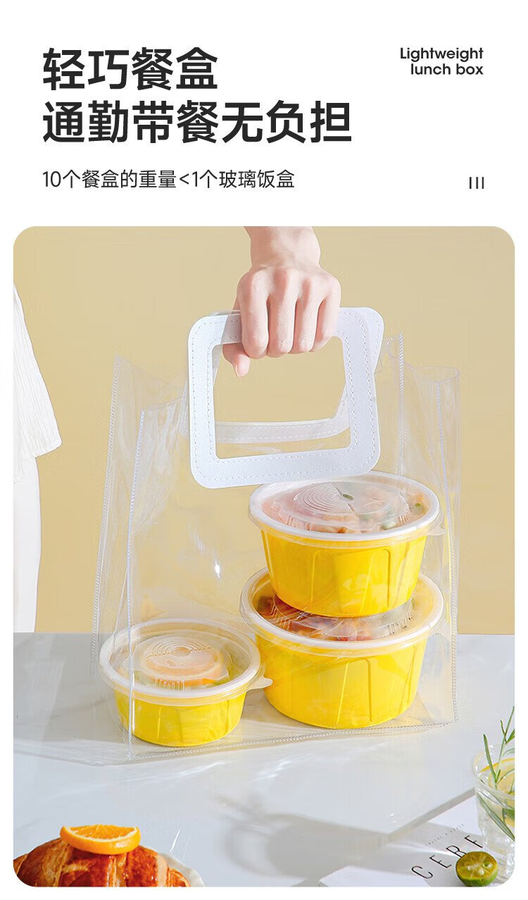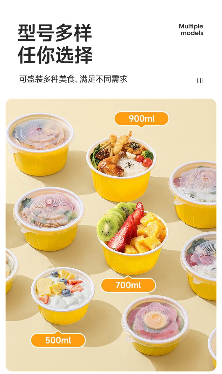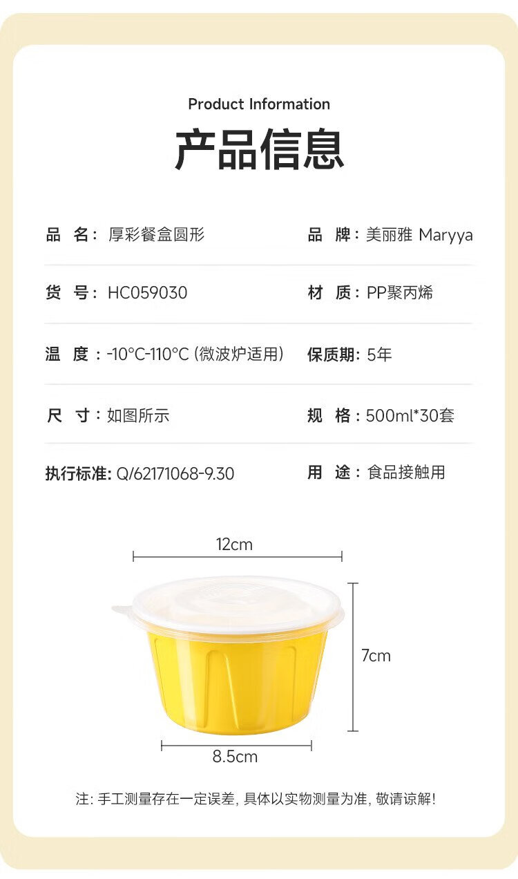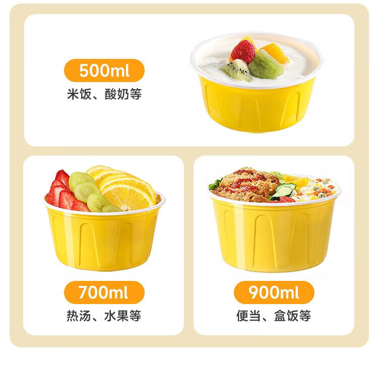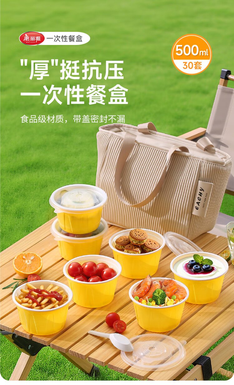 Meiya disposable lunch box round lunch box with lid 500ml*30 set food grade picnic takeaway fruit packaging box soup bowl