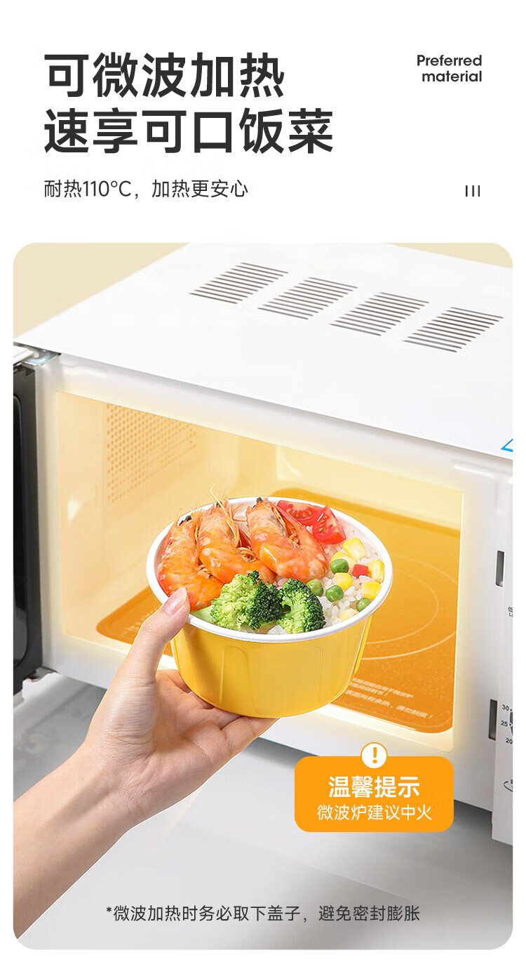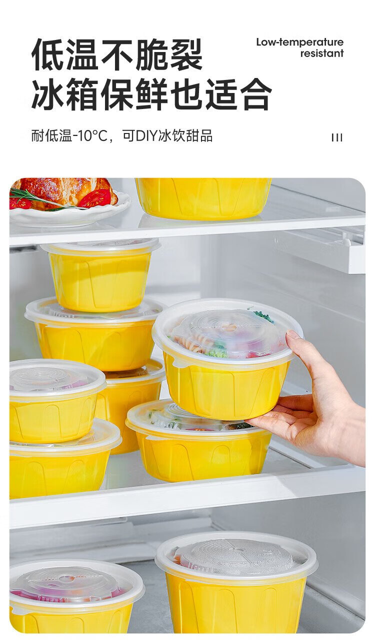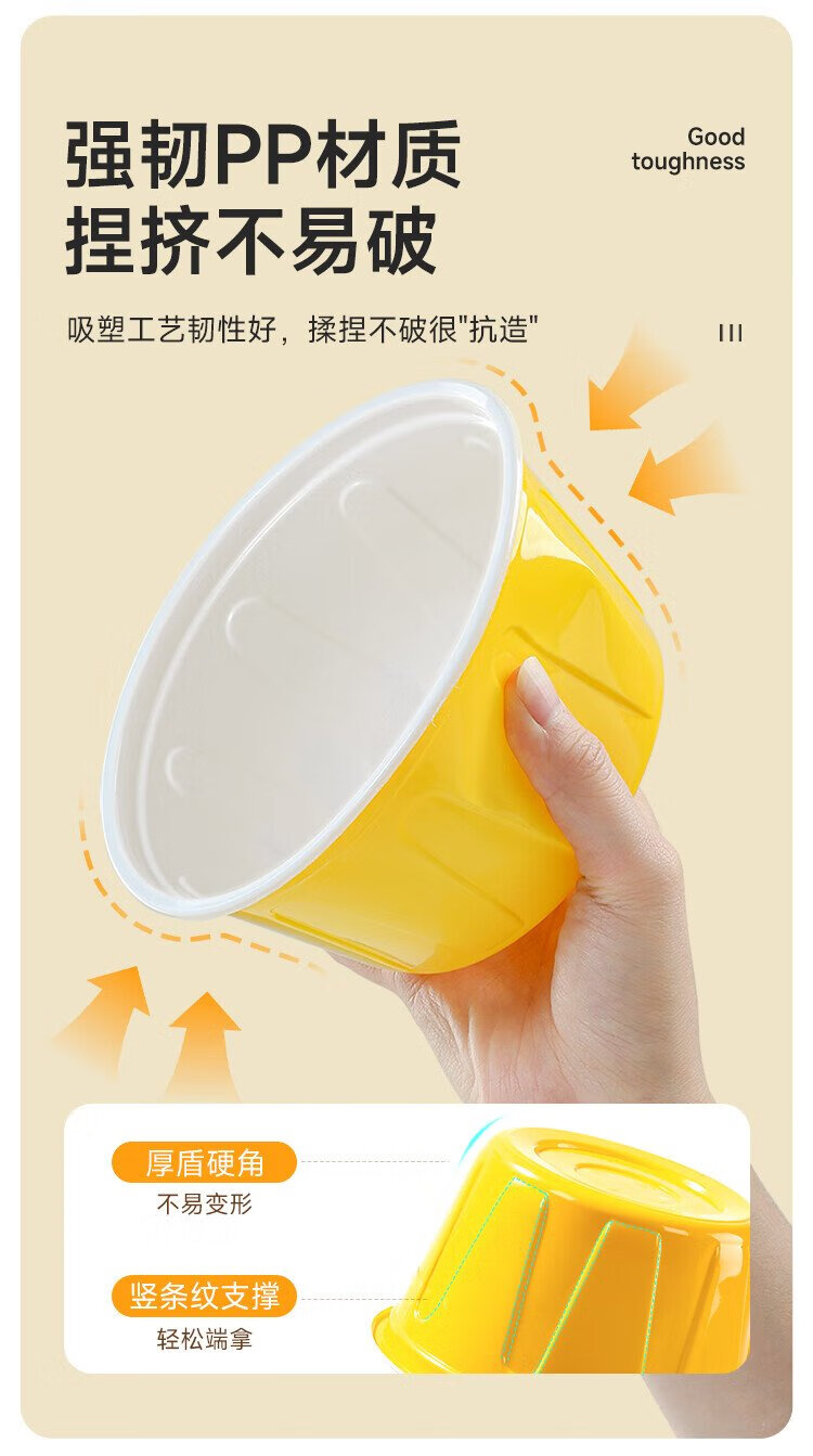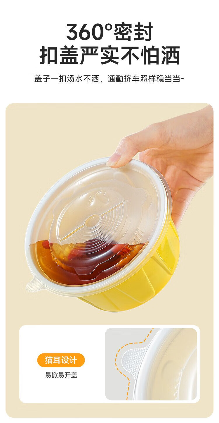 Meiya disposable lunch box round lunch box with lid 500ml*30 set food grade picnic takeaway fruit packaging box soup bowl