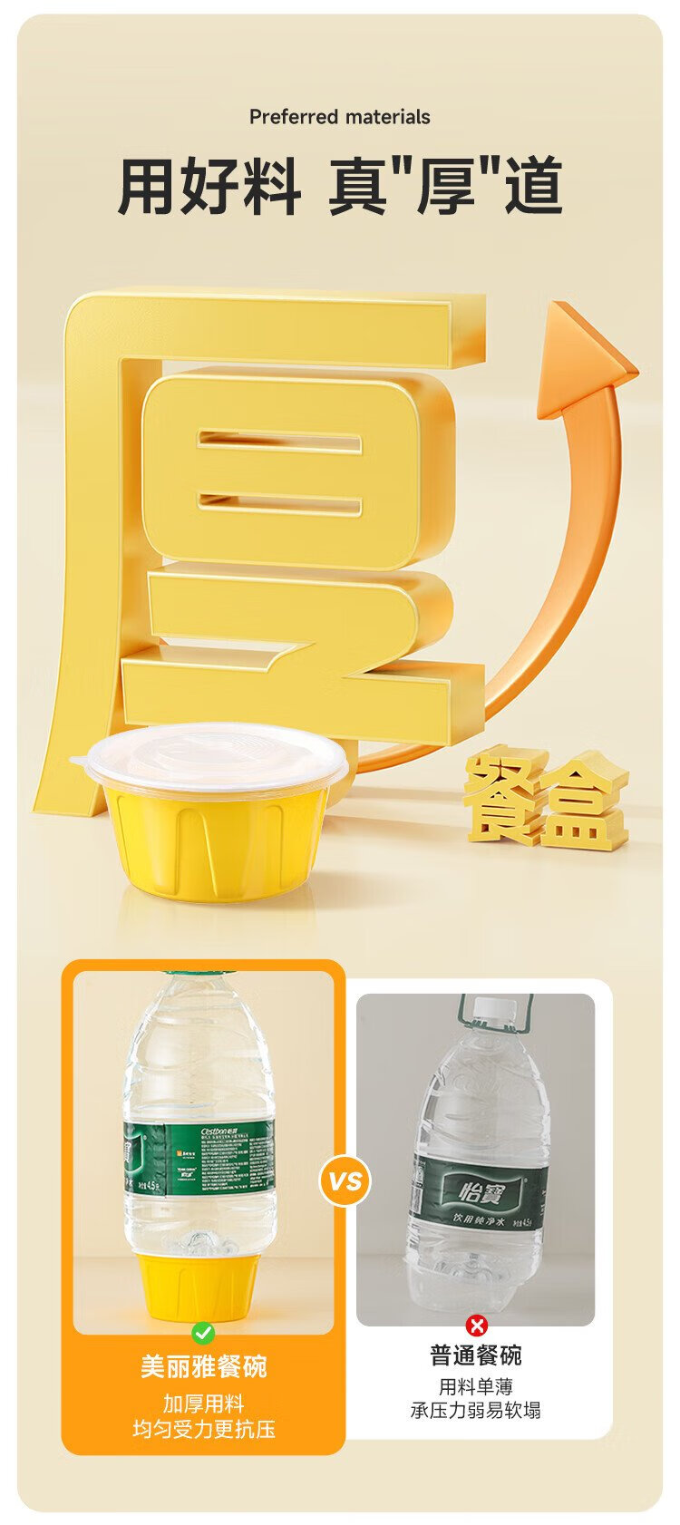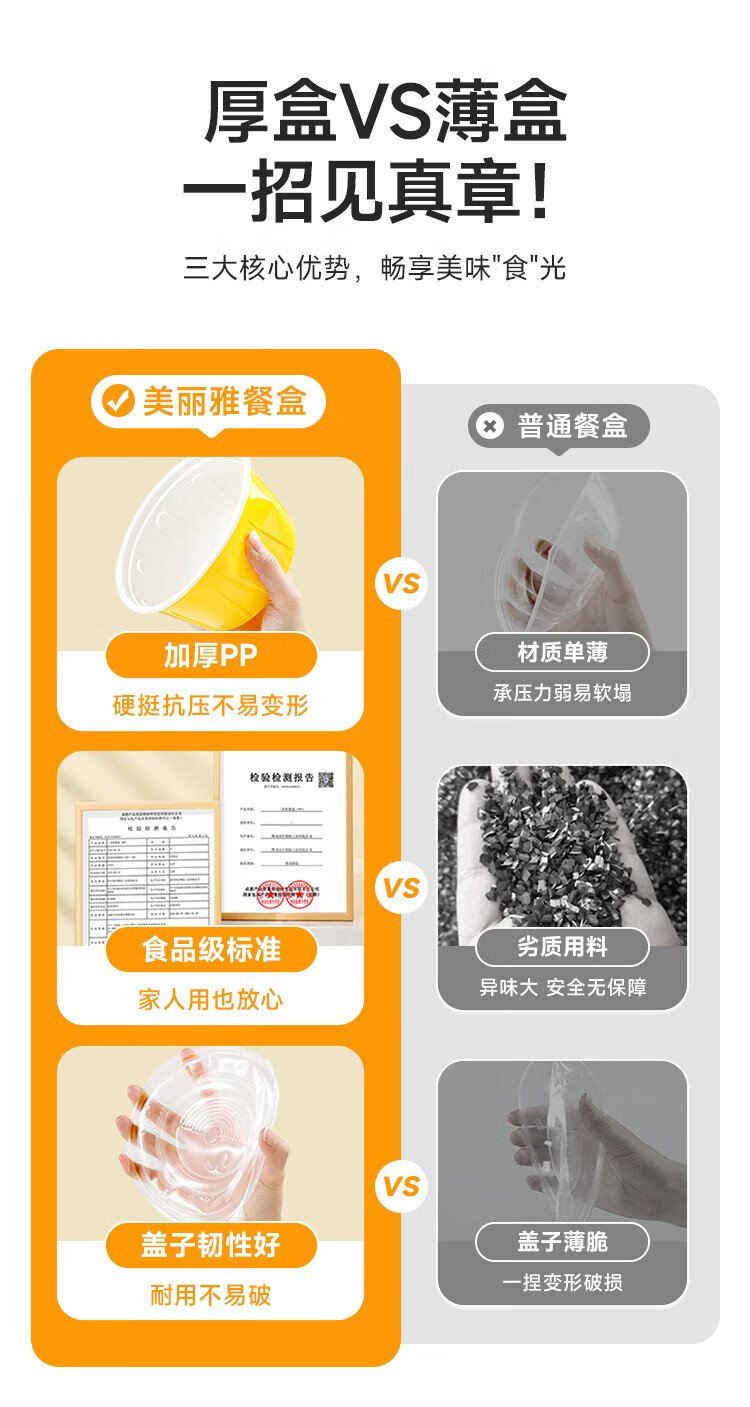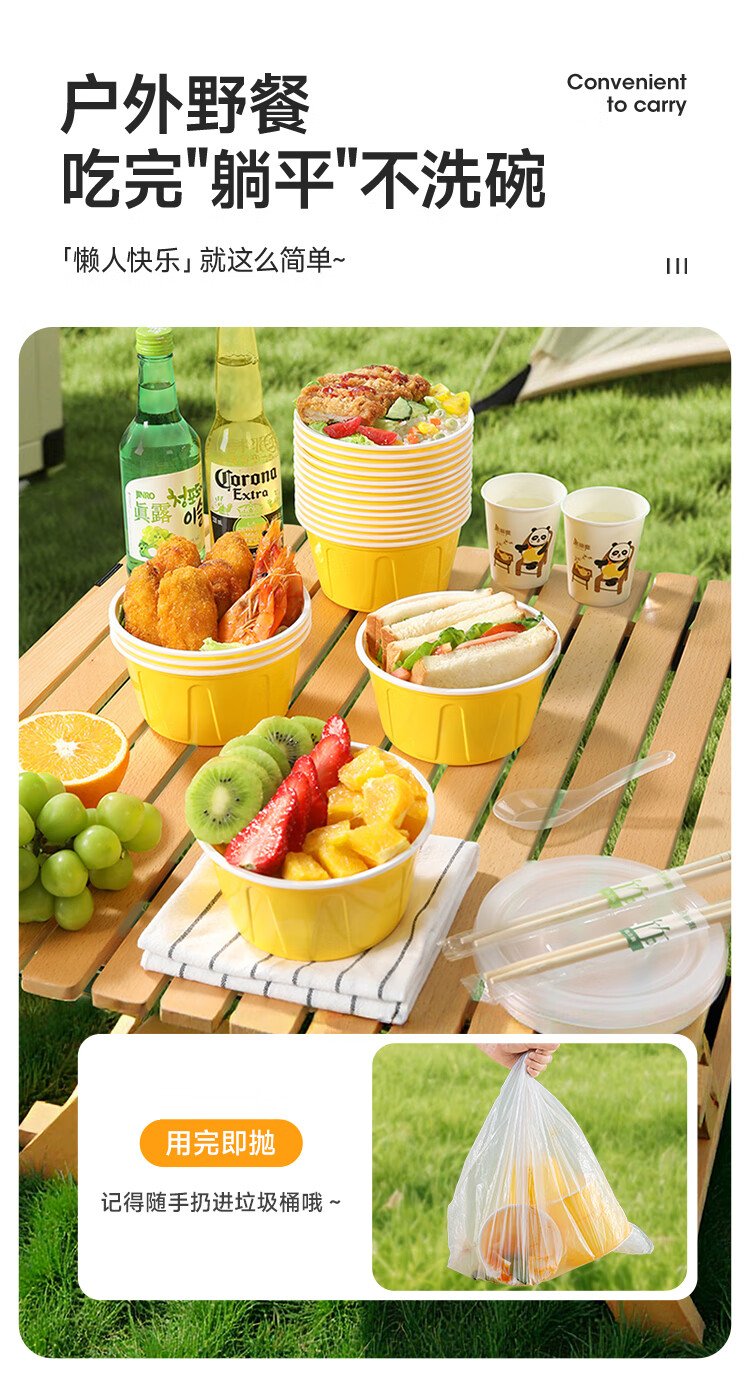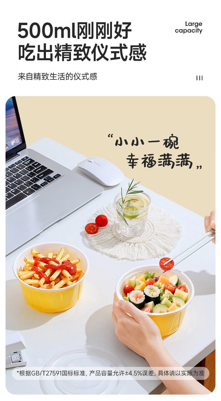 Meiya disposable lunch box round lunch box with lid 500ml*30 set food grade picnic takeaway fruit packaging box soup bowl