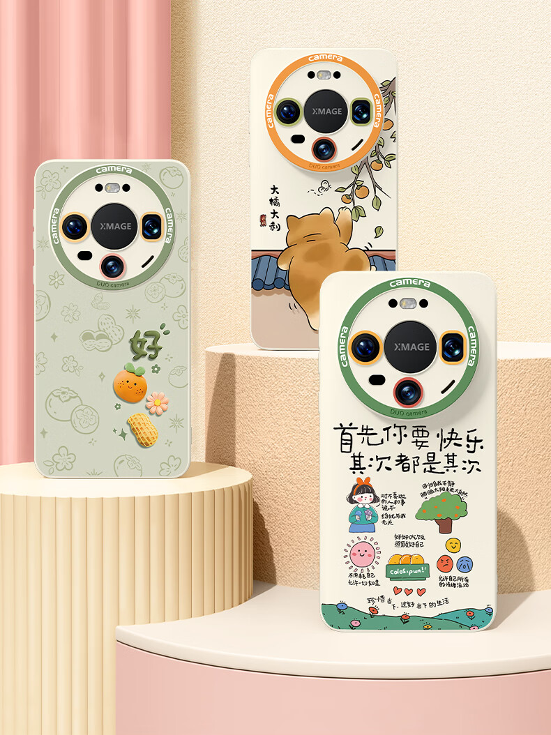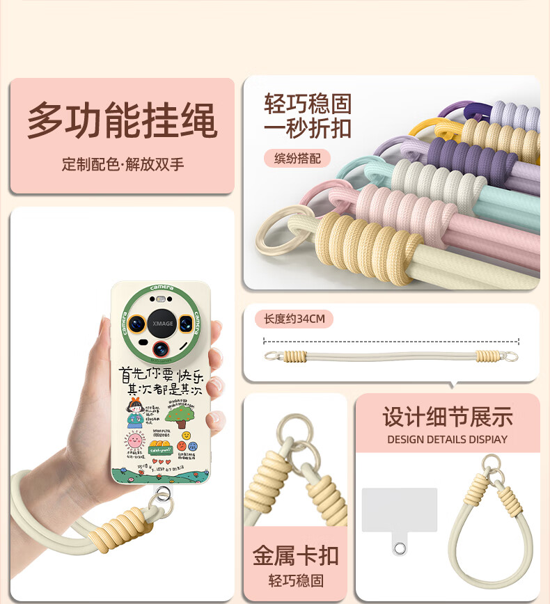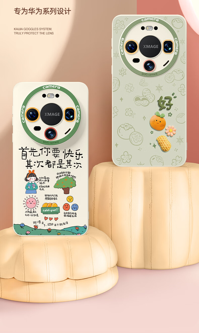 Keliman is suitable for Huawei mate80 mobile phone case lens all-inclusive mate80pro protective soft shell silicone strap lanyard anti-fall cartoon cute boys and girls - antique white persimmon peanut
