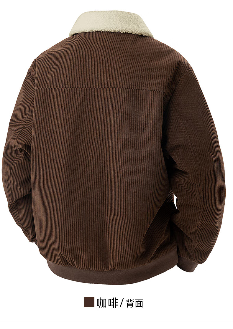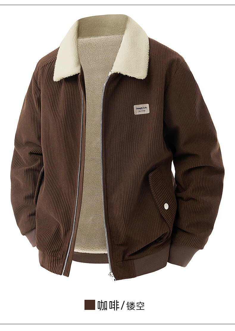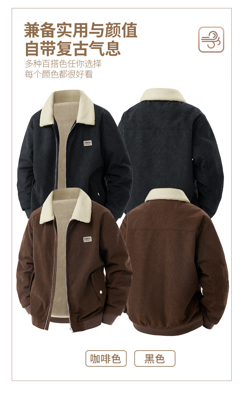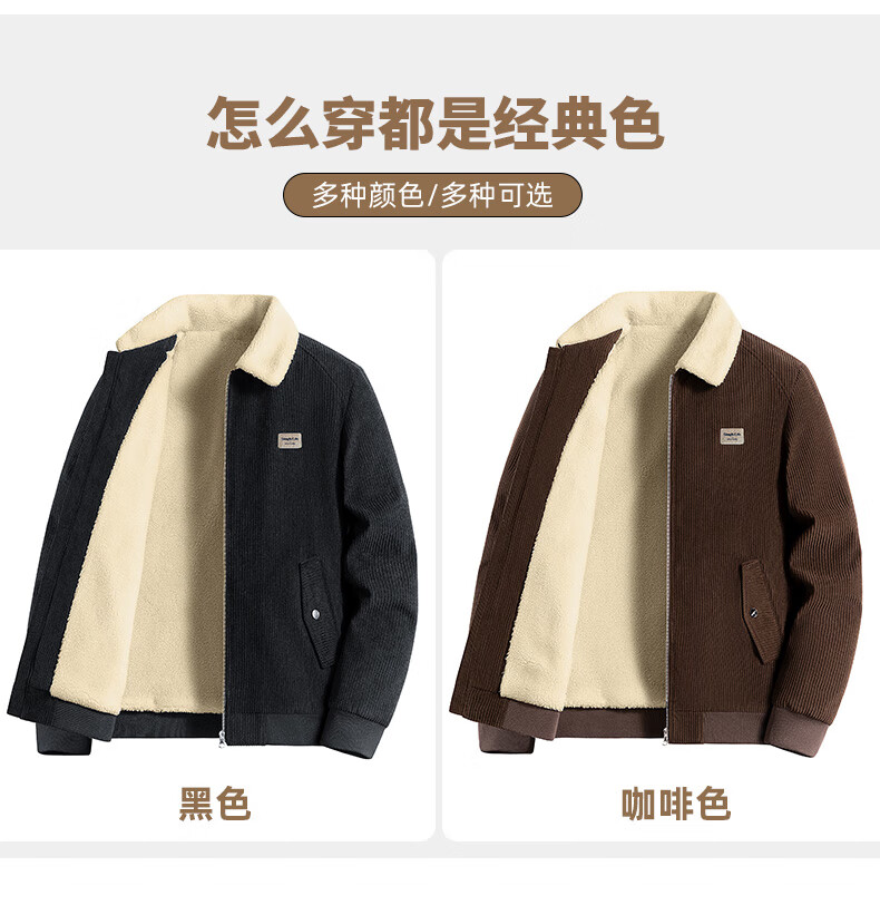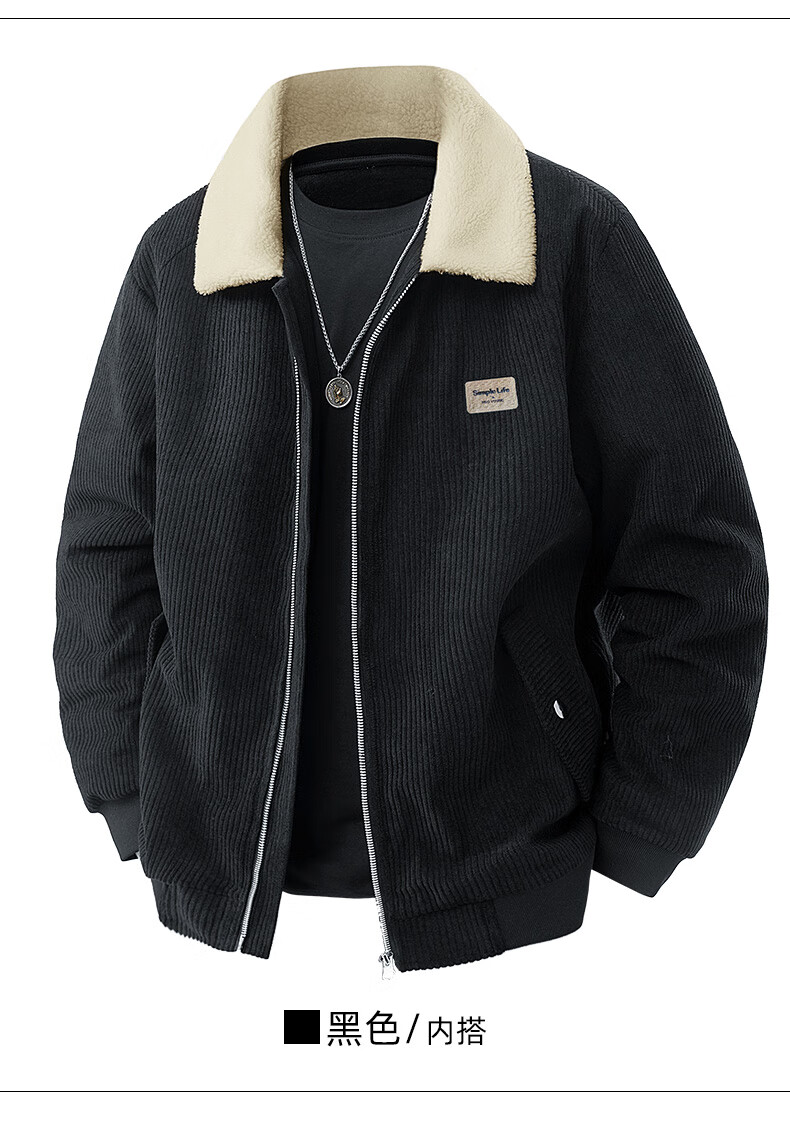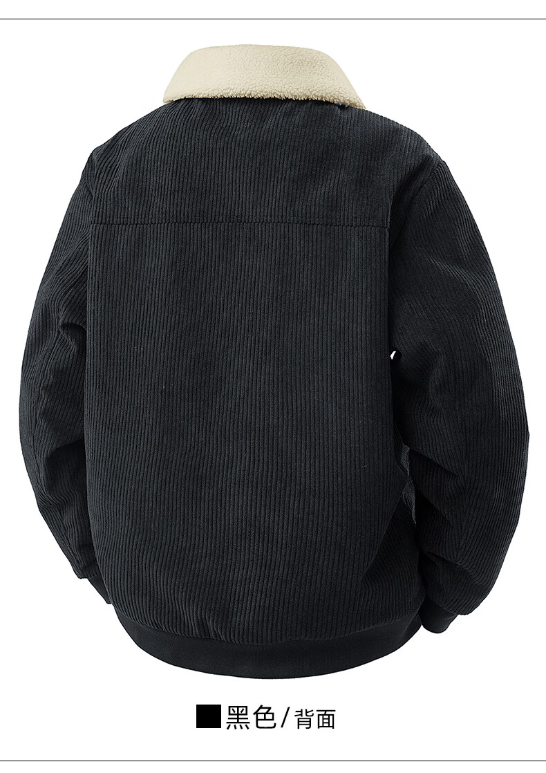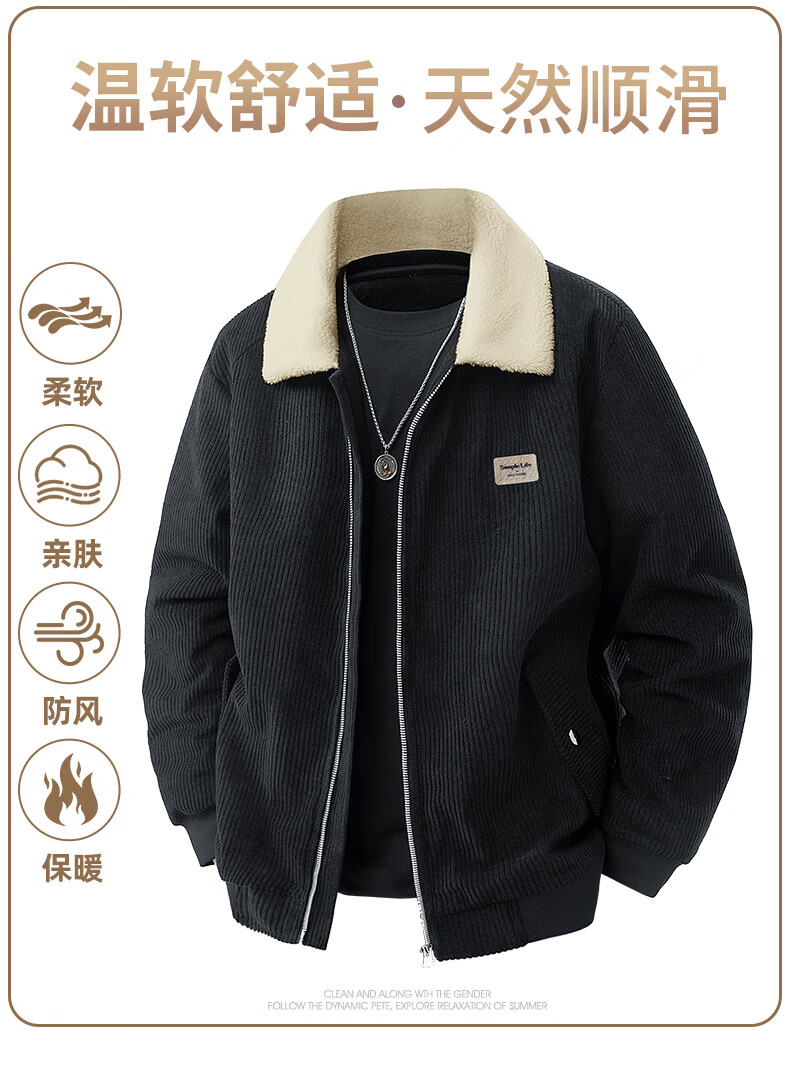 ROMON corduroy jacket men's winter 2025 new lamb velvet plus velvet warm and cold-resistant jacket men's black L