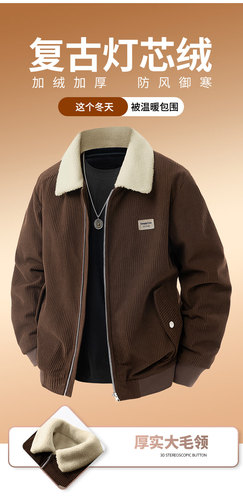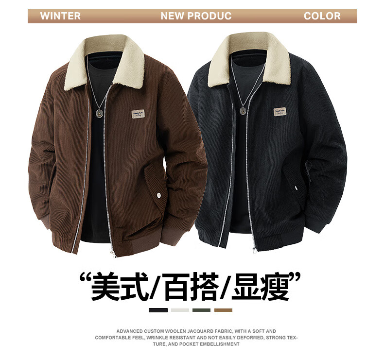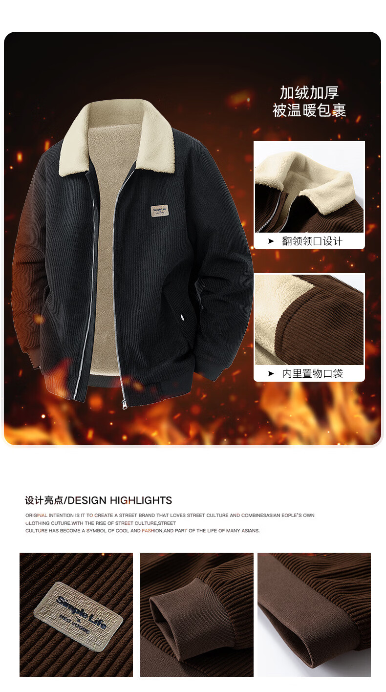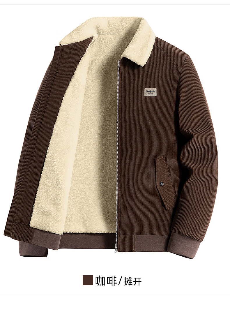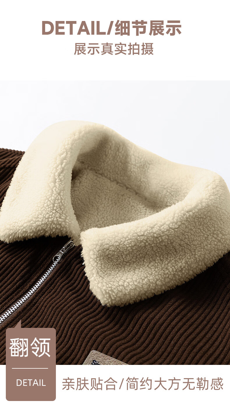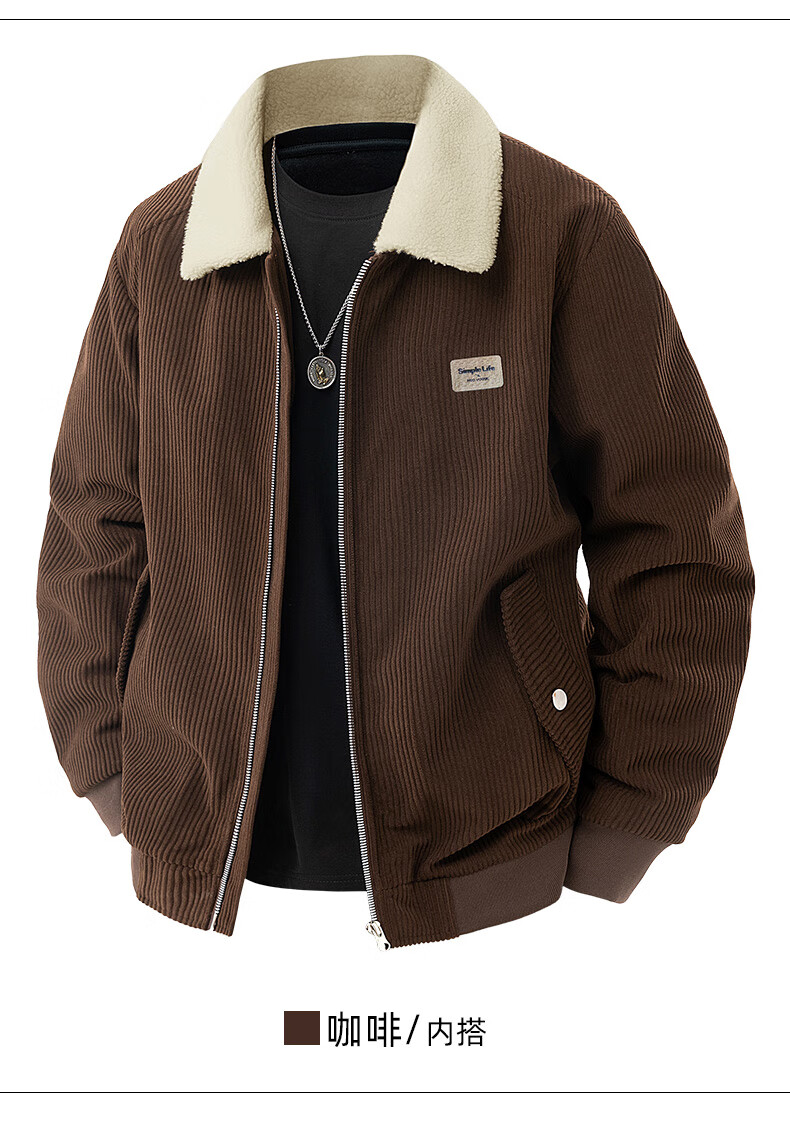 ROMON corduroy jacket men's winter 2025 new lamb velvet plus velvet warm and cold-resistant jacket men's black L