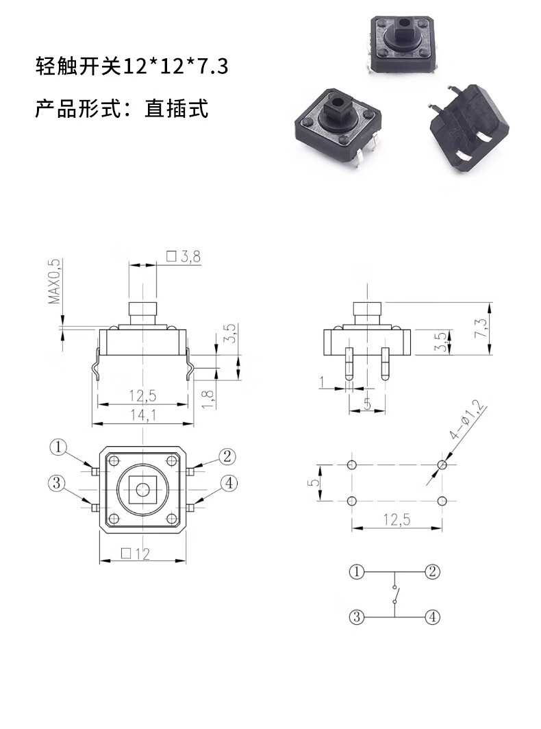 ZAVE direct plug/SMD tact switch, direct plug button black (20 pieces)