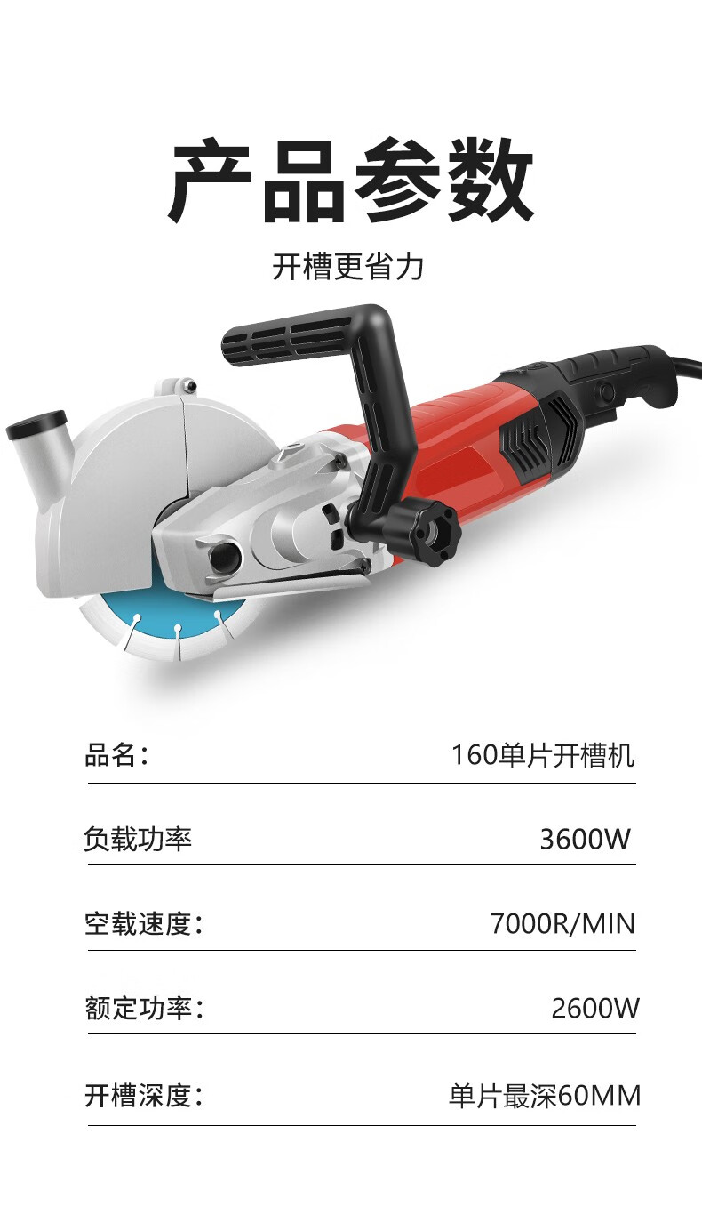 German Dodi multifunctional grooving single-chip grooving machine high-power angle grinder stone concrete dust-free wall cutting machine 160 single-chip grooving machine 160 single-chip grooving machine standard + water pump