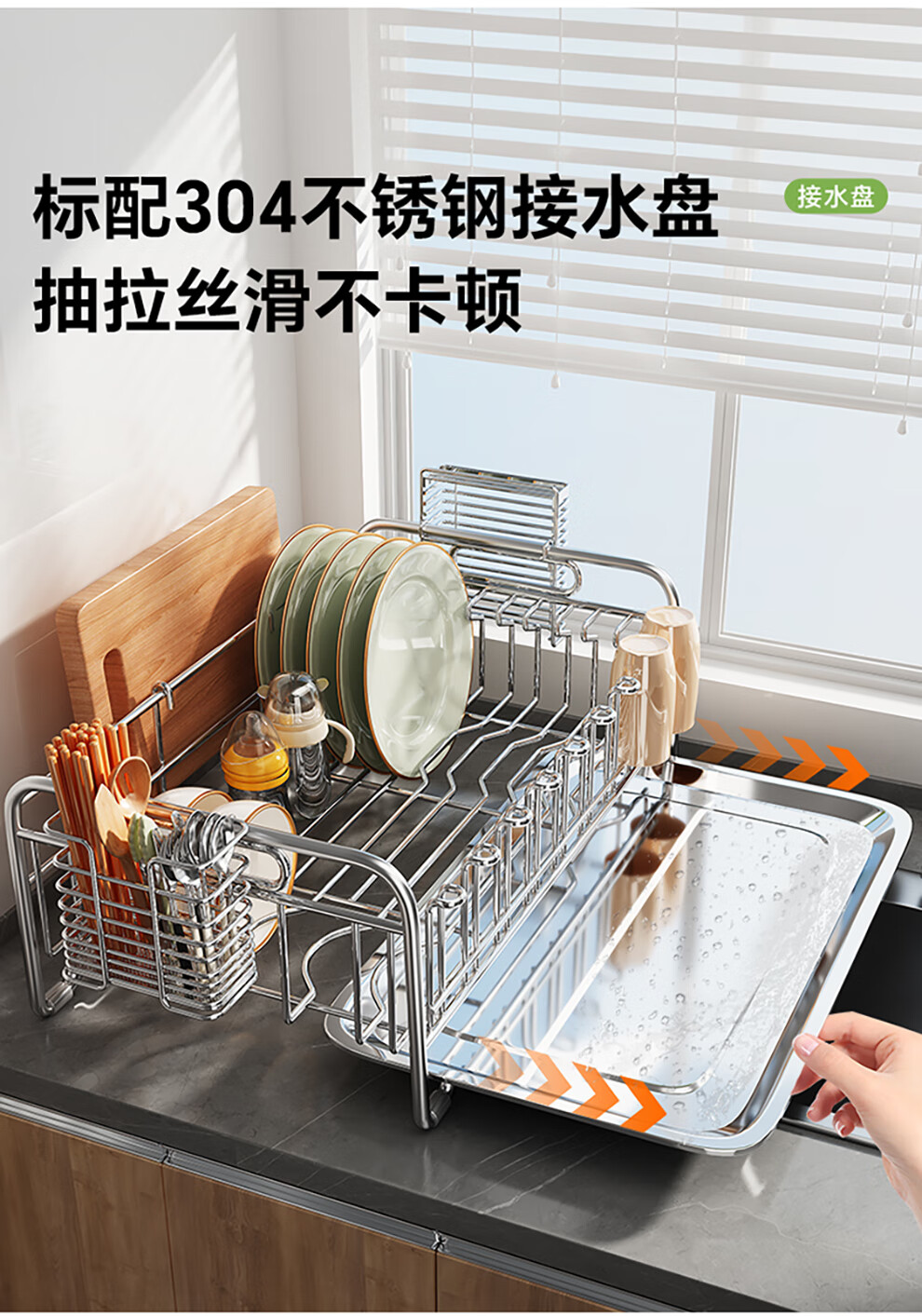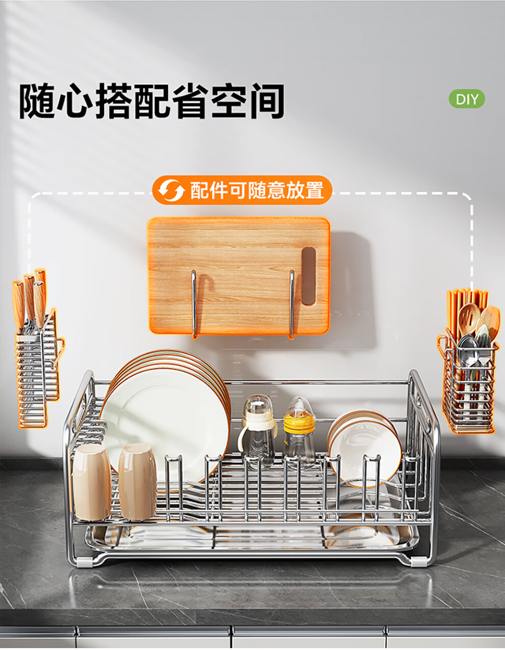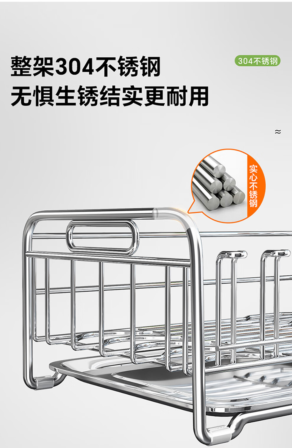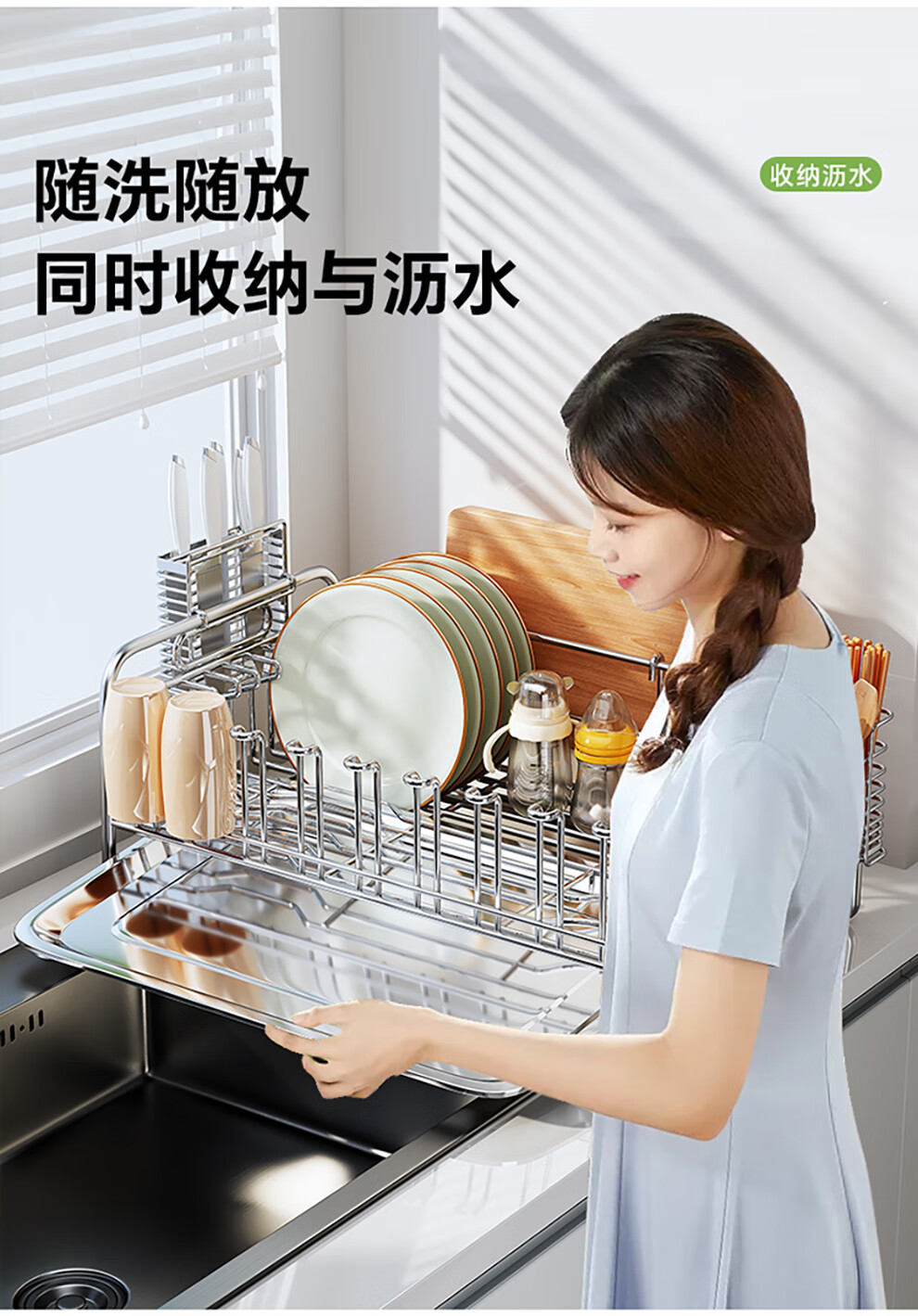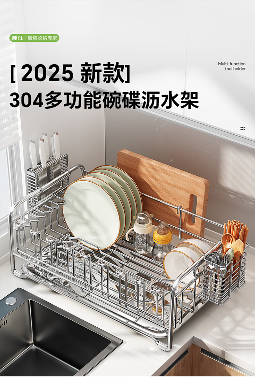 Shuaishi kitchen rack dish storage rack 304 stainless steel electrolytic installation-free dish drainer bowl rack horizontal chopstick barrel