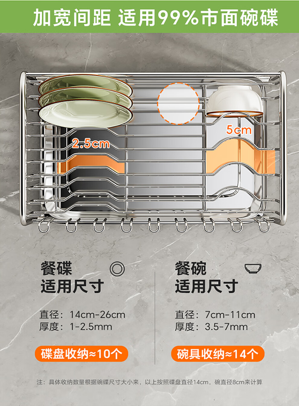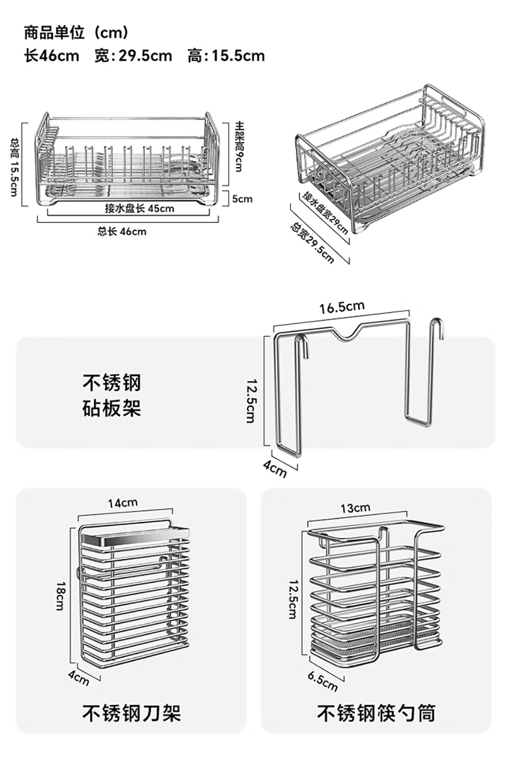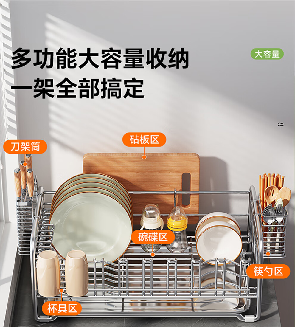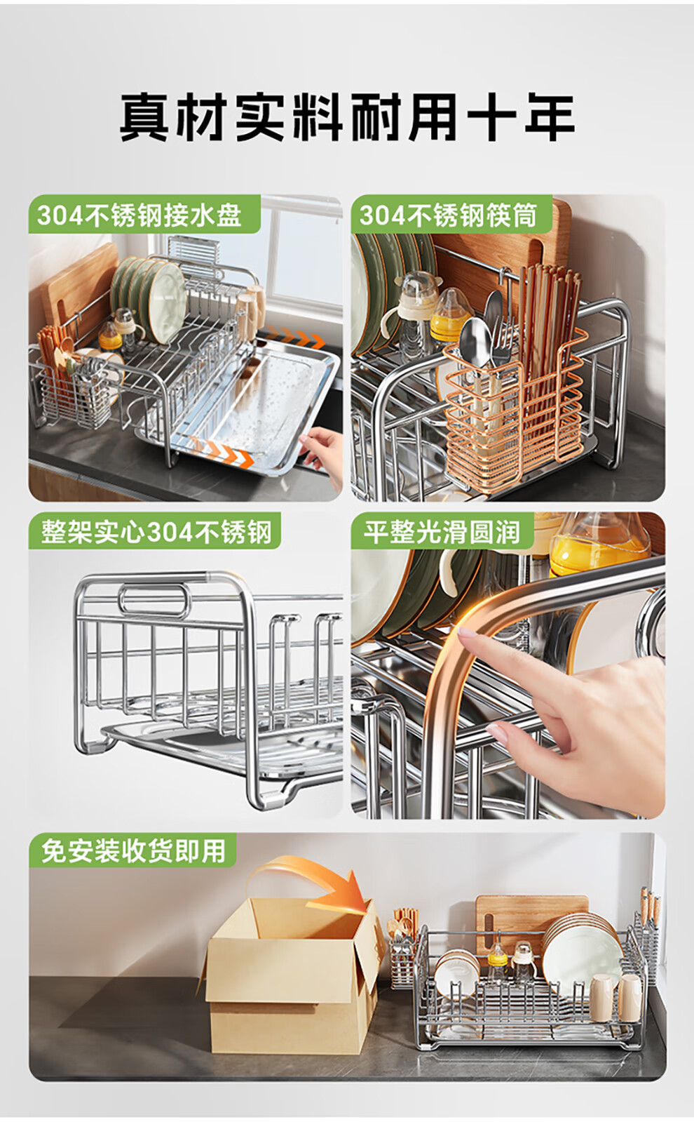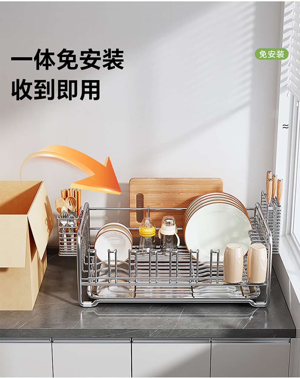 Shuaishi kitchen rack dish storage rack 304 stainless steel electrolytic installation-free dish drainer bowl rack horizontal chopstick barrel