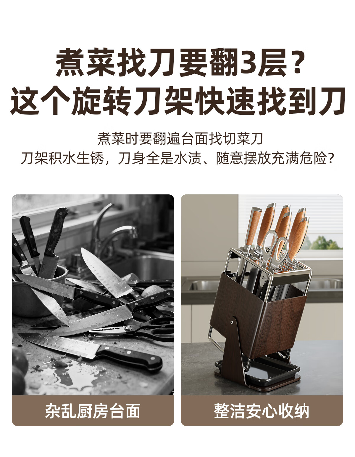 Added knife holder storage rack kitchen home wall-mounted multi-functional kitchen knife holder chopstick barrel knife holder integrated knife storage