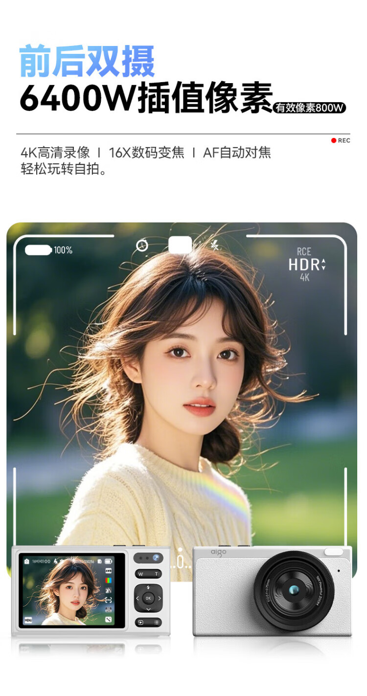 Aigo patriot D1 student digital camera birthday gift for girls entry-level high-definition travel campus small card machine retro CCD replacement black 32G