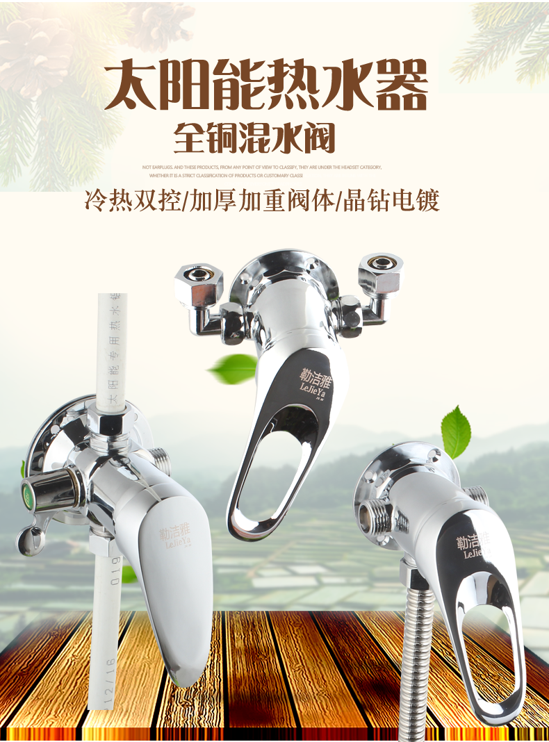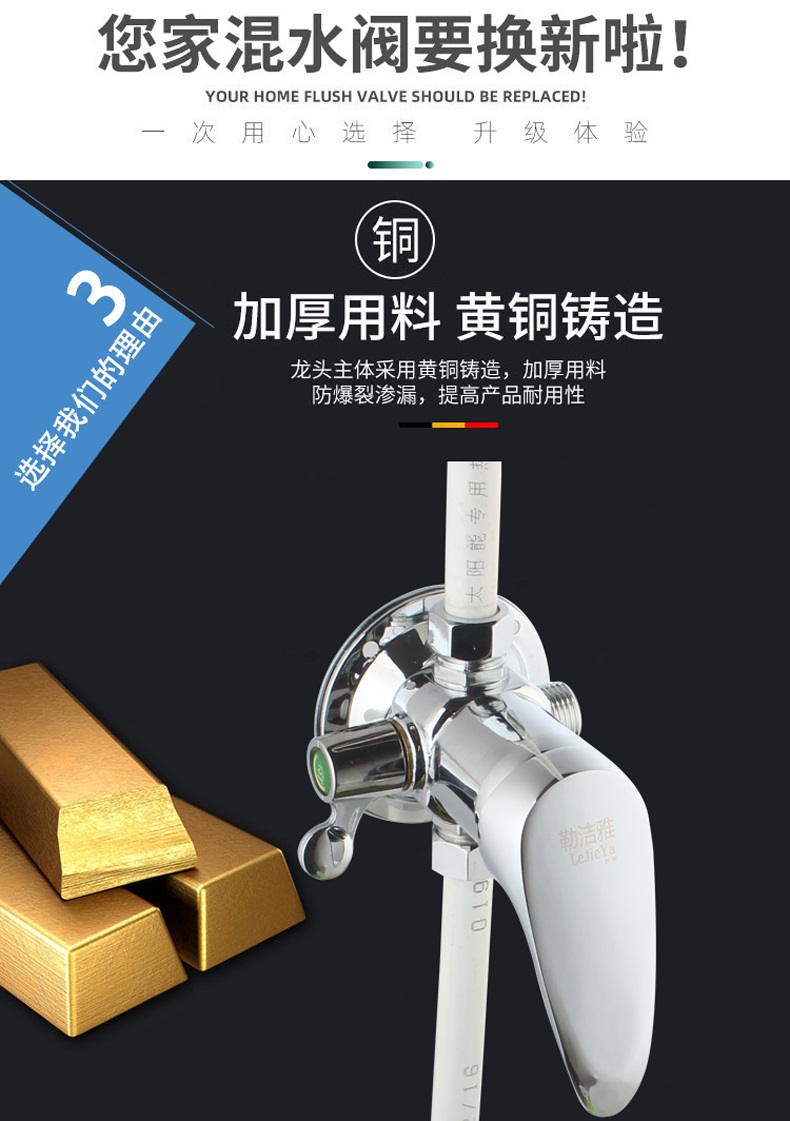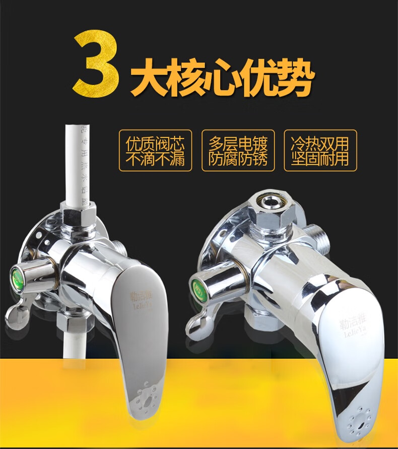 LeJieYa solar water heater all-copper mixing valve surface-mounted water valve switch shower hot and cold faucet mixing valve A2 alloy three-way valve