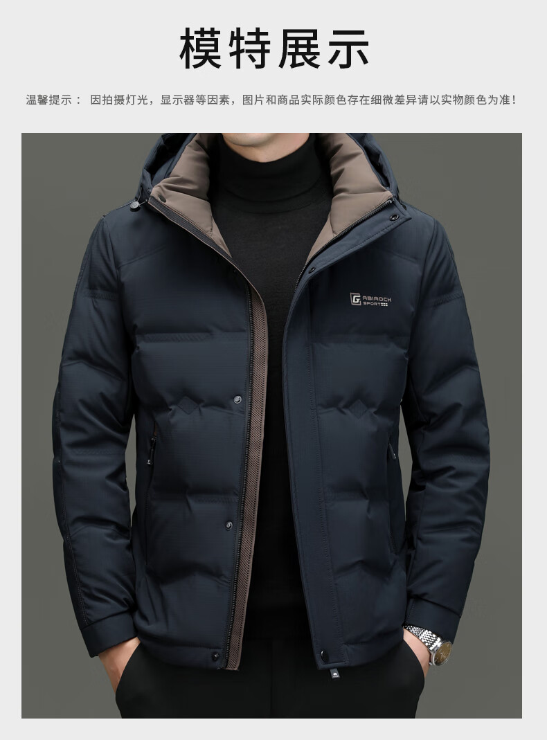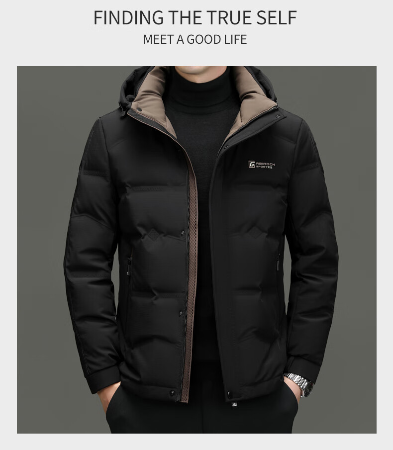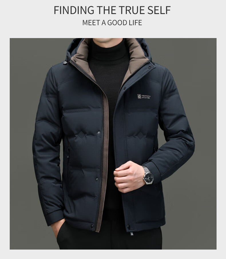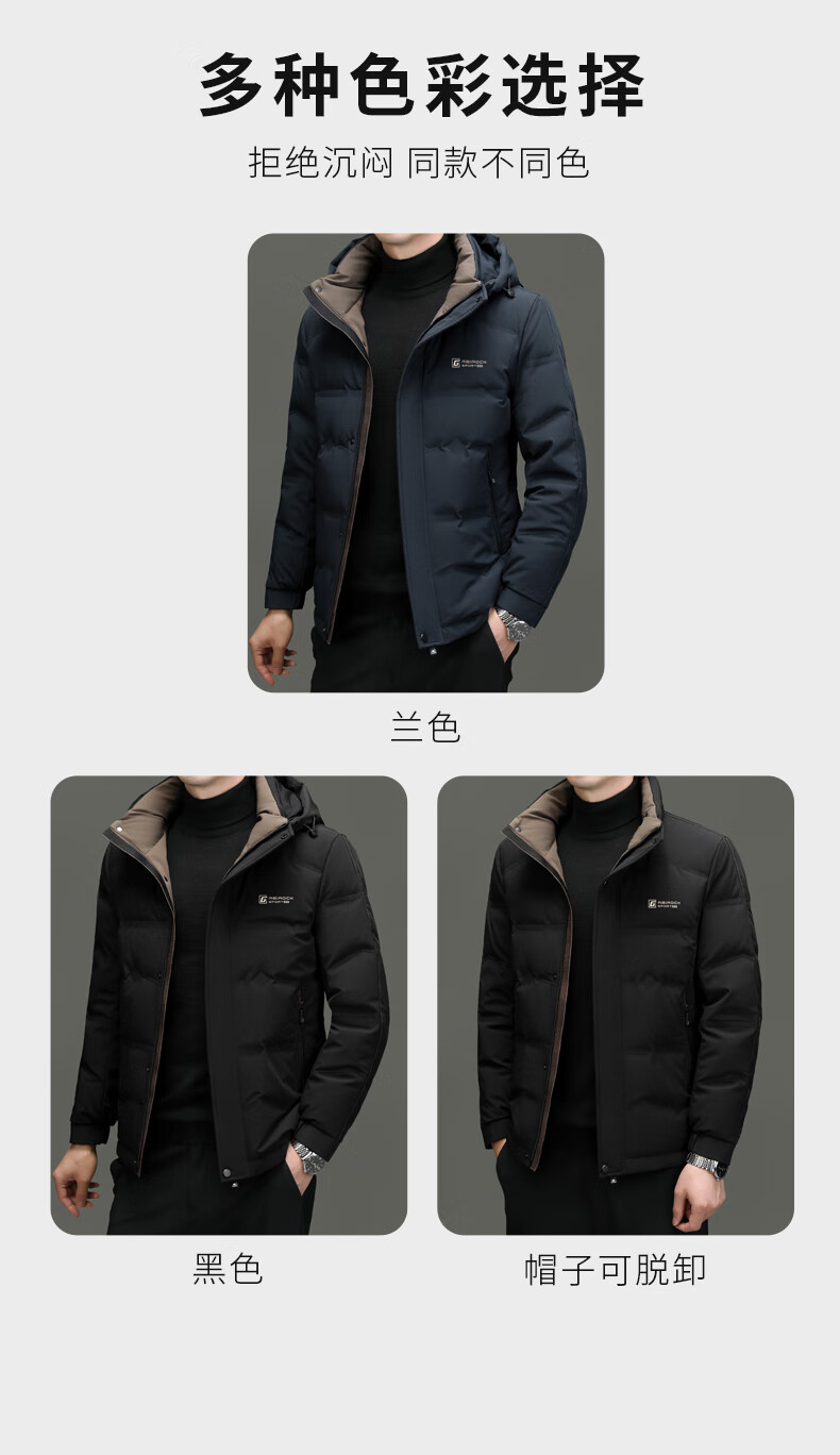 Pierre Cardin 2025 latest down jacket men's 90 duck down short jacket winter windproof warm removable hood jacket