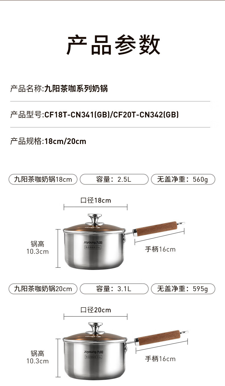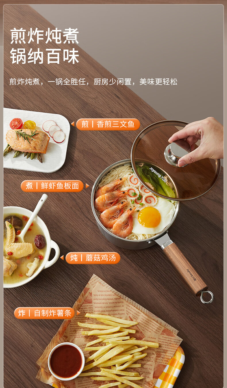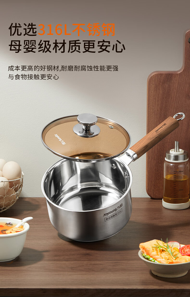 Joyoung milk pot 316L instant noodle pot breakfast pot baby baby food pot induction cooker gas stove universal tea and coffee 18cm