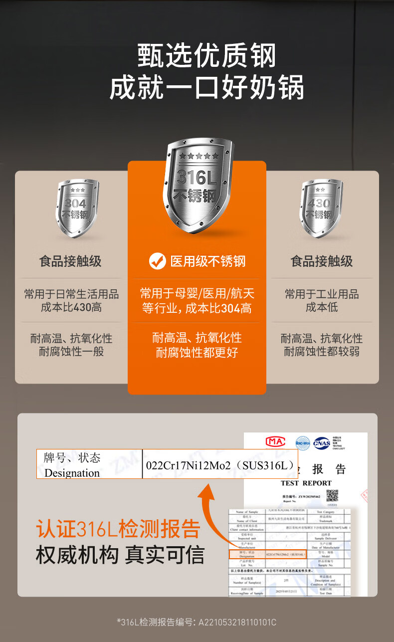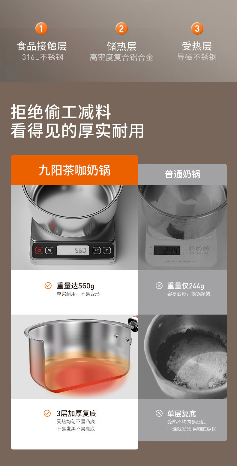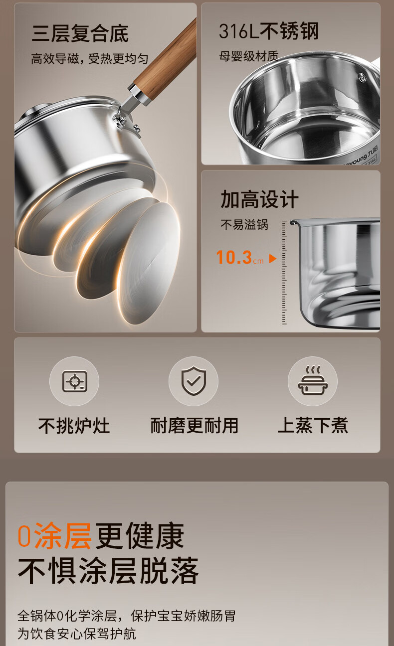 Joyoung milk pot 316L instant noodle pot breakfast pot baby baby food pot induction cooker gas stove universal tea and coffee 18cm