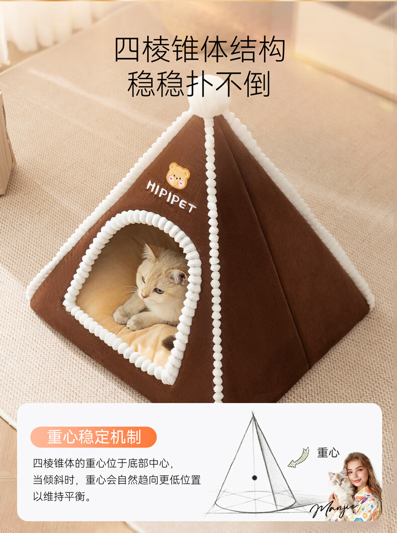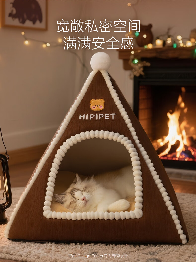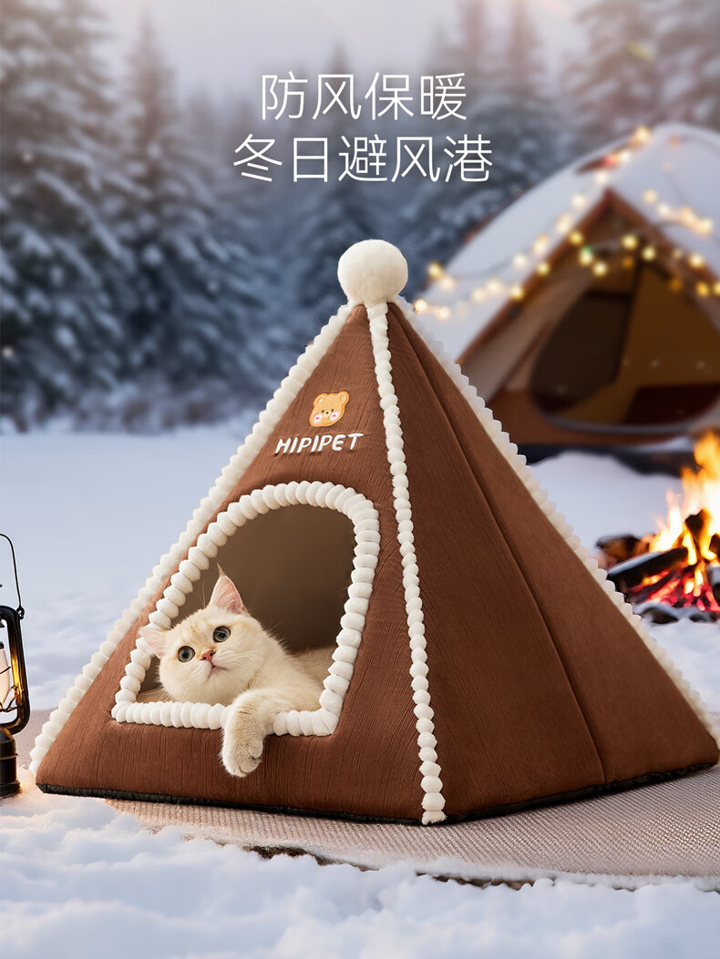 Hippie Dog Cat Nest Winter Warm Closed and Safe Cat Tent M Size Suitable for Up to 16 Jin Upgraded Model