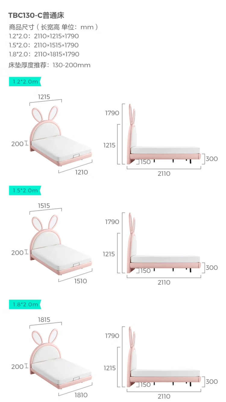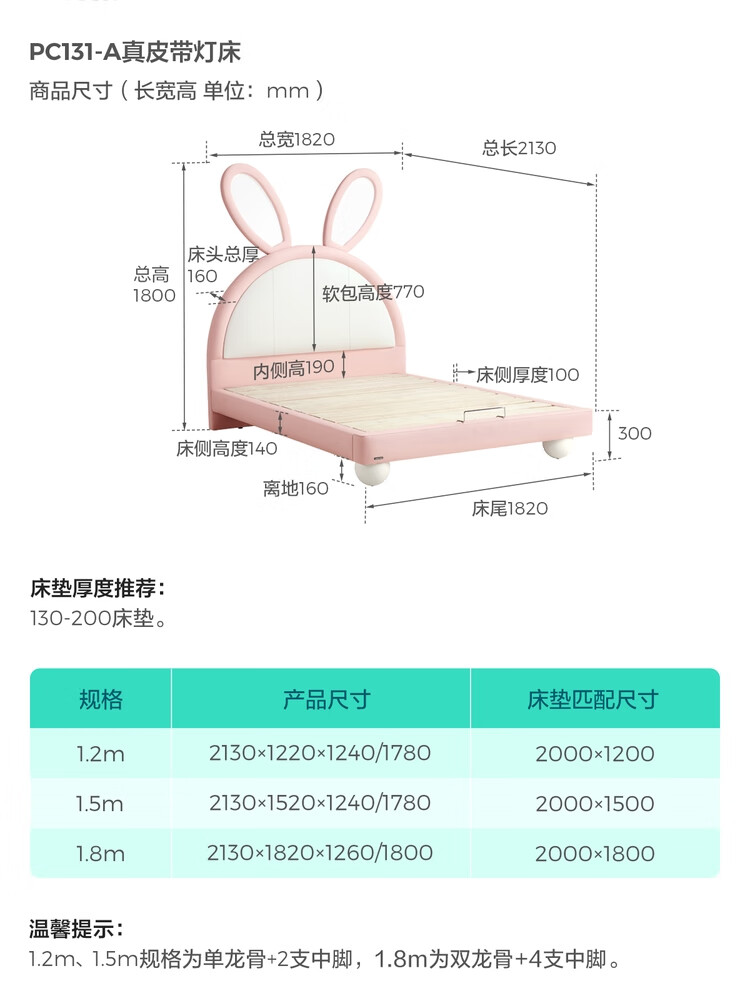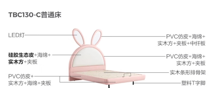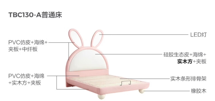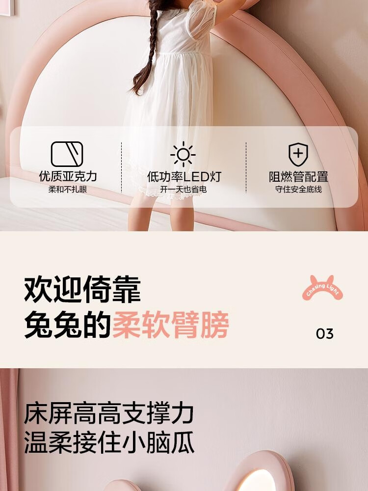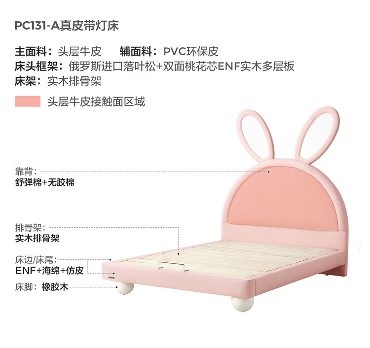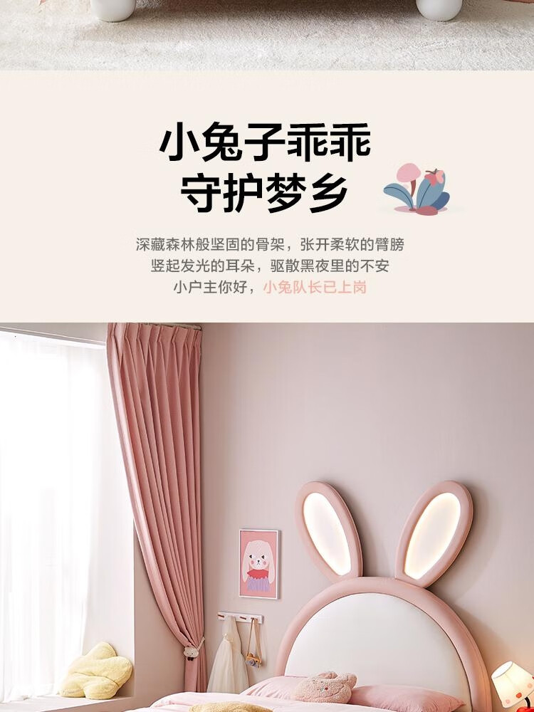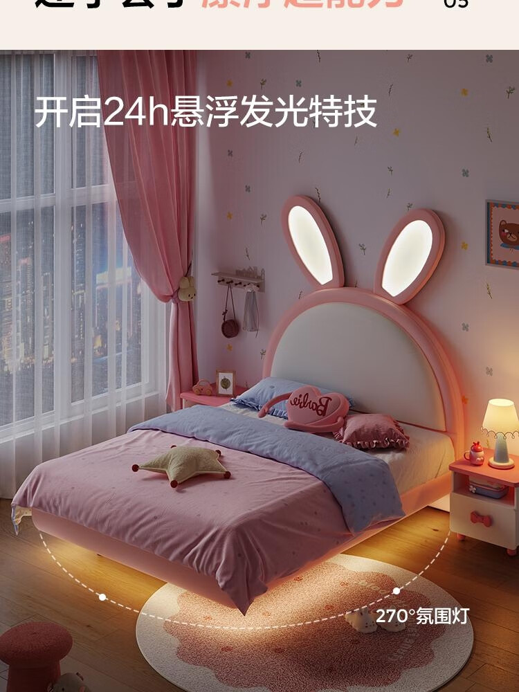 Lin's Home Girl Princess Bed Suspended Single Bedroom Girls Furniture 1.2*2.0 Meter Rabbit Bed 2025 New PC131